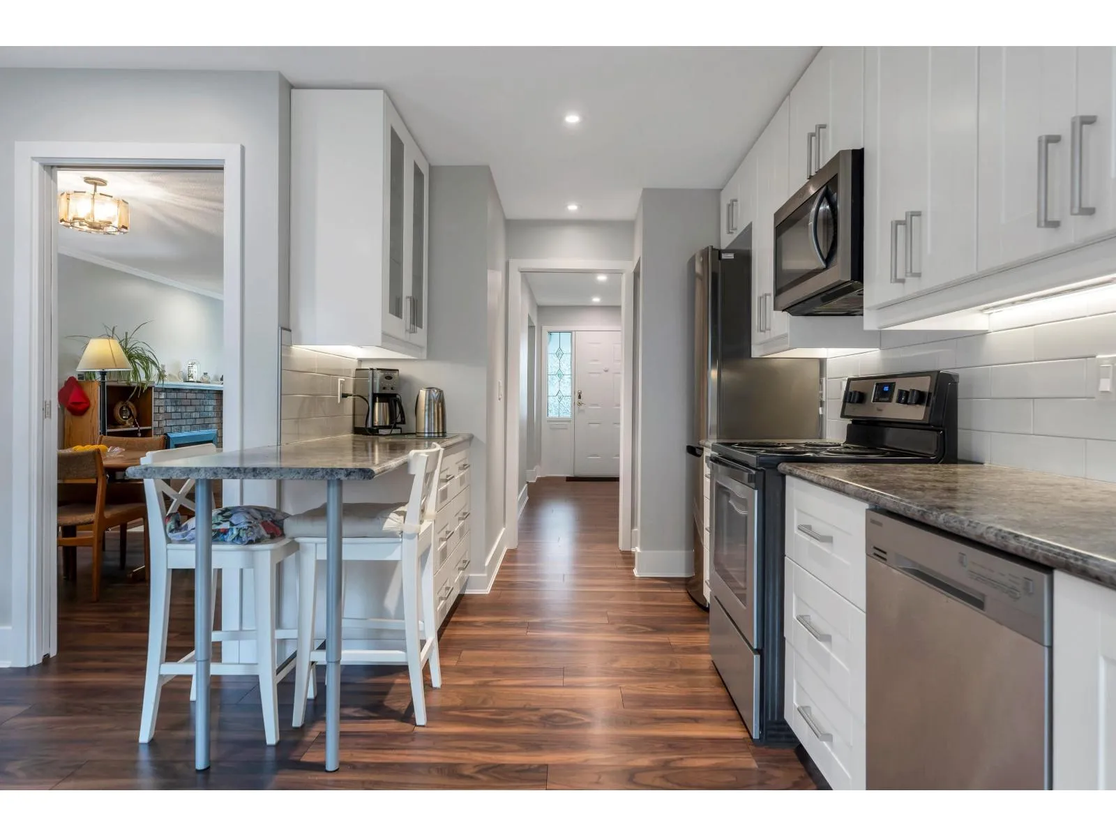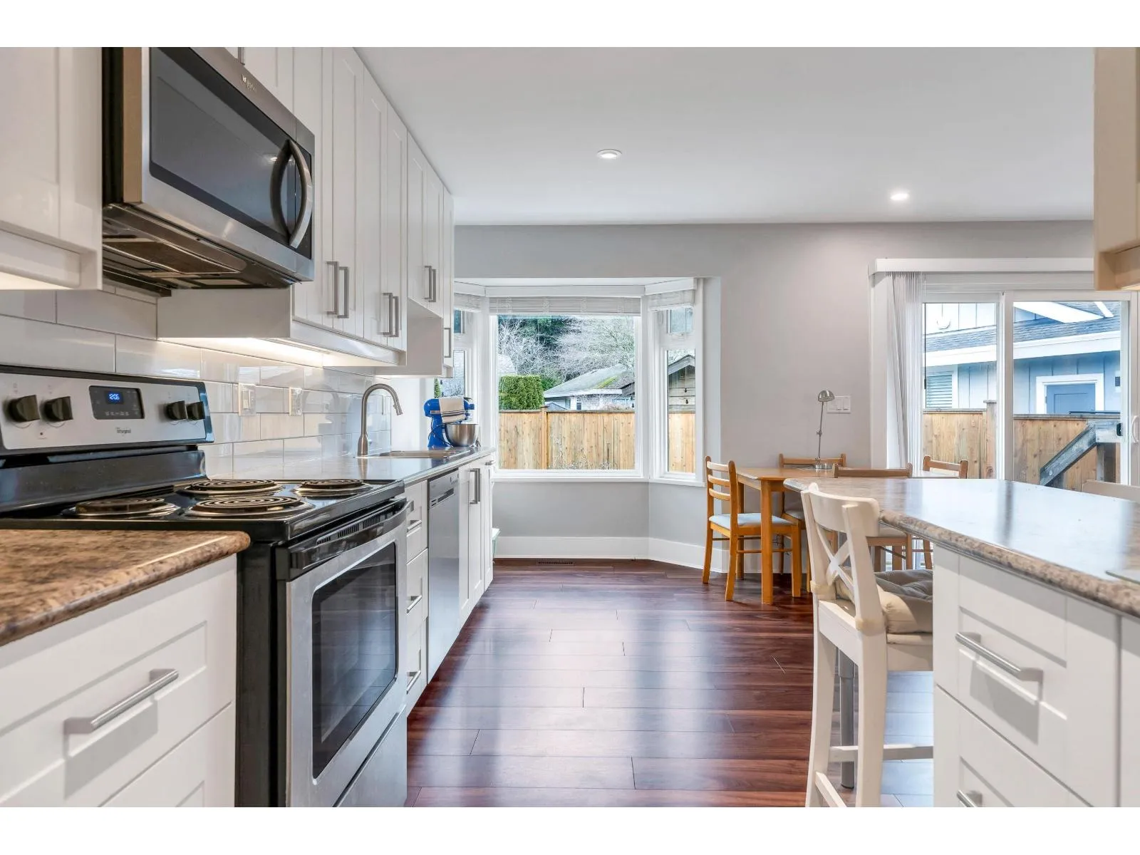 OCEAN BLUFF rancher in nice quiet location. Prime south facing CORNER LOT with fully fenced, gated backyard. Professionally landscaped & maintained. Only second owner. Updates include bright white kitchen with stainless steel appliances, beautiful walnut wide plank flooring, Hunter Douglas blinds, painting, plumbing and electrical. Cozy gas fireplace in Living Room. Double garage & driveway with extra visitor parking on the street. Walking distance to parks, trails, transit & shopping. Bayridge Elementary & Semiahmoo Secondary school catchment. Showings by appointment only. (id:27476)