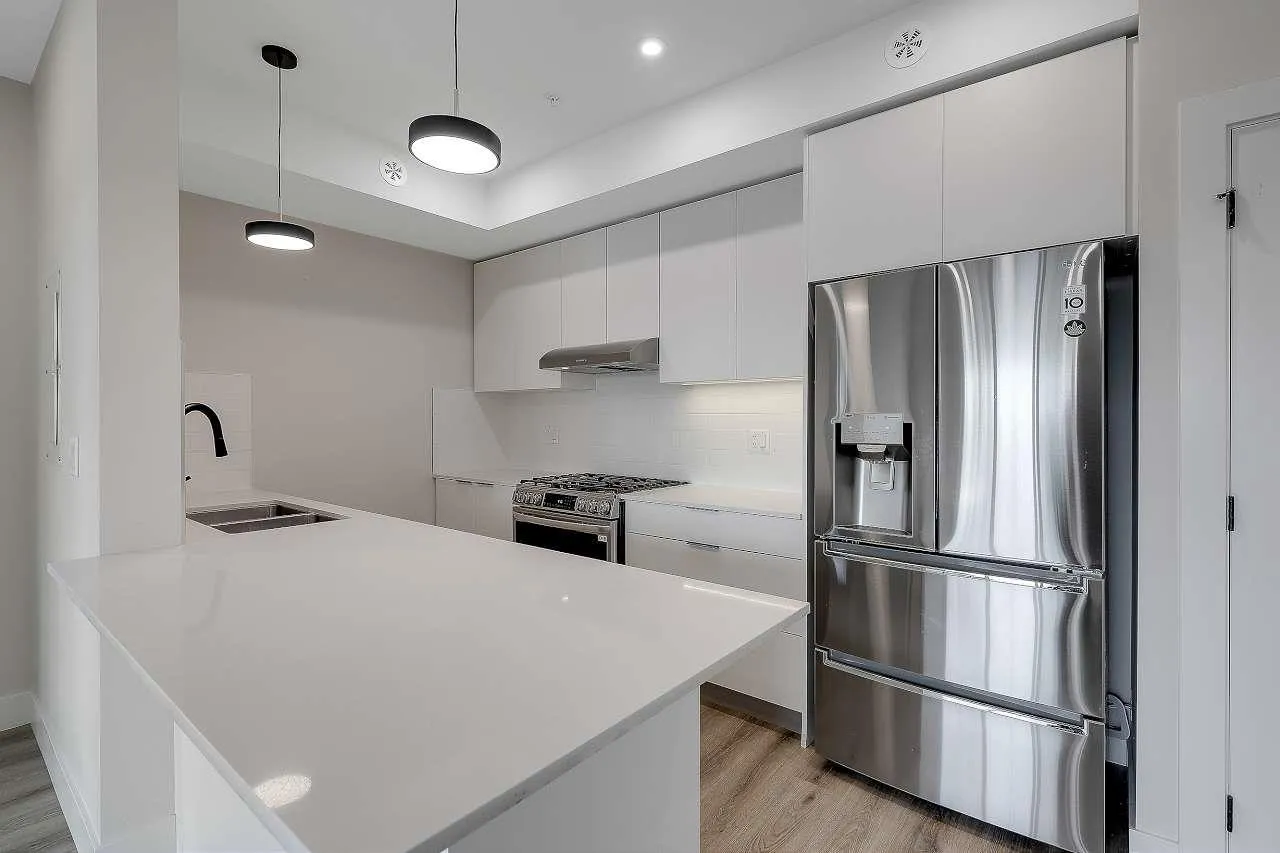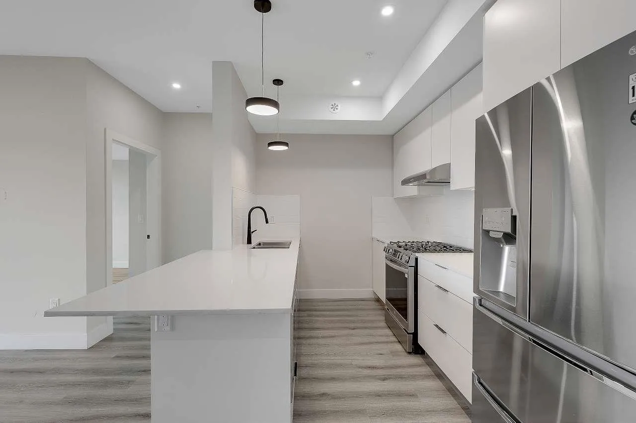 Welcome to SHYNE. This 2023 built modern apartment offers 2 spacious bedrooms and 2 bathrooms with a well designed 928 sq ft layout + 73 sq ft balcony. High end appliances, central air conditioning, a natural gas cooking range, and a gas BBQ connection on the balcony add everyday comfort, along with the convenience of two parking stalls. Enjoy mountain views and excellent amenities including an exercise and yoga room, party hall, ground floor restaurants and shopping, and ample visitor parking. Pet friendly building. Ideally located near North Ridge Elementary, Panorama Ridge Secondary, and just a 2 minute walk to the bus stop. Ready to occupy and not to be missed. (id:27476)