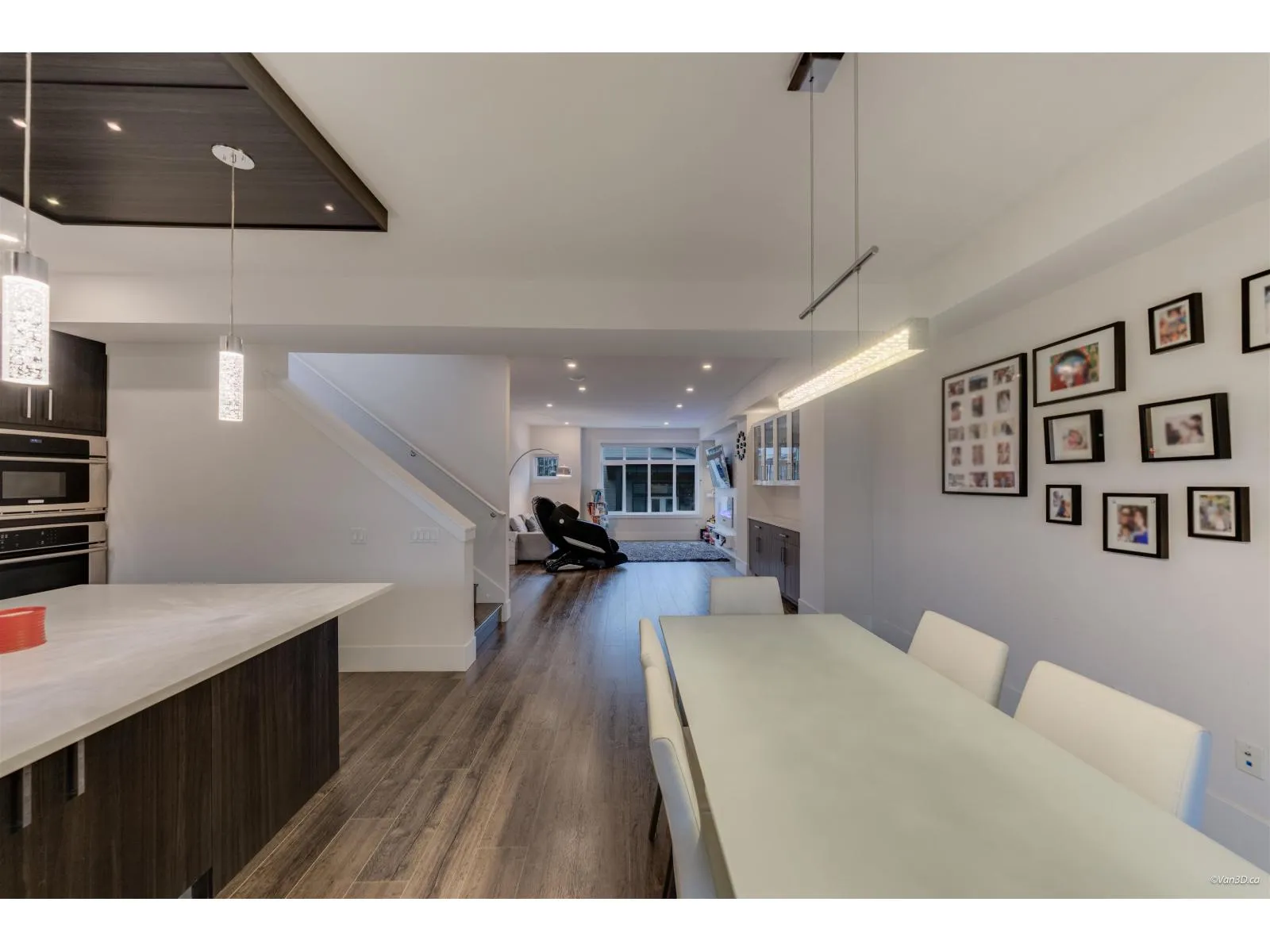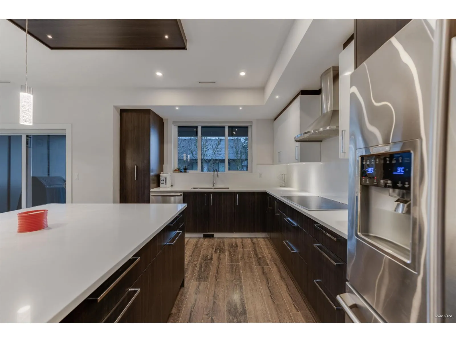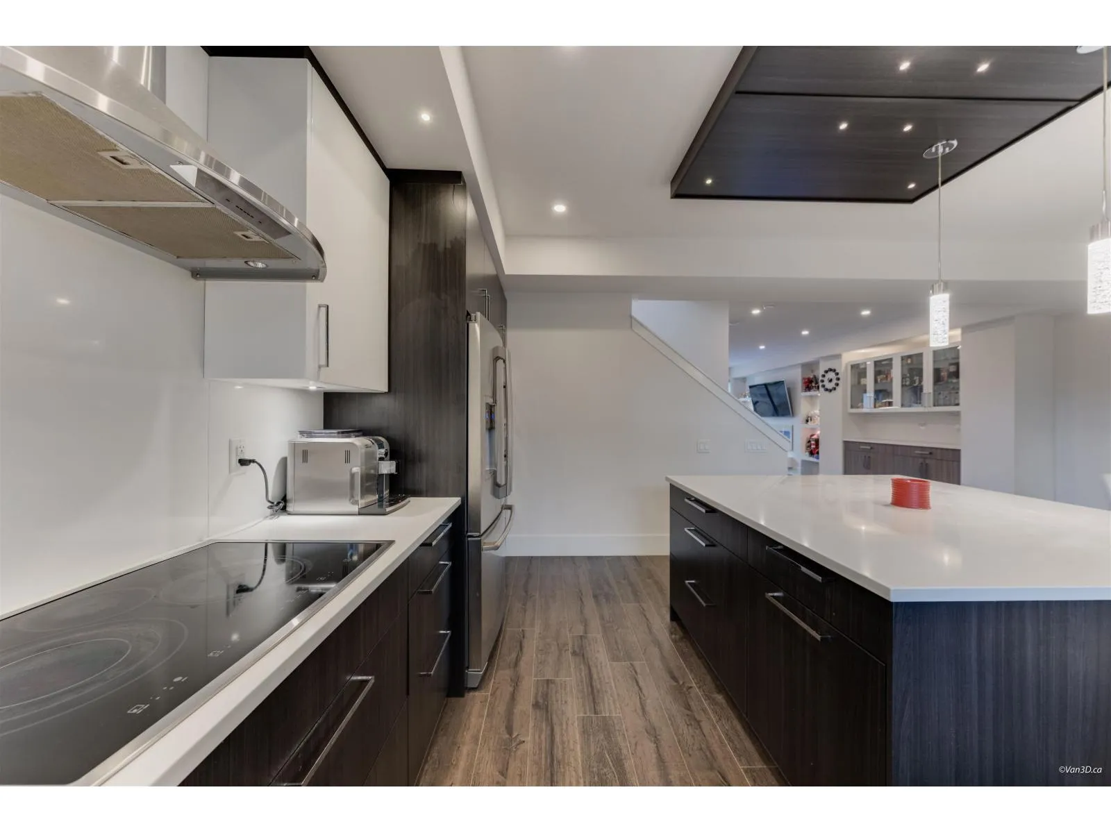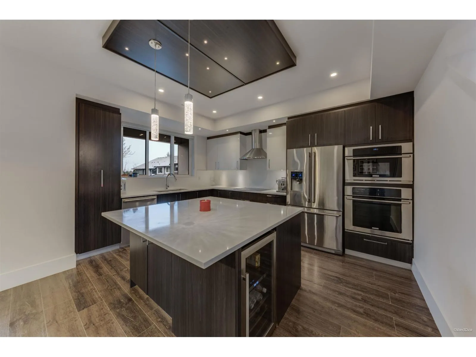 Welcome to EVOQUE at Sullivan Station by Maskeen Group. This rare 2,267 sqft inside corner townhouse offers 4 bedrooms, 4 bathrooms and 4-car parking (double garage + driveway). Bright open-concept main floor features 9 ft ceilings, oversized windows, and a chef's kitchen with Electrolux appliances, quartz countertops, large island, and built-in cabinetry. Energy-efficient geothermal heating & cooling, A/C, NuHeat in-floor heating, central vacuum, LED pot lights, motorized blinds, and staircase lighting. Upstairs includes 3 bedrooms with a primary ensuite featuring custom body sprays. Walk-out basement offers a 4th bedroom with ensuite, private yard, and separate entrance-ideal for in-laws. Prime location across from Sullivan Elementary, walking distance to transit, shopping and recreation (id:27476)