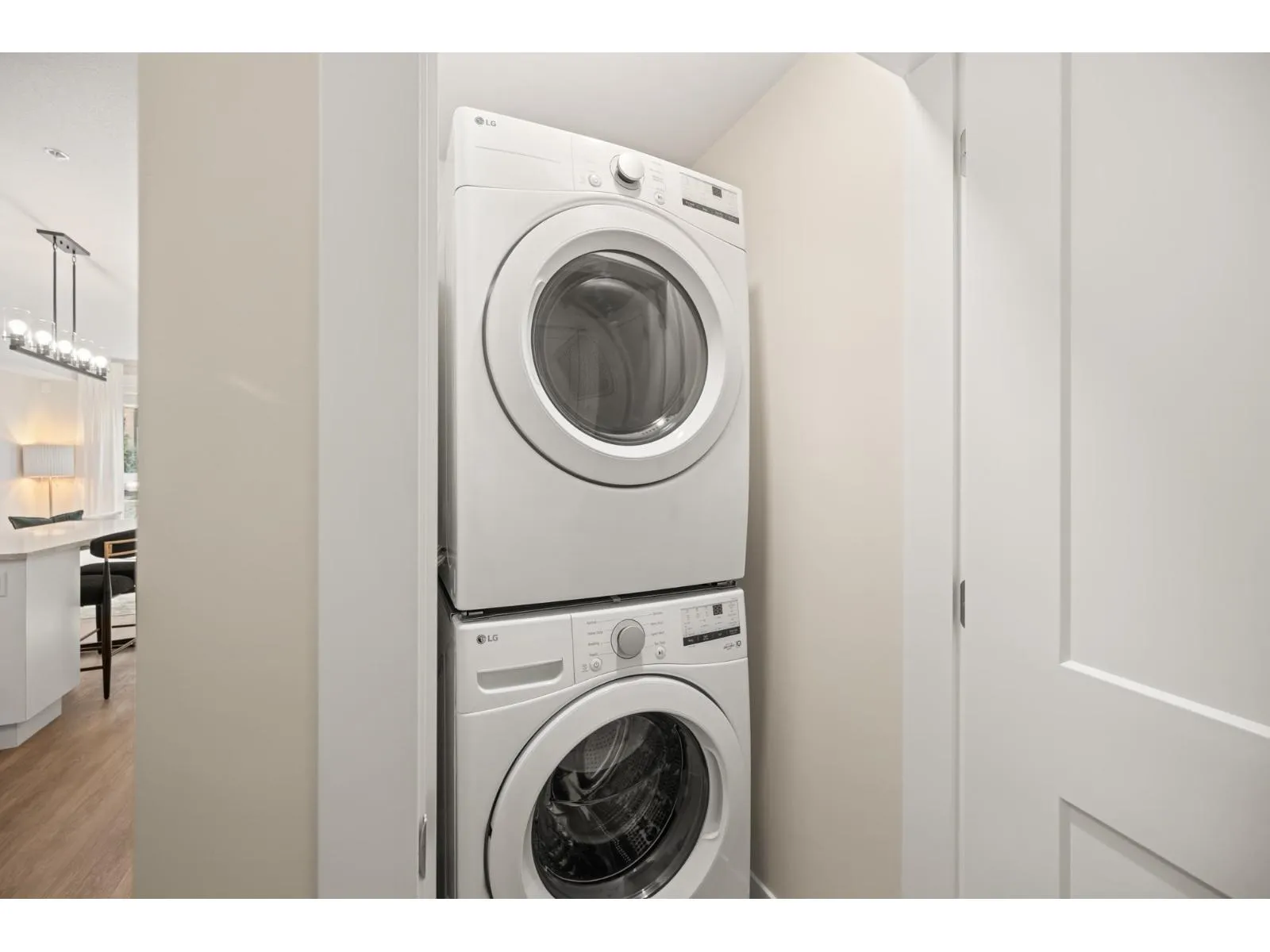 Ledgeview 11 - by Quadra! This project is located just 8 mins. walk from Gateway Skytrain Station and easy access to public transit, shopping, dining, and entertainment options. Estimated completion of Nov. 25, 2026. This unique 645 Sq. Ft. Jr. 2 bedroom comes with 1 prkg, 1 strg., Gourmet kitchen pkg. includes STAINLESS STEEL FACED Appliances, refrigerator with ice/water, range, microwave, dishwasher, garburator, & washer/dryer combo! Main bedroom features walk-through closets and cheater ensuite! Walnut toned vinyl plank flooring. DON'T MISS THIS ONE! (id:27476)