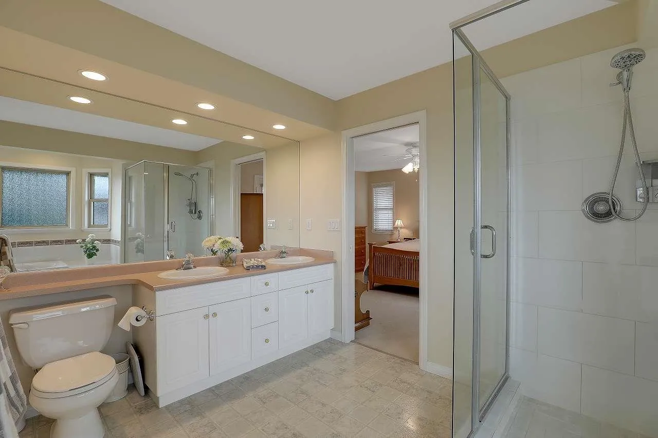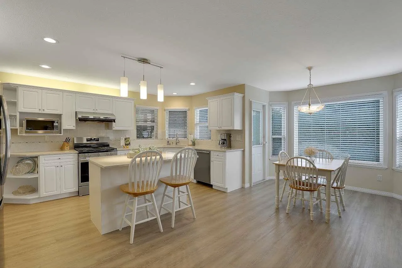 This spacious 4-bedroom, 4 bath home offers an ideal layout for comfortable living and entertaining, complete with updated vinyl floors, paint, quartz countertops, new kitchen appliances with a large backyard featuring a serene water feature, and outdoor gas hookup for BBQs and an outdoor gas fire pit. The design includes ample room for a nanny suite or an additional family member (separate staircase to bedroom & full bath). Thanks to strategically placed windows, the open-concept living space is bathed in natural light and flows seamlessly into a generous area perfect for hosting large gatherings. This home, located in a quiet cul-de-sac, is the perfect retreat for families or those who love to entertain. Walking distance to Bear Creek Park, Brookside Elementary & Enver Creek Secondary. (id:27476)