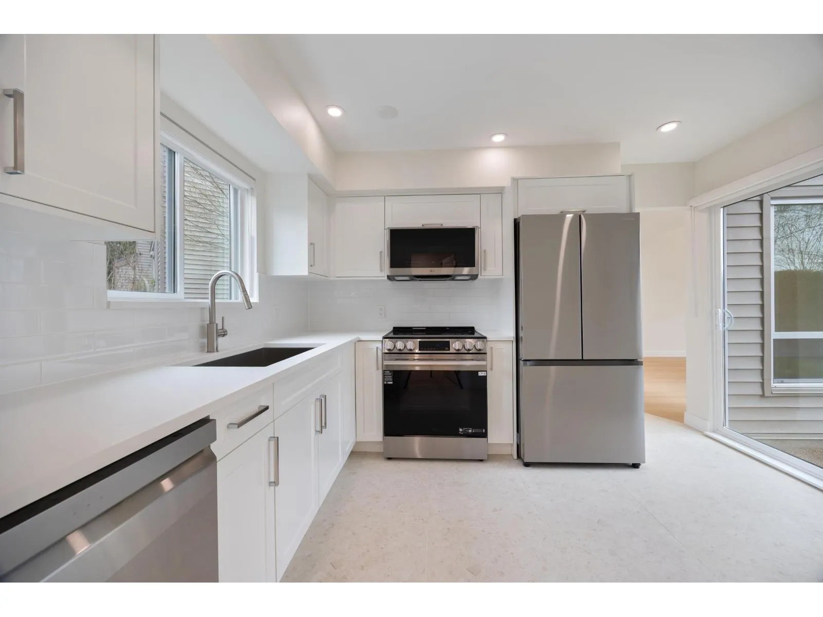 Welcome to Greenside Estates. This beautifully updated two level home offers 1,084 sq ft of white, modern living & clean and timeless design. Completely renovated, features fresh paint, new lighting, laminate flooring and tile, plus fully updated kitchen/bathroom. Enjoy new stainless steel appliances with extended warranty, a massive laundry room with new washer and dryer, updated doors, roller blinds, and custom closet organizers. Strata updated windows add peace of mind, while the large private outdoor patio off the living room is perfect for relaxing or entertaining. Ideal for first time buyers, located near Willoughby Shopping Centre, transit, and the future SkyTrain. School catchment: Latimer Road Elem. and Clayton Heights Sec. *Note: Video contains virtual staging. *Open House: Sat Feb 14 @12-2 & Sun Feb 15 @2-4pm (id:27476)