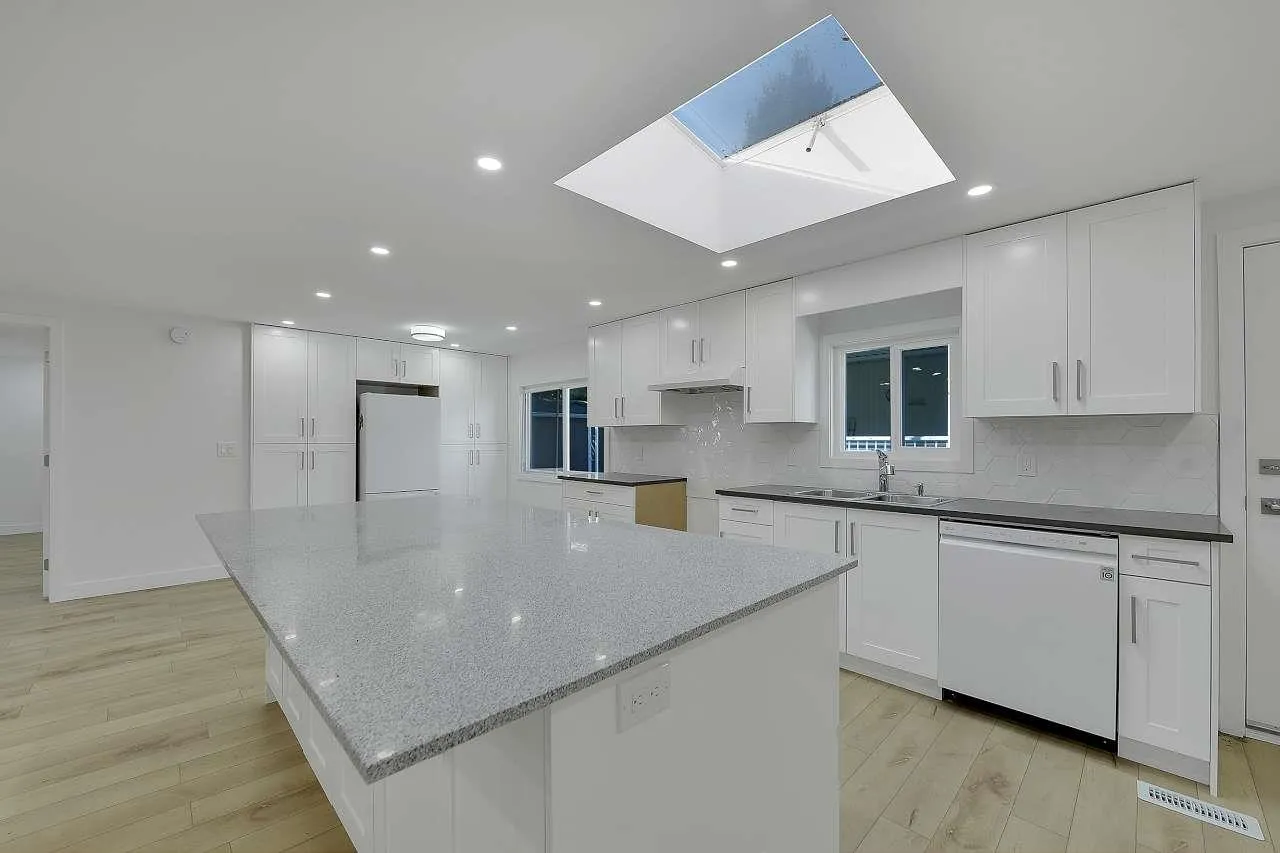 Welcome to your dream home! This newly renovated manufactured home is located in the family-friendly community of South Surrey. Set on a spacious lot in a well-managed park, surrounded by lush greenery, this home has been upgraded for modern living. Step inside to an open-concept living area, perfect for entertaining or relaxing with family. The brand-new kitchen features modern appliances, sleek countertops, and ample space for meal prep. Luxurious plank vinyl flooring flows throughout, adding elegance and durability. Both bathrooms are fully updated, offering stylish finishes, and new electrical upgrades ensure peace of mind. The 3 cozy bedrooms provide the perfect retreat after a long day and easily converted into four bedroom. don't be shy call today. (id:27476)