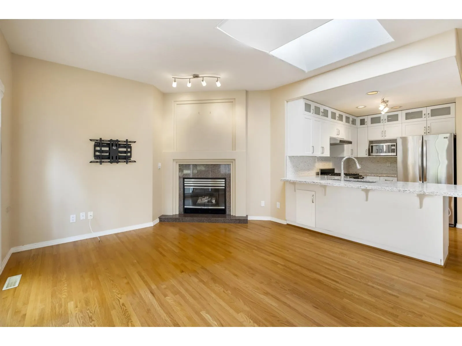 Superb 55+ half-duplex style end unit in a private, friendly 16-unit complex surrounded by majestic trees. 2281 sqft. bright, open layout with vaulted ceilings & skylights, ¾" hardwood, upgraded kitchen w/ Caesarstone & marble backsplash, gas stove, dream ensuite, hot water on demand & A/C. West-facing cedar deck & gardens. 2 bedrooms on & den on main + huge flex room upstairs & double car garage. You won't be disappointed! (id:27476)