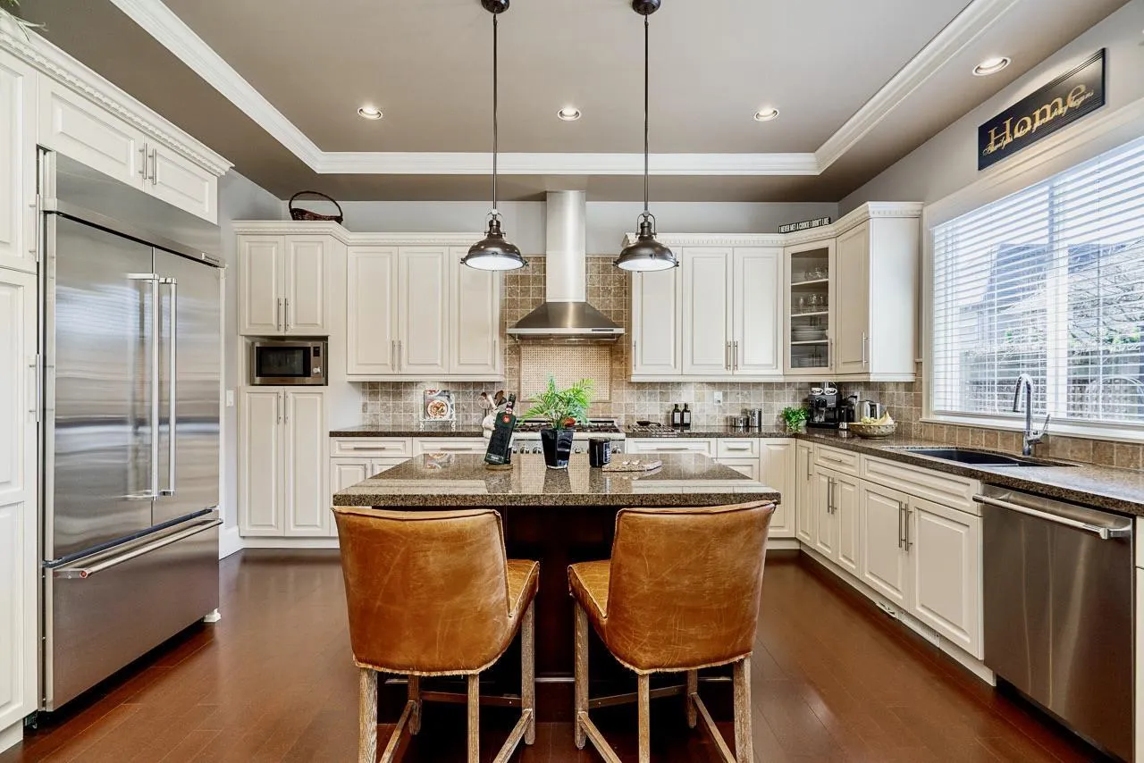 RAB exec. home in Morgan Heights! Geothermal heat/cool system, 4 bdrms and 3.5 bthrms. Designer tiled entry & recessed lighting with front office/den to side. Open living/dining rooms with 10' ceilings features a B/I buffet/hutch with wine fridge. Chef inspired kitchen with professional-grade appliances inc. of a new fridge and D/W all centered by island eating bar. Upper flr. finds a lavish master suite with a spa ensuite, inclusive of large soaker tub, two-sided fireplace, and refreshing rain shower. Watch movies in lower family room with B/I surround sound, wet bar, games corner and stunning wine cellar. Guest bdrm., full bthrm. + office also. Dbl garage with E/V + 2 on apron.Private yard with BBQ, truly park like! Walk to Grandview Corners, Morgan Crossing, and all levels of schools. (id:27476)