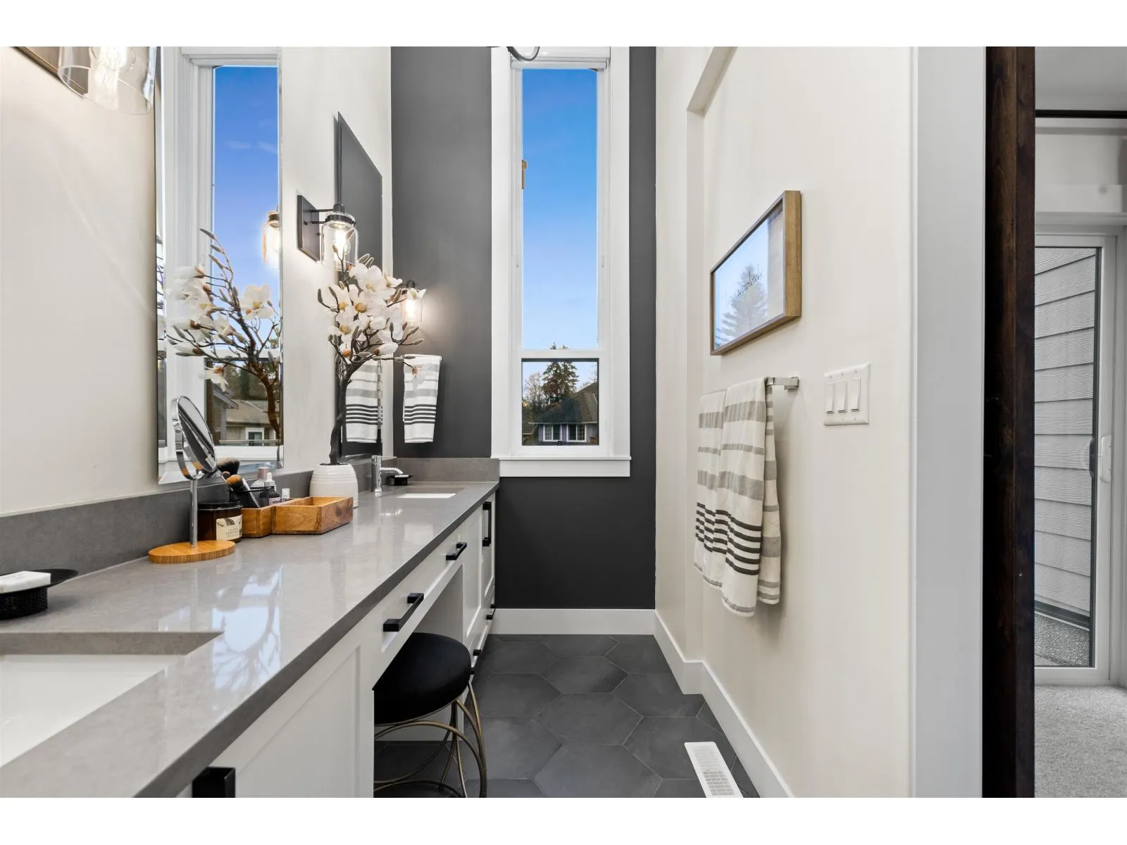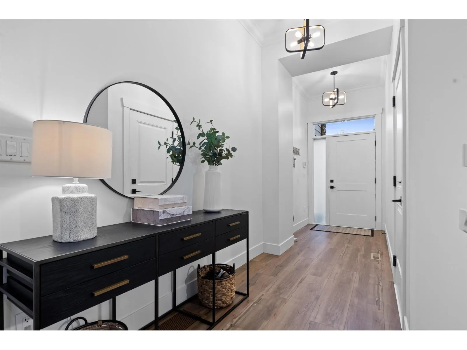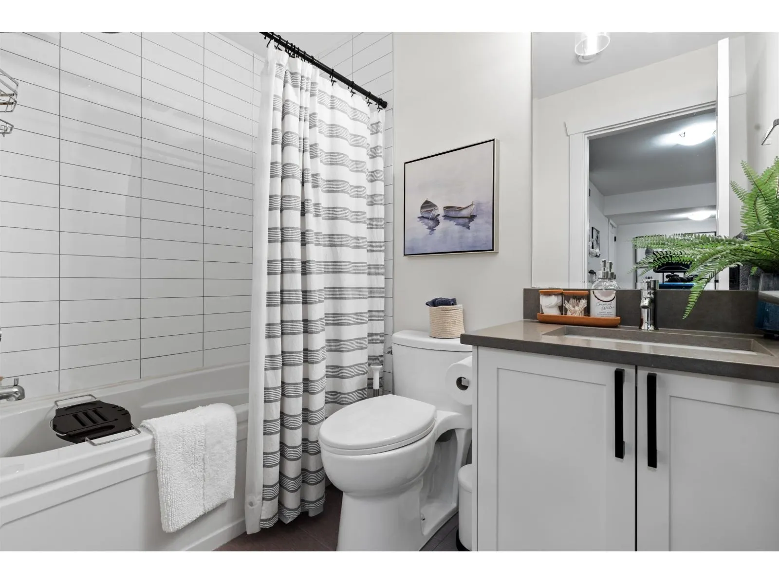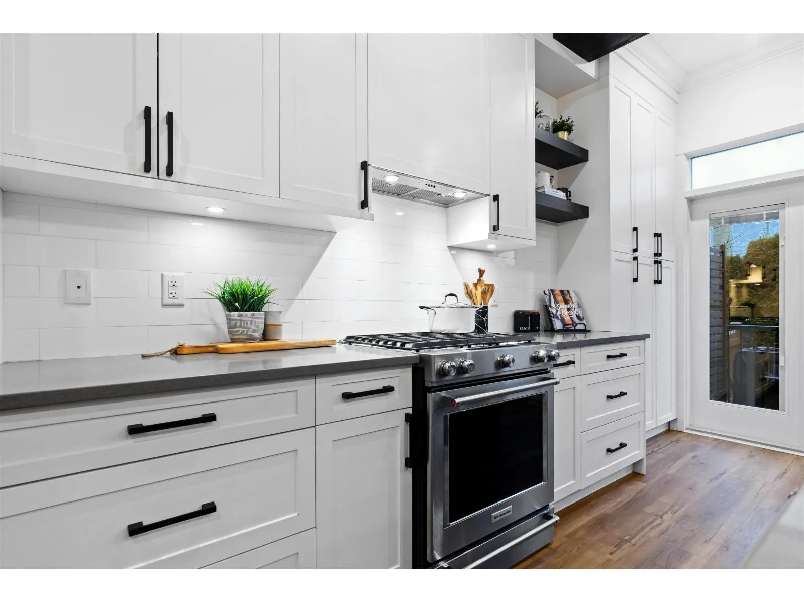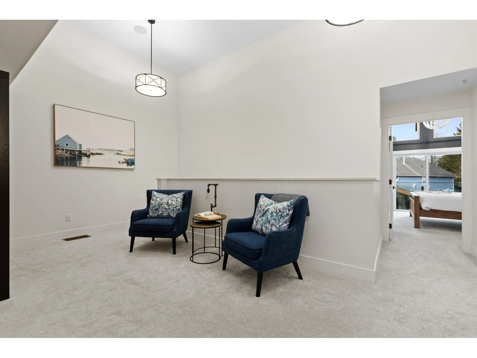Step into luxury at Marca by Mortise, South Surrey. Former show home, Unit 2 is the former show home w/double wide garage & large driveway for 2 more vehicles. Chalet-inspired design, wood beams, smart home tech, A/C & iControl4 features. Feels like a house w/2300+sqft across 3 levels featuring many built-ins, custom shelving, new laminate flooring throughout, new carpets, newer light fixtures & fresh paint. Main offers white cabinetry, quartz counters, s/s appliances, gas range, island & SW exposure. Upstairs features 3 beds & flex, incl oversized primary w/w-i closet & ensuite w/double sinks. Downstairs includes large rec room w/custom bar, wine fridge & built-ins, plus 4th bed & storage. Enjoy 2 balconies or fenced yard. (id:27476)