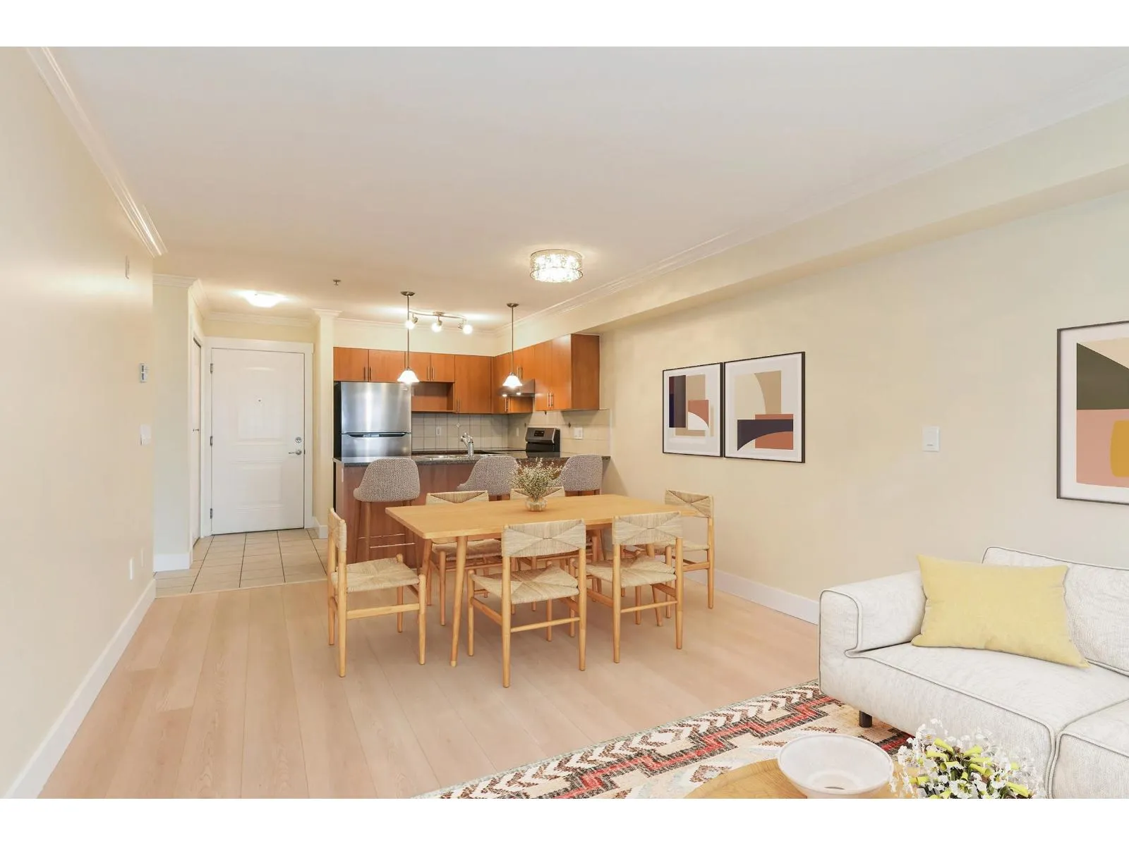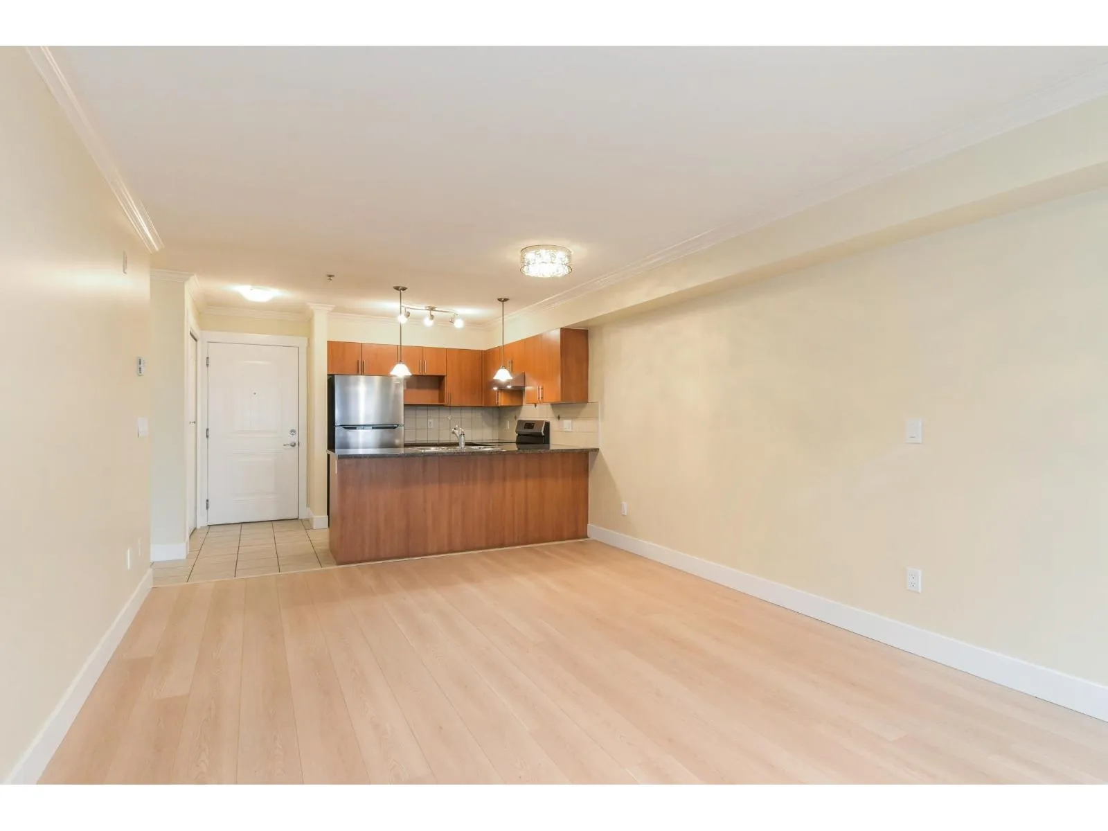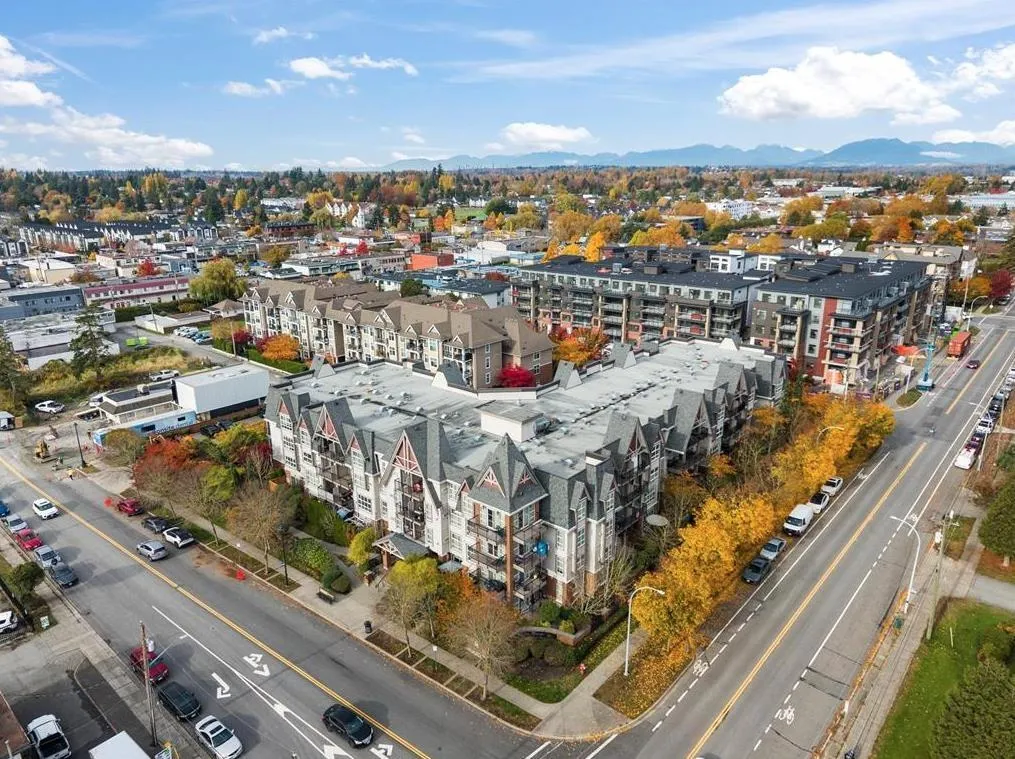 Clover Downs Estates in the heart of downtown Cloverdale. Well-maintained 1 bedroom, 1 bathroom home offering a spacious, efficient floor plan with no wasted space, fresh new paint & laminate flooring. West-facing exposure that fills the home with natural light, plus a/c for year-round comfort. The kitchen features new stainless steel appliances, including a fridge, stove & dishwasher, & opens to a large deck-perfect for relaxing or entertaining. The building is well cared for and offers great amenities including a gym & games room. You'll also appreciate the low strata fees of $264/month, 1 parking stall with high ceilings in the parkade, and 1 storage locker. Steps from shopping, restaurants, Kwantlen University & the new hospital. Easy to show. Book your private appointment today! (id:27476)