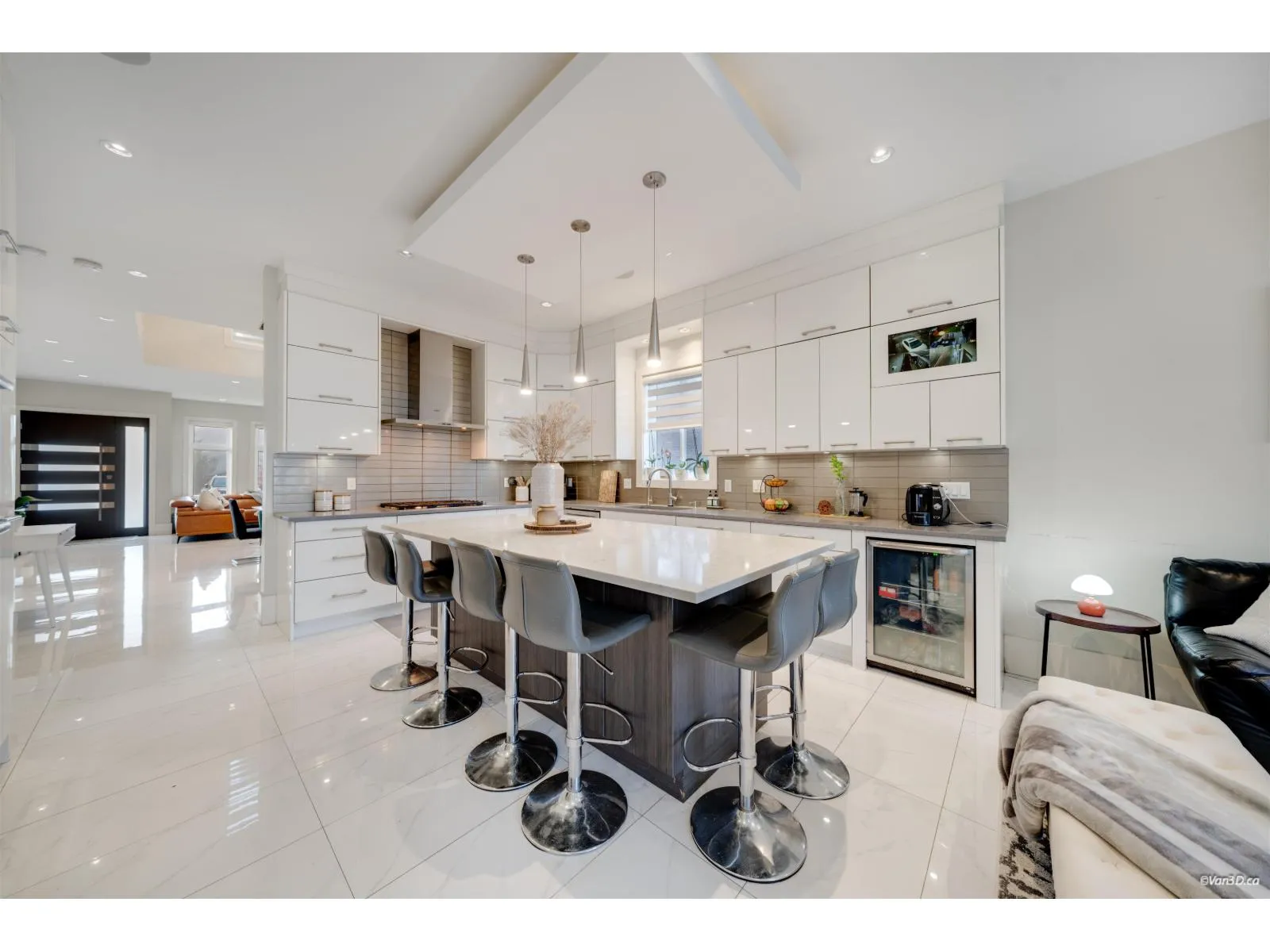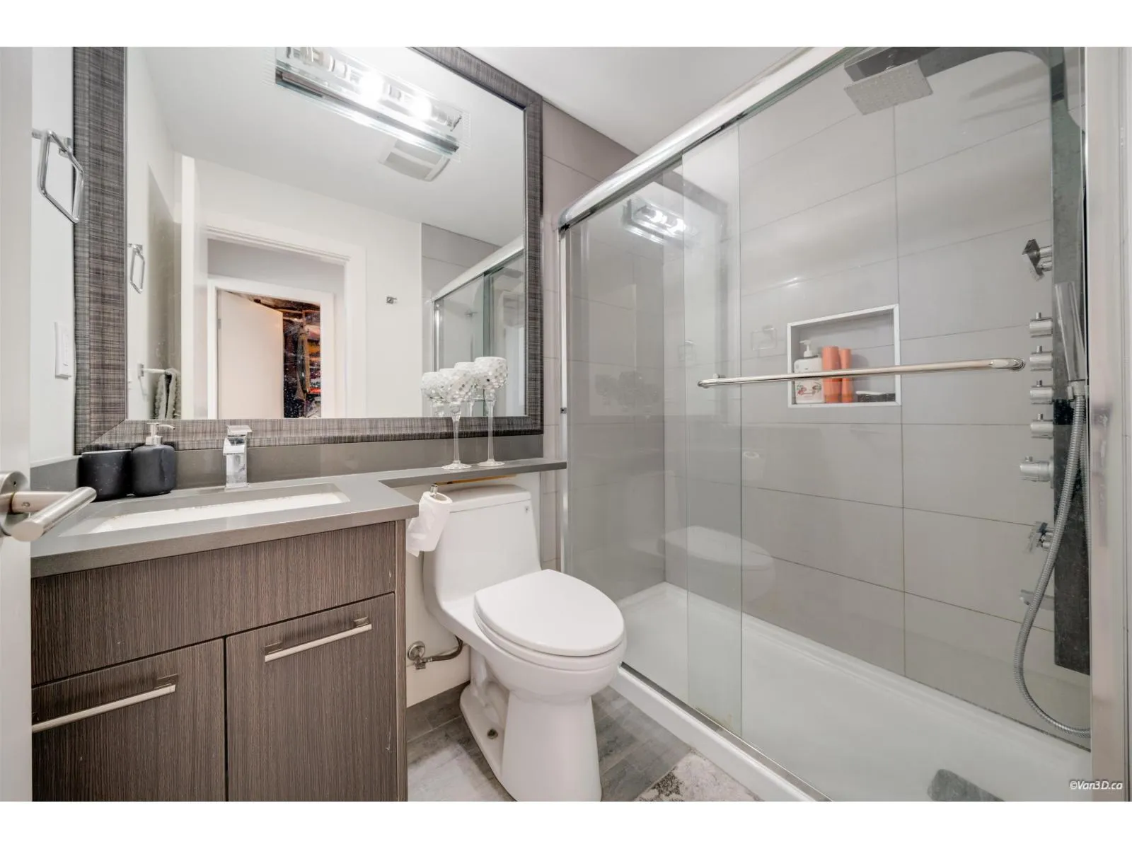 Beautiful custom-built 2-level home offering exceptional quality, functional layout, and generous living space. The main level features a spacious living room, family room, dining area, and a large maple kitchen with granite countertops, pantry, and abundant cabinetry. Elegant finishes include designer paint accents, extensive mouldings, pot lighting, and two fireplaces. Also on the main floor are two self-contained suites - a one-bedroom suite and a legal two-bedroom suite - offering excellent mortgage helper potential. The upper level boasts four generously sized bedrooms, each with its own private ensuite and access to a balcony or deck, providing comfort and privacy. Additional features include a double garage and a convenient location close to schools, SkyTrain, and shopping. A must see. (id:27476)