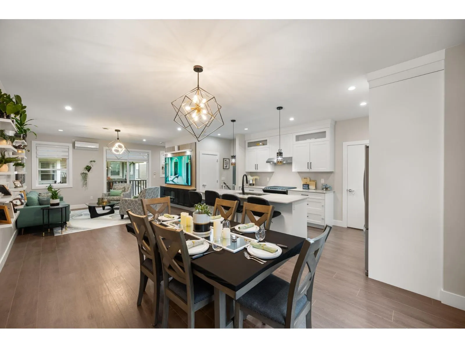 Sophisticated end-unit townhome that feels more like a detached home. Immaculately kept, it features 9-ft ceilings, open concept floorplan, custom millwork & upgraded lighting throughout. The chef-inspired kitchen impresses with a rare walk-in pantry & opens to a bright living area with access to a deck with natural gas hookup. Upstairs offers 3 generous sized bedrooms, including a spacious primary with double-sink ensuite & WIC. A versatile lower-level room can serve as a 4th bedroom, office, gym or media room. Radiant heat floors, A/C, on-demand hot water, EV-ready & double garage with epoxy flooring. Fenced backyard perfect for kids, pets & entertaining. Close to parks, walking trails, Maddaugh Elementary & Salish Secondary, 5 minutes to Costco, Willowbrook Mall, Walmart & more! (id:27476)