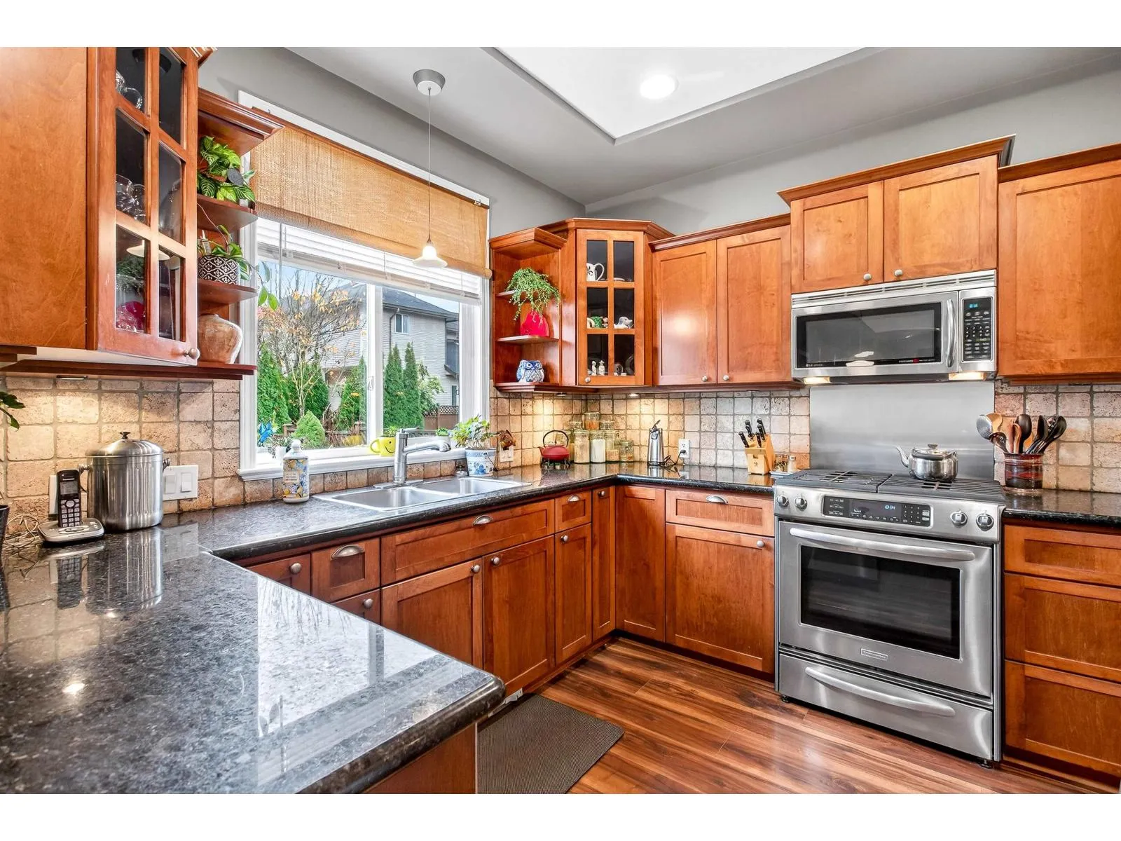 This custom built 6-bed, 4-bath home offers 3,547 sq ft of comfort on a quiet street. Conveniently located close to Cloverdale Athletic Park, schools, golf course, & local shops & restaurants. Some recent updates include high-end laminate throughout the main floor, & luxury vinyl plank downstairs. A stylish kitchen boasts stainless appliances, granite counters, tumbled marble backsplash, & a pantry. Upstairs includes laundry & a large primary bedroom with a spa-like 5pc ensuite & spacious walk-in closet. Downstairs you'll find a fully finished basement with a large 2-bed suite with private patio & separate entry. You'll love the south-facing backyard with a covered deck, new fence, beautiful landscaping, & offset from the neighbouring houses for added privacy. Open House Sun, Feb 15, 2-4pm (id:27476)