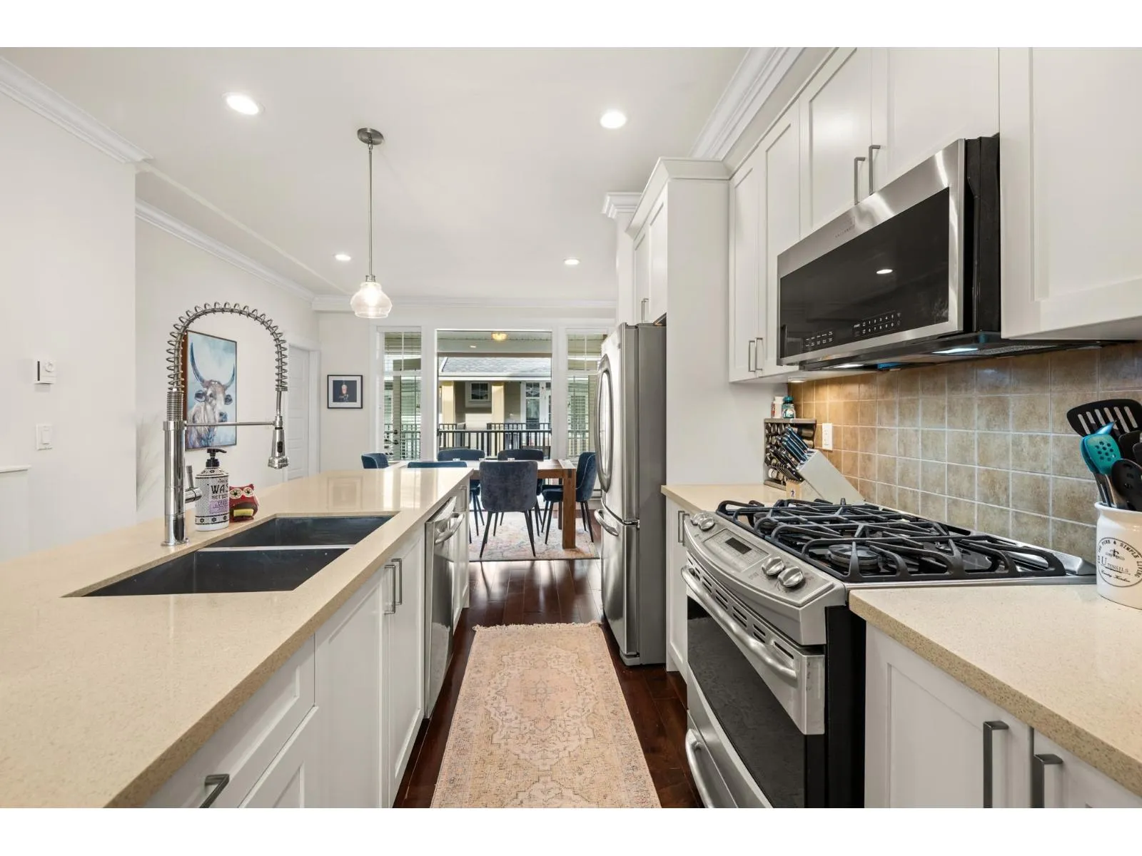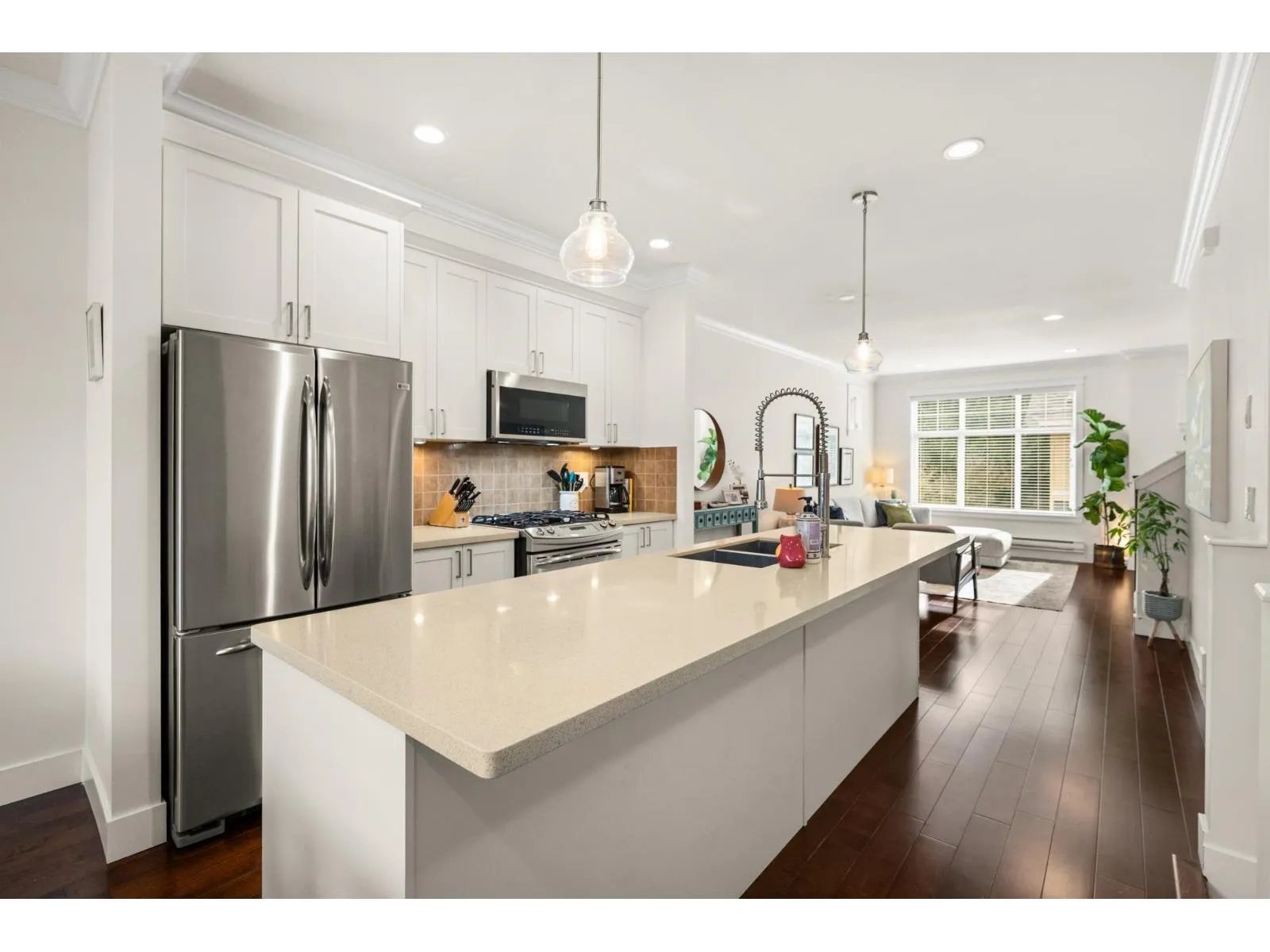 Welcome to Augusta, family-friendly community in a quiet neighbourhood where kids can truly thrive. Just steps from the elementary school, this well-kept 3 bed, 3 bath home offers everyday convenience with quick access to Hwy 99. Inside, the open-concept main floor features a spacious layout with an oversized centre island, gas stove, quartz countertops, and stainless steel appliances-perfect for entertaining or busy family life. Large windows flood the home with natural light, while a cozy gas fireplace creates a warm, welcoming atmosphere. Step outside from the kitchen to a private patio made for summer BBQs, leading to a fully fenced backyard tucked behind a tandem two-car garage. Spend weekends exploring White Rock Beach, Peace Arch Park, or teeing off at The Hills at Peace Portal. (id:27476)