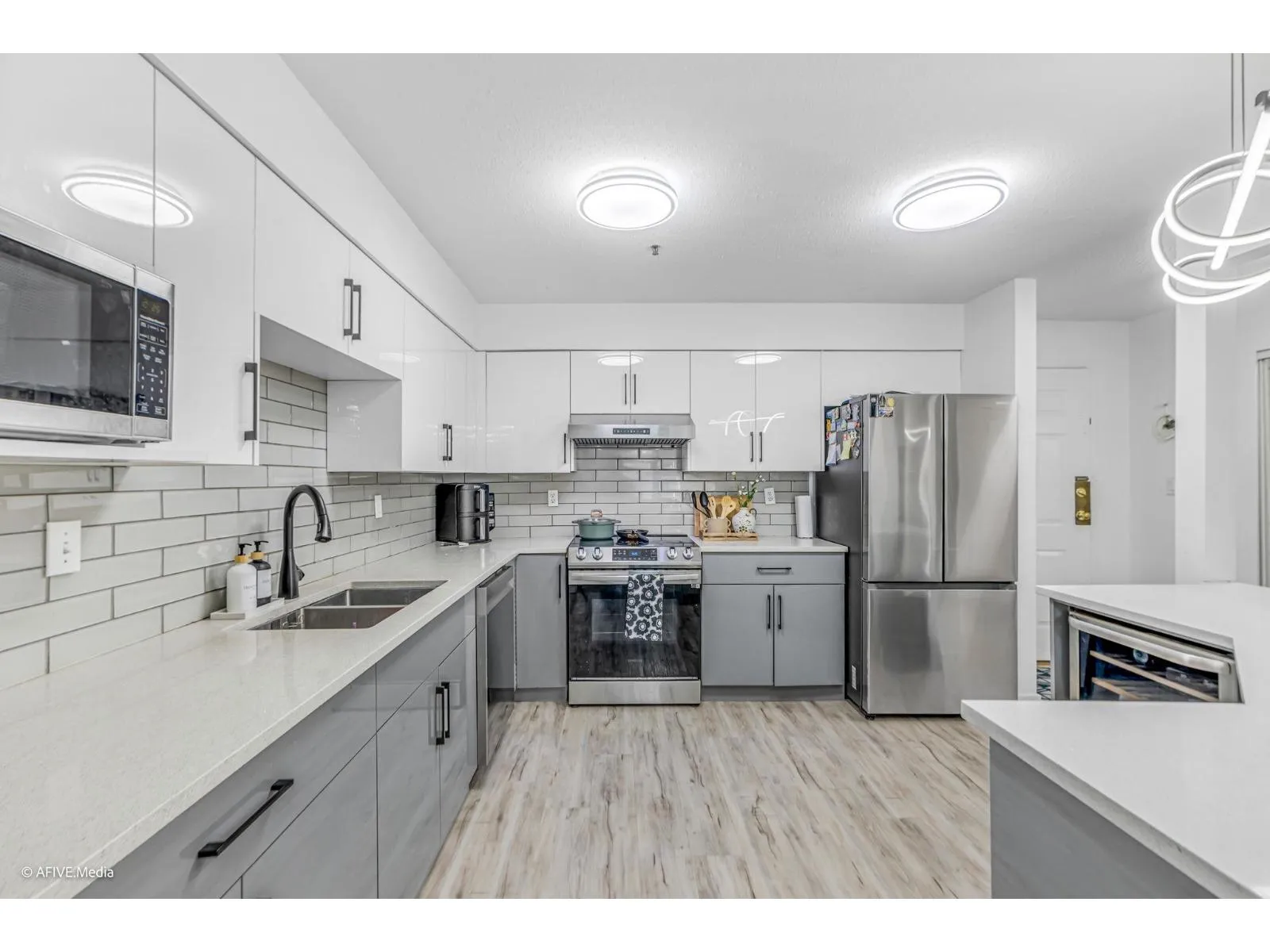 Experience urban convenience in this meticulously maintained 2-bed, 2-bath residence. Boasting 1,235 sq ft, this home features generous bedrooms, renovated kitchen cabinets, a wine cooler, new laminate flooring, and a private balcony overlooking a peaceful courtyard. Unbeatable Location: Steps to Scott Road-just a 2-minute walk to Fruiticana, Canadian Tire, Gym, Tim Hortons, Best Buy and Superstore. Enjoy diverse restaurants and transit at your doorstep, plus proximity to schools, parks, and gurdwara. Live with peace of mind in a proactively managed, pet-friendly building with secure underground parking. Whether you're a first-time buyer or downsizing, this prime location offers easy access to everything you need. Book your showing today! (id:27476)