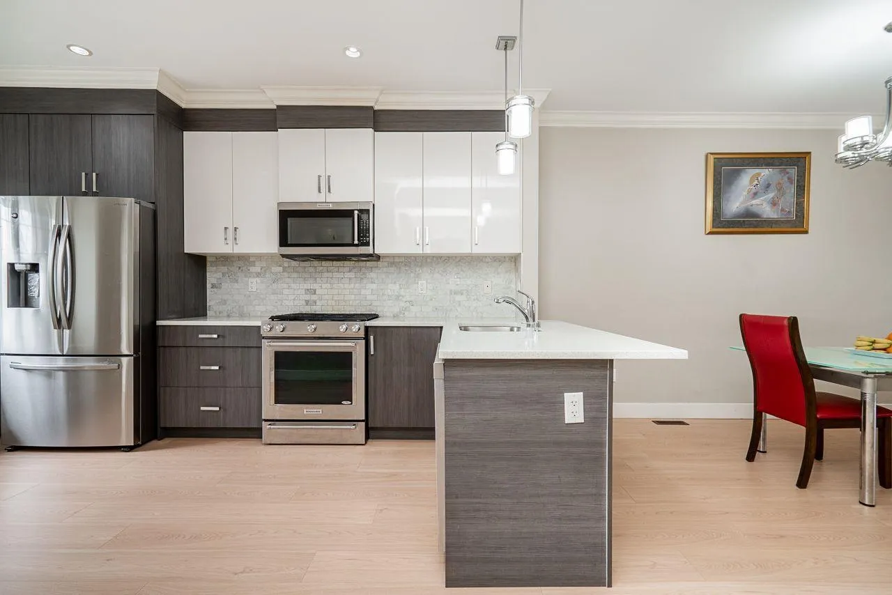 Welcome to the Perfect Family Home in The Heights! This stunning 3-bedroom, 3-bathroom townhouse offers over 1,400 sq ft of comfortable living space. Step inside to a bright and open-concept layout featuring a spacious kitchen, dining, and living area flooded with natural light. The luxury kitchen is equipped with stainless steel appliances, a gas stove, and quartz countertops. Beautiful new laminate flooring flows throughout the house adding a modern touch. The complex offers plenty of visitor parking, and the tandem garage provides ample storage space. Centrally located just steps from the upcoming SkyTrain station, this home is minutes from Costco, Walmart, Willowbrook Shopping Centre, Latimer Road Elementary, and Clayton Heights Secondary. This is a property you won't want to miss! (id:27476)
