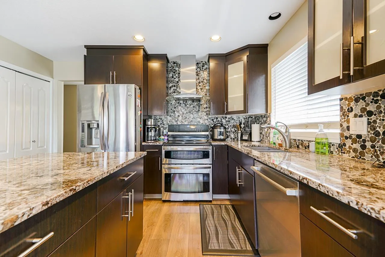 The perfect home for extended family or a great mortgage helper. Legal 2-bedroom, 2-bath suite fully renovated to the same high standard as the main home. Both kitchens feature granite countertops and stainless steel appliances. Primary bedrooms on both levels include private ensuites. Bright, spacious layout with new waterproof laminate flooring throughout. Enjoy a private, fully fenced backyard with gas BBQ hookups on both levels, powered shed, and hot tub hookup. Situated on a rare 9,500+ sq ft lot ideal for kids, entertaining, and future potential. A standout opportunity in this neighbourhood, don't miss it! Open House Sun Feb 15th 2 - 4pm (id:27476)