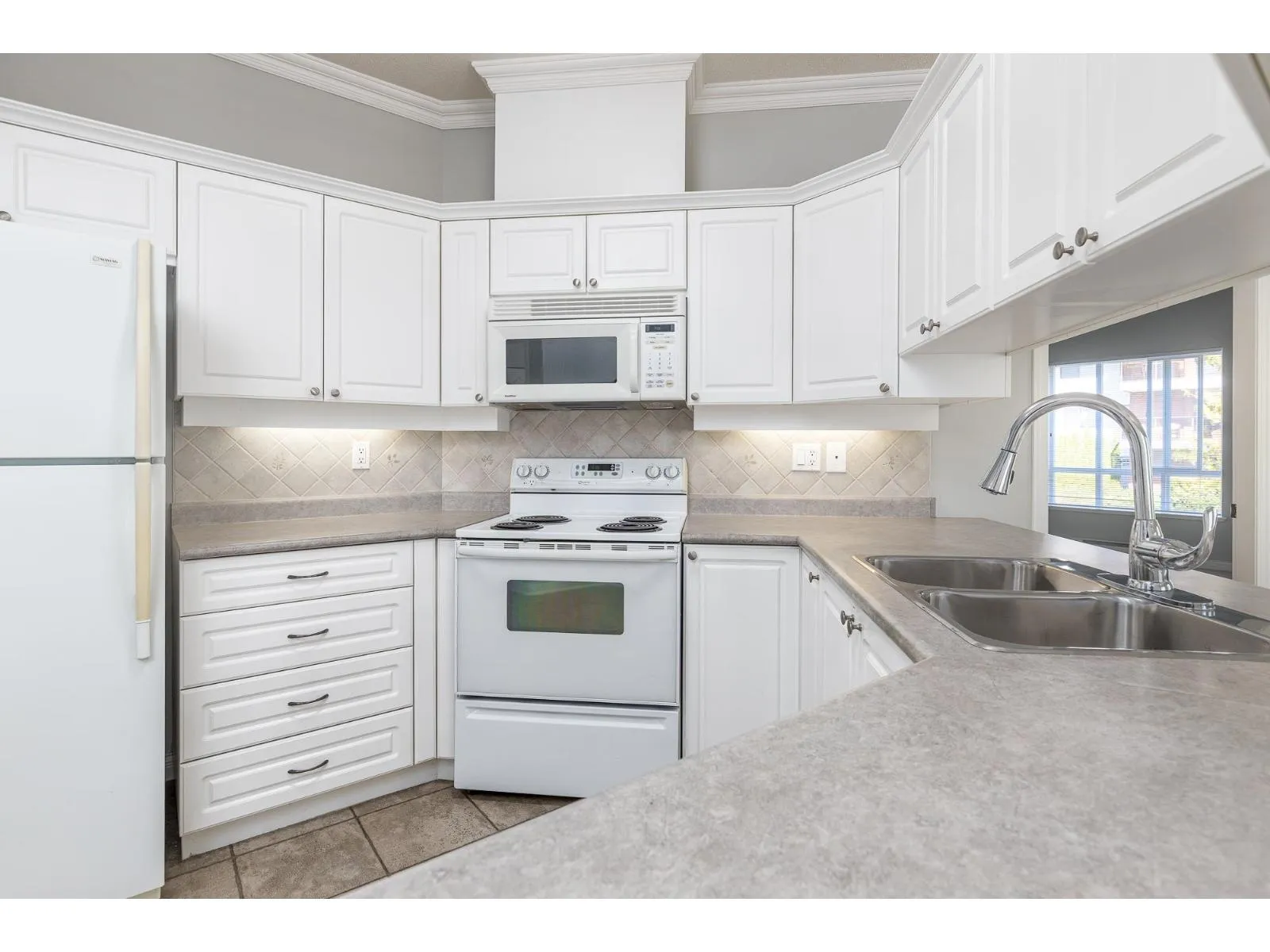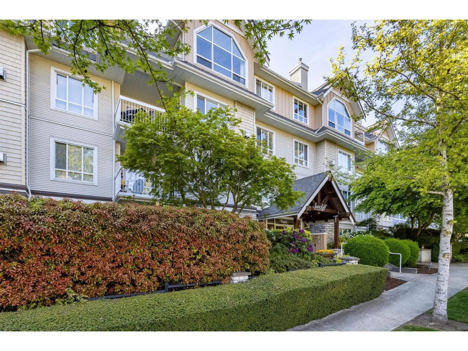 Welcome to Suncliff Place, and this bright and spacious end-unit condo in the heart of South Surrey! This 2 bed, 2 bath home offers just over 1,000 sq ft of comfortable living with abundant natural light from large windows throughout. Bring your imagination to updating this amazing home, to make it your own! Enjoy the cozy gas fireplace, open-concept layout, and a well-maintained building in a quiet, desirable location. Walk to shops, restaurants, and just a short drive to the iconic White Rock Pier and Esplanade. Includes 2 parking stalls, large locker and plenty of charm... perfect for downsizers, professionals, or anyone seeking coastal living with urban convenience. Don't miss this rare find! Age restricted 55+ no pets, no smoking. OPEN HOUSE FEB 15, 1-3pm (id:27476)