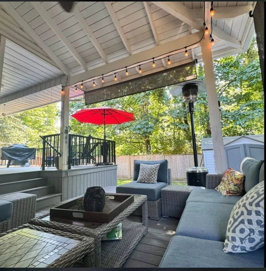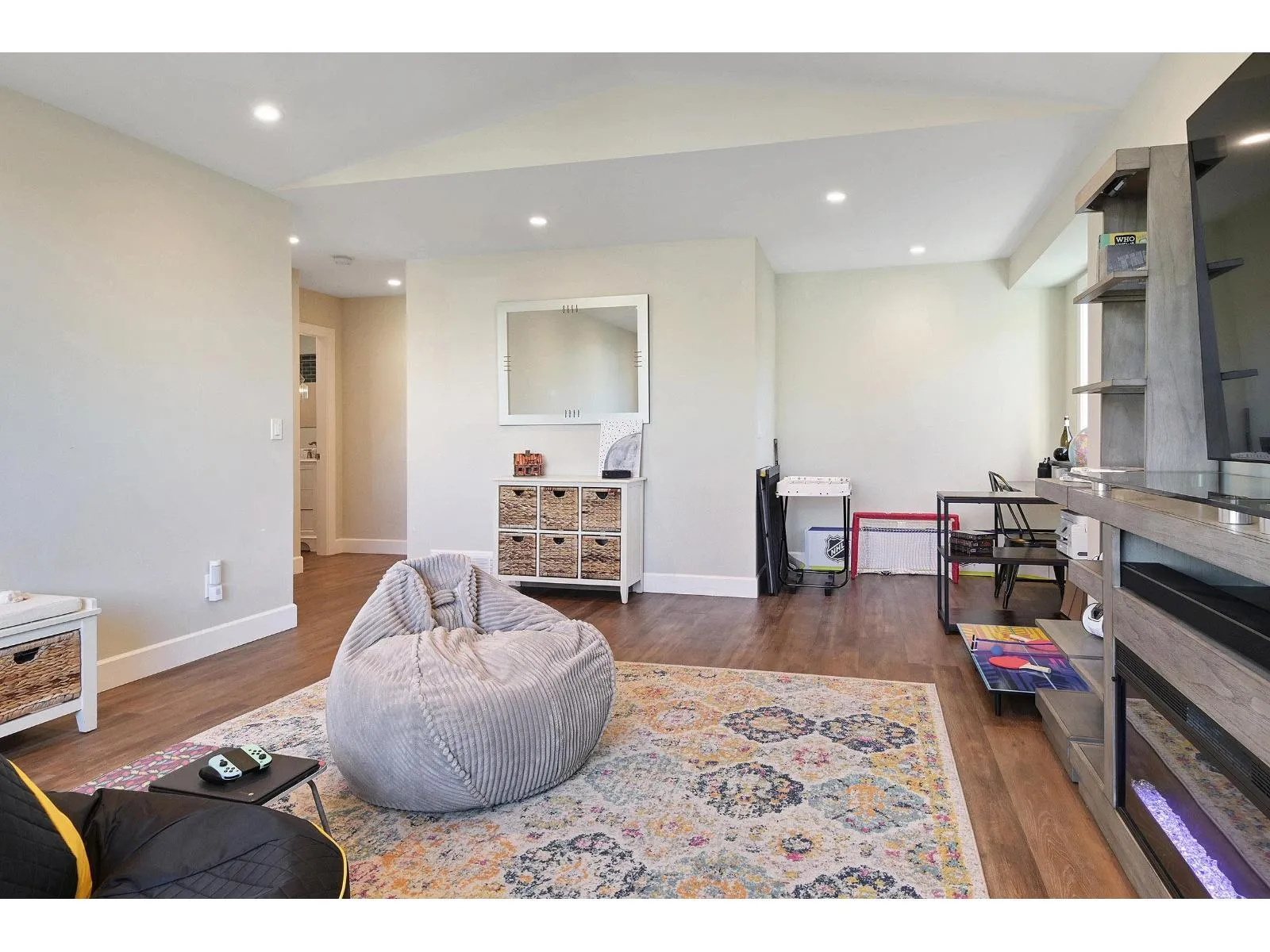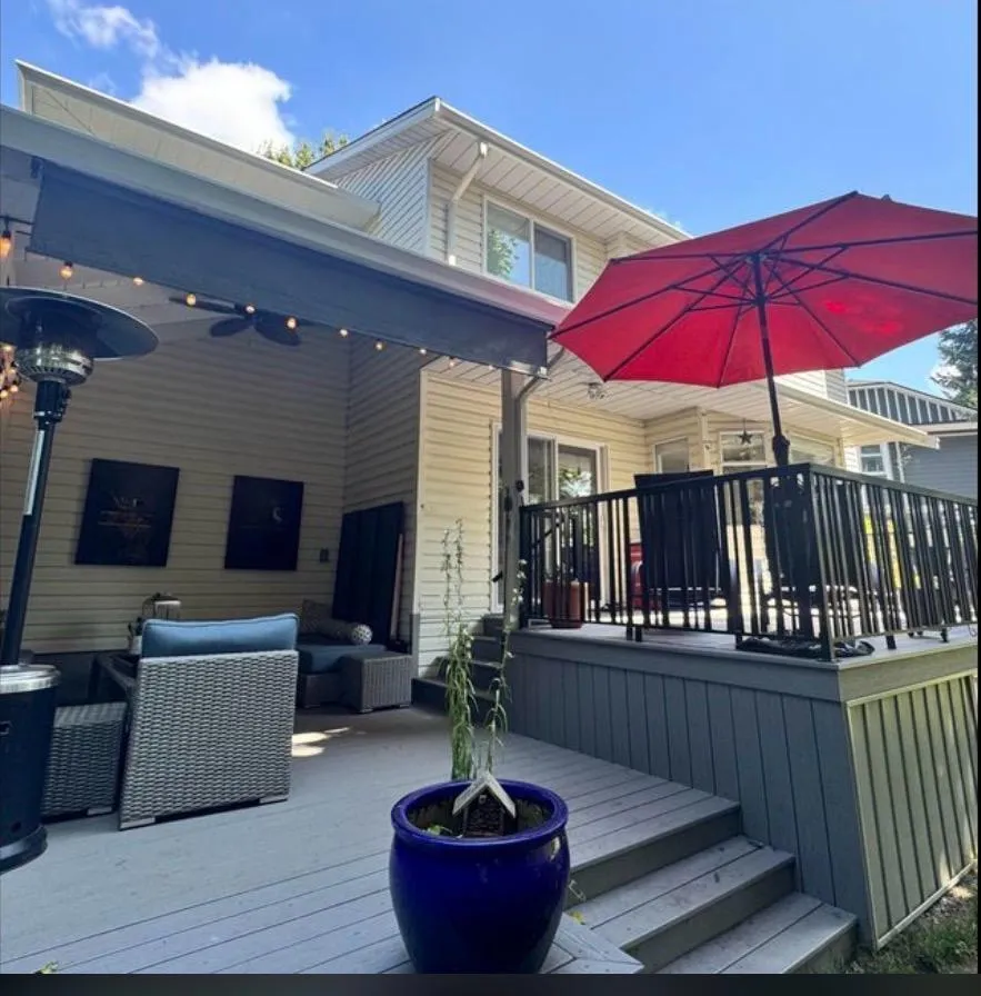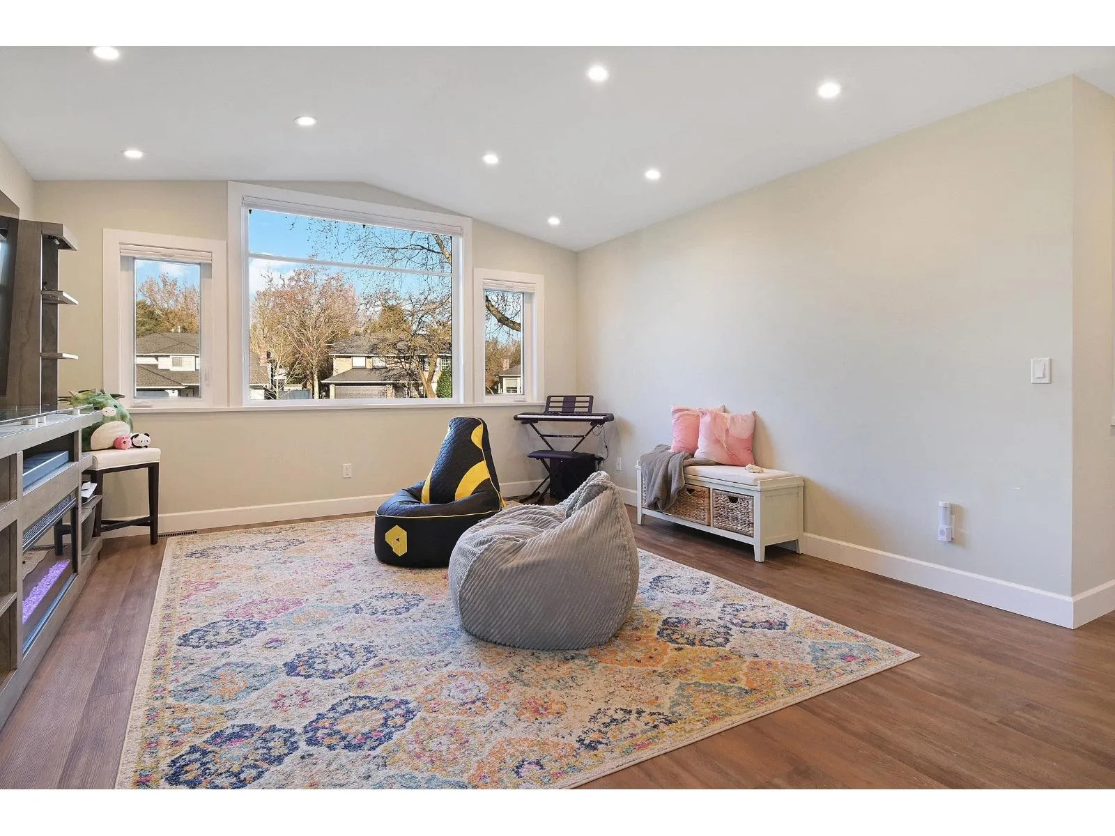 Renovated by the award-winning "My House Design/Build Team", this beautifully updated home offers nearly 2,400 sq. ft. of living space on a private 7,000+ sq ft lot in a quiet cul-de-sac, backing onto a protected forest for unmatched privacy. Inside, you'll find luxury grade vinyl plank flooring throughout, a new fridge and stove, updated furnace, AC, and a hot water tank. A standout feature is the expansive flex room addition above the garage accessed via a separate staircase off the dining area designed to function like a basement. Whether used as a home office, gym, media room, or a potential 1-bedroom suite (with coach-house-style layout), it adds incredible flexibility to the home. The covered composite deck is perfect for entertaining. 350k in updates combines comfort and privacy. (id:27476)