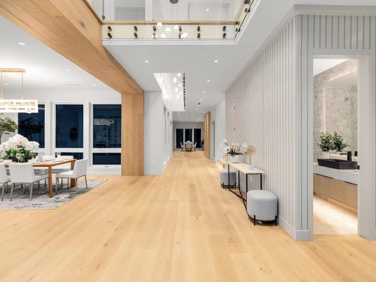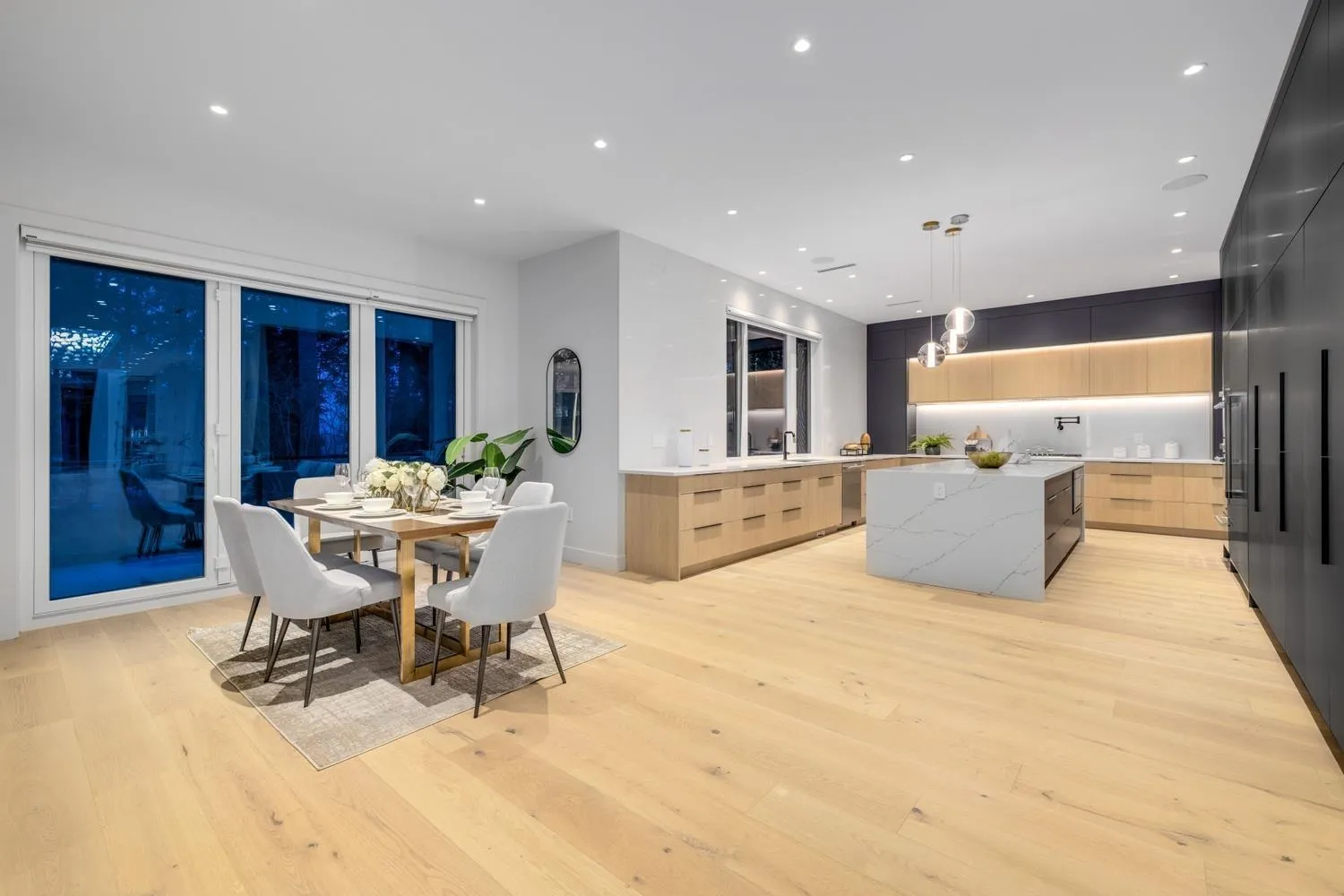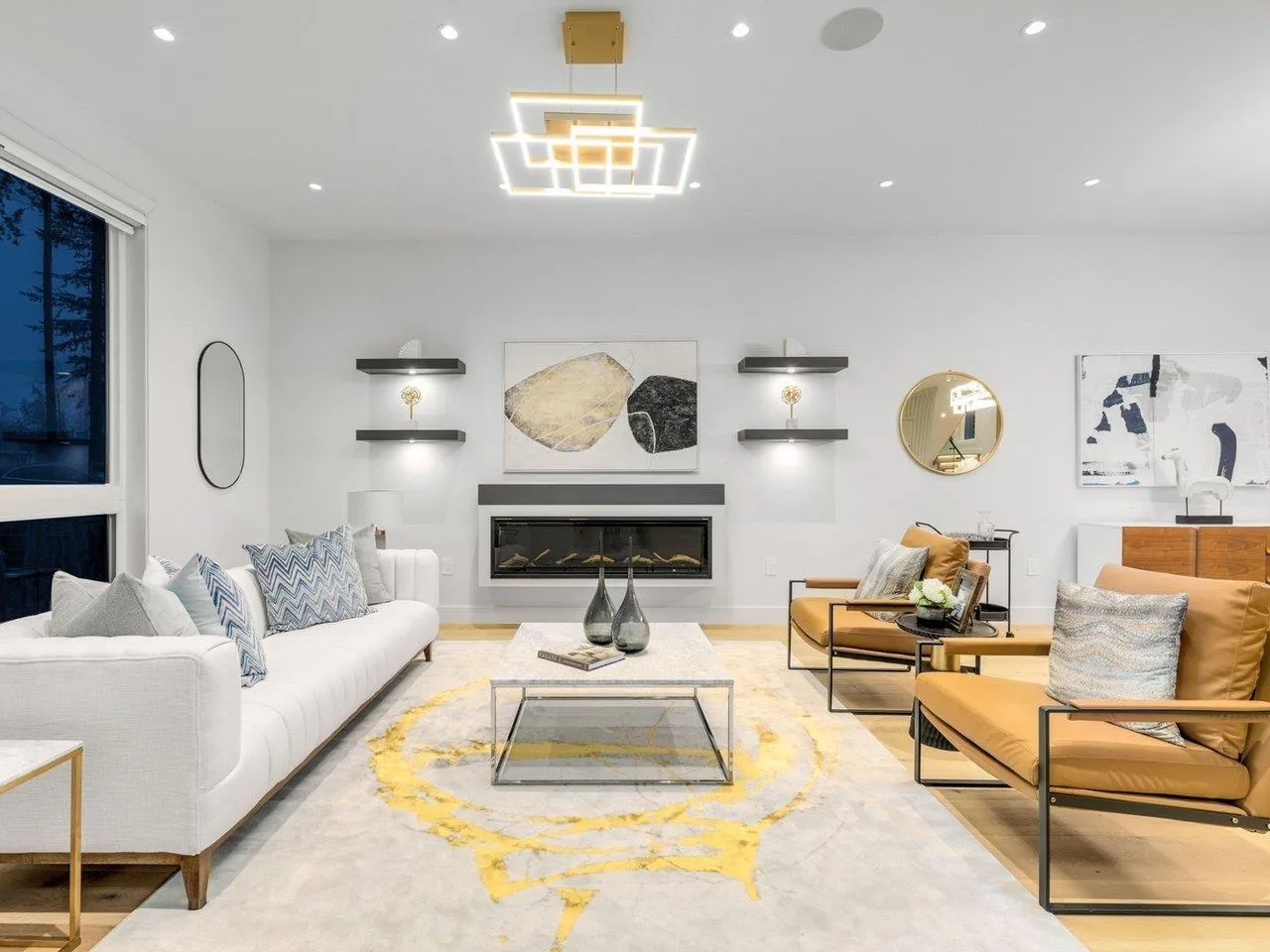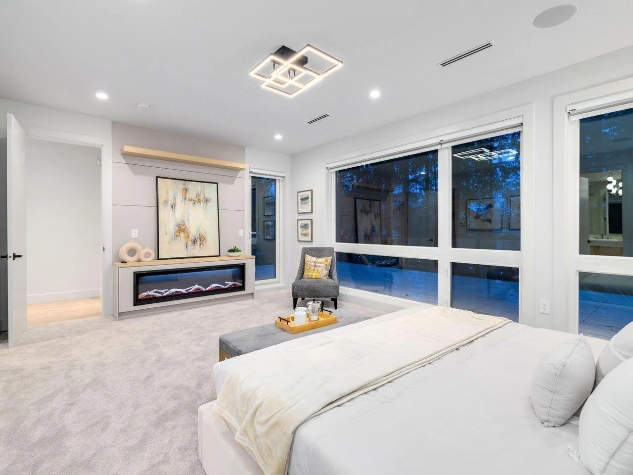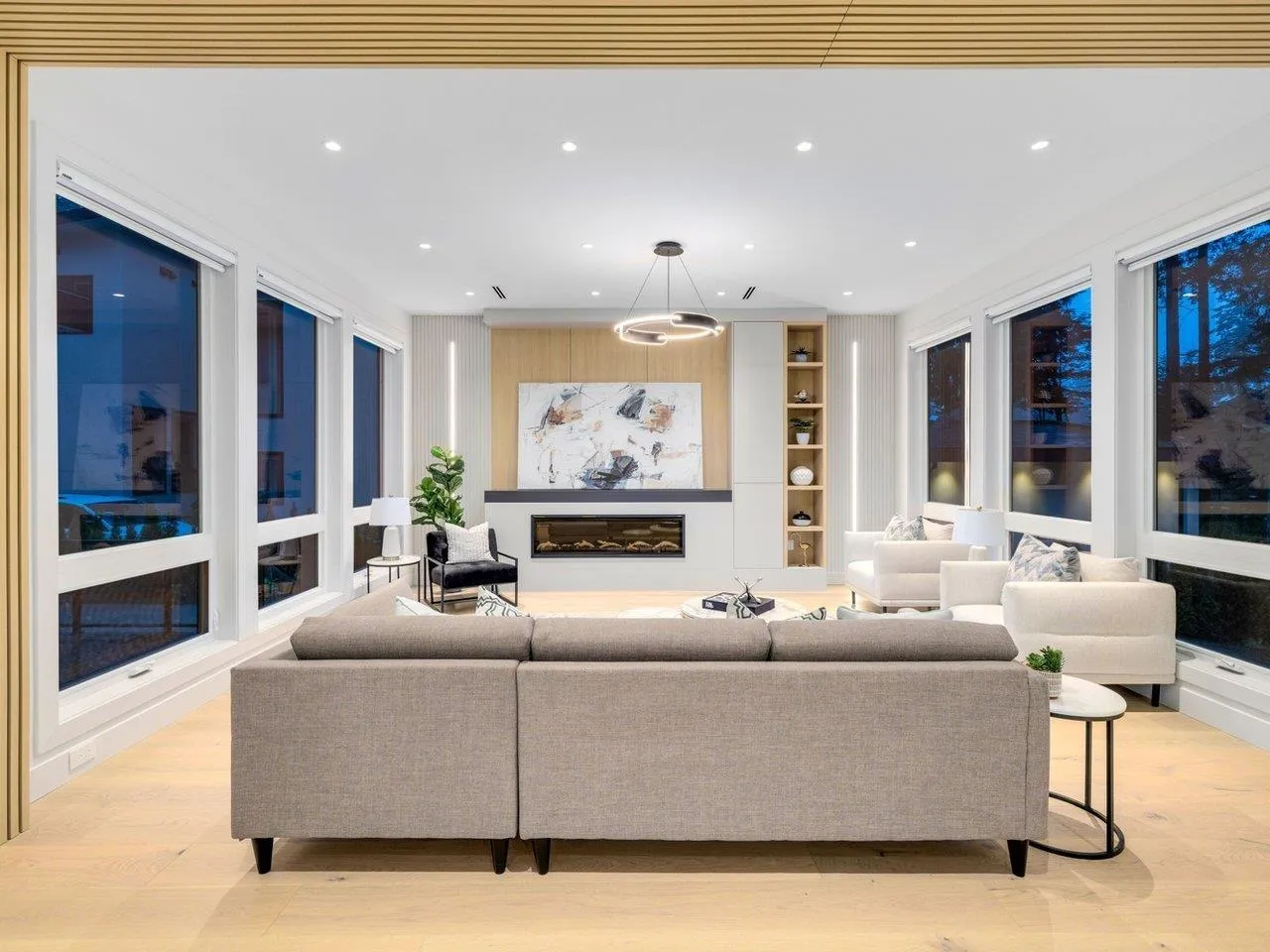 MODERN YET FUNCTIONAL LUXURY HOME! This elegant residence seamlessly blends contemporary design with practical living, offering the perfect balance of style and functionality.The main floor boasts an open-concept layout featuring a glass-door home office, a private bdrm with an ensuite, & two kitchens, equipped with waterfall islands and top-of-the-line appliances. Upstairs, discover four spacious ensuites, including a luxurious primary bdrm with floor-to-ceiling glass windows and access to a private deck. A cozy sitting area provides an ideal space to relax and unwind. The lower level offers a gym, a media room, and a 2-bedroom legal suite with separate access. A self contained coach house, , ample front parking, abundant natural light, designer lighting fixtures, a private backyard. (id:27476)