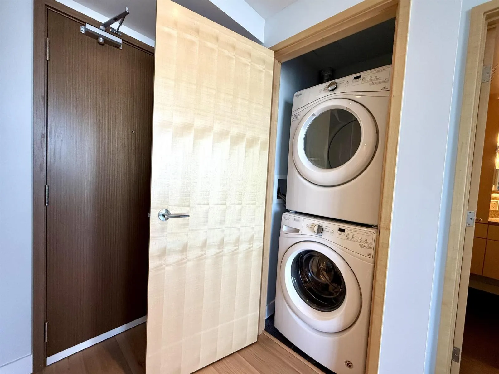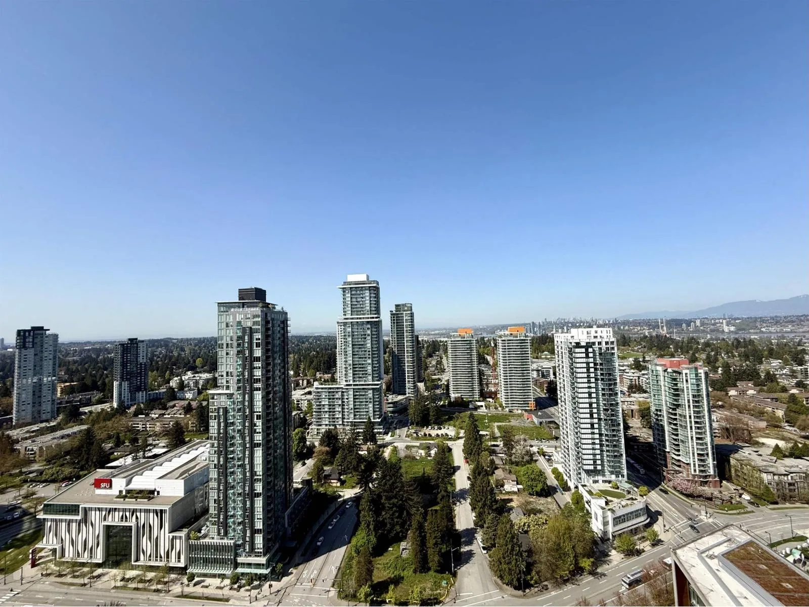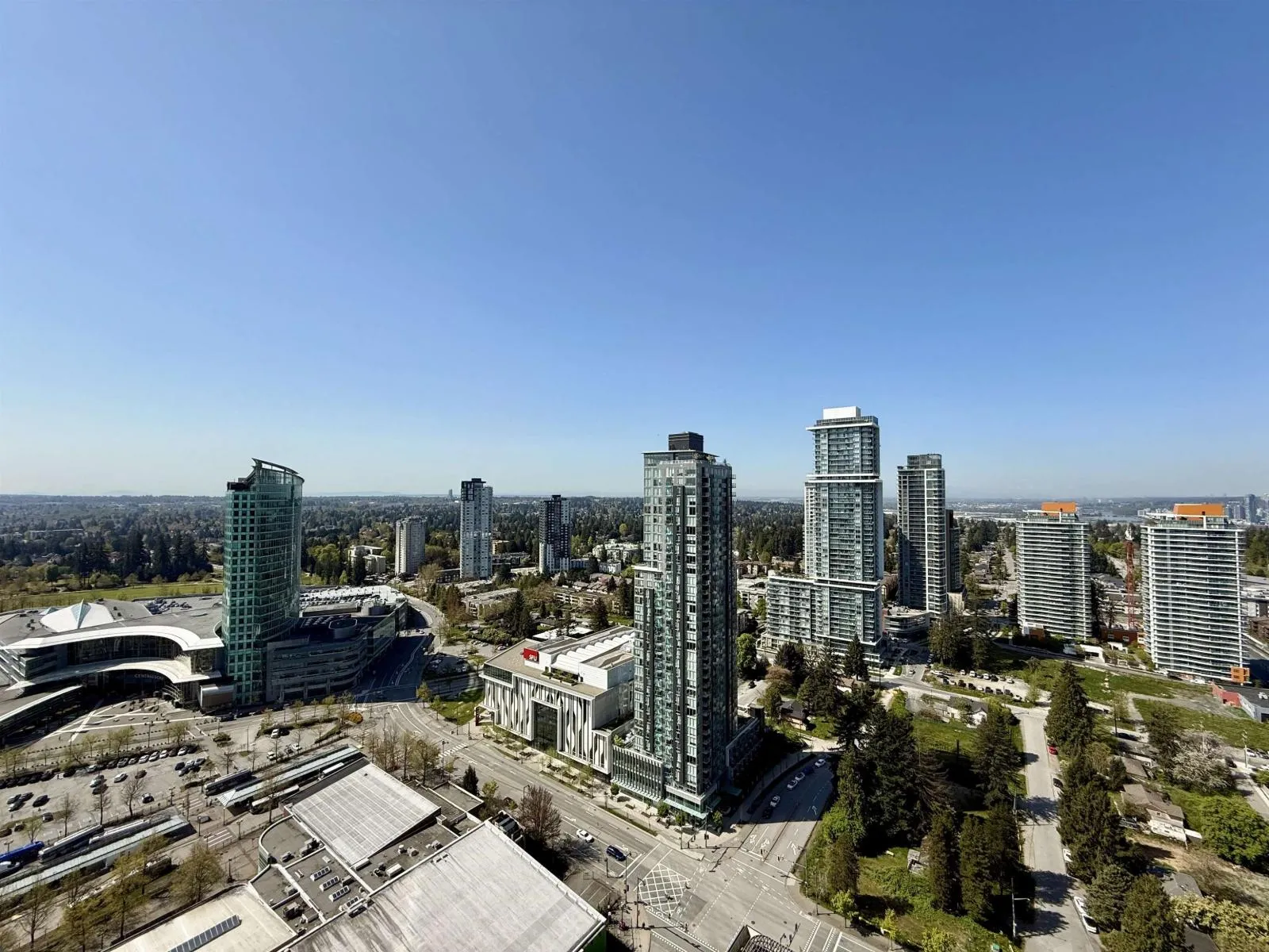 Welcome to this bright west-facing 1 bed, 1 bath home on the 33rd floor at 3 Civic Plaza, offering stunning city views from 516 sq.ft. This well-designed unit features hardwood floors, open concept kitchen with quartz countertops and stainless steel appliances, radiant heating, air conditioning, and in-suite washer/dryer. Includes 1 parking and 1 storage locker. Steps to Surrey Central SkyTrain, SFU, library, recreation centre, shopping, and dining. (id:27476)