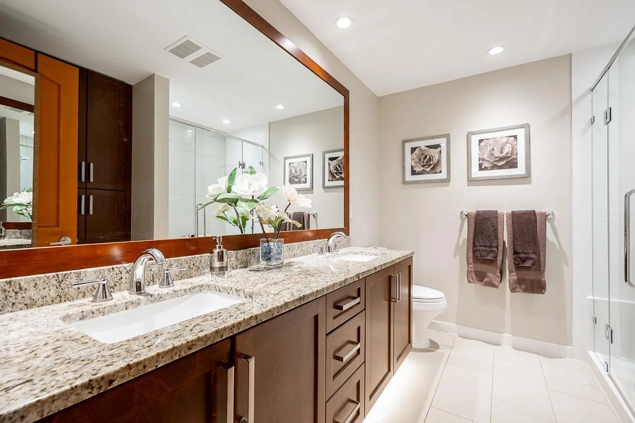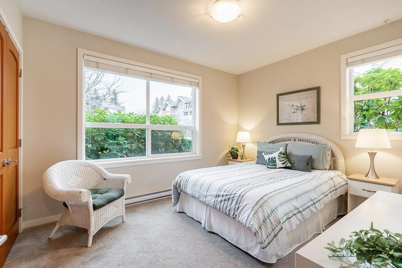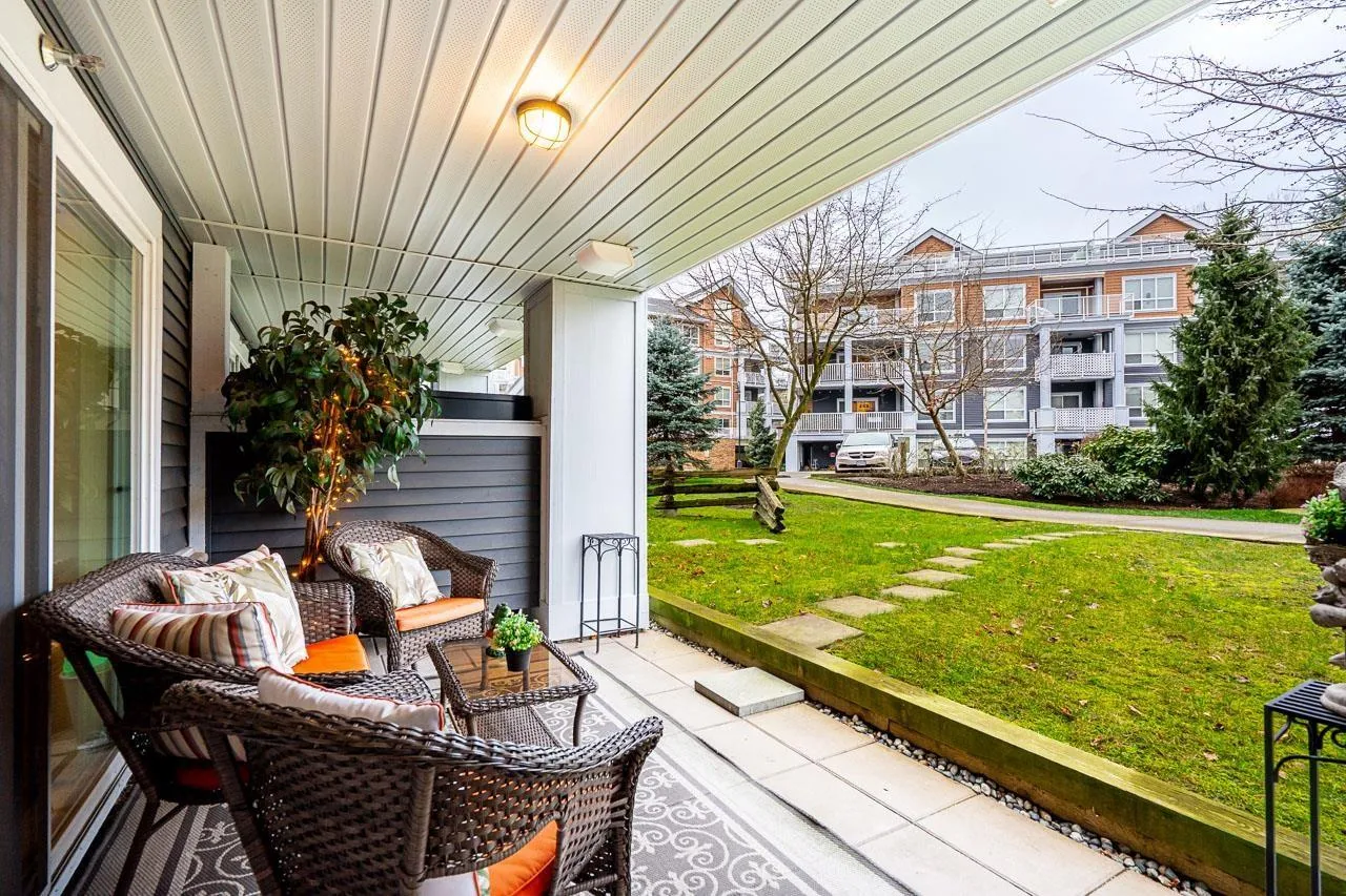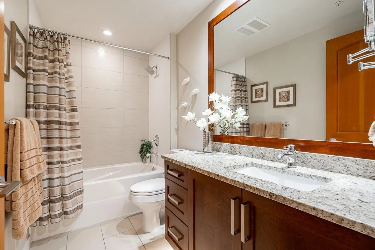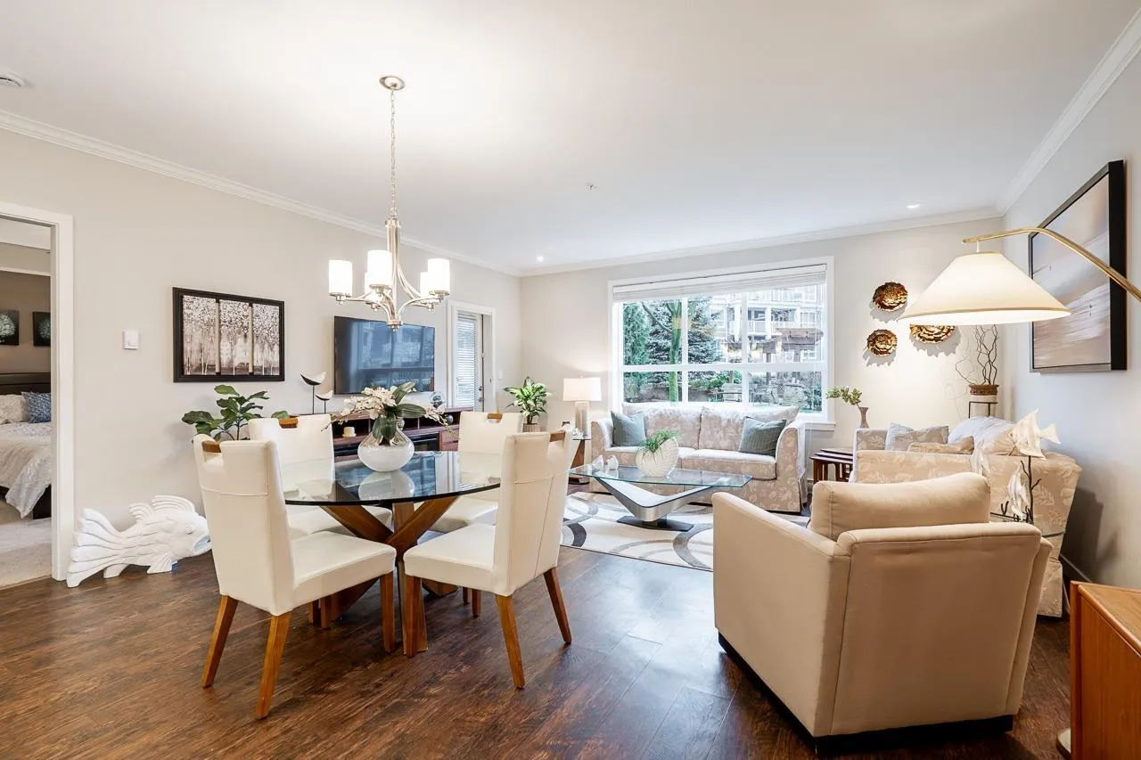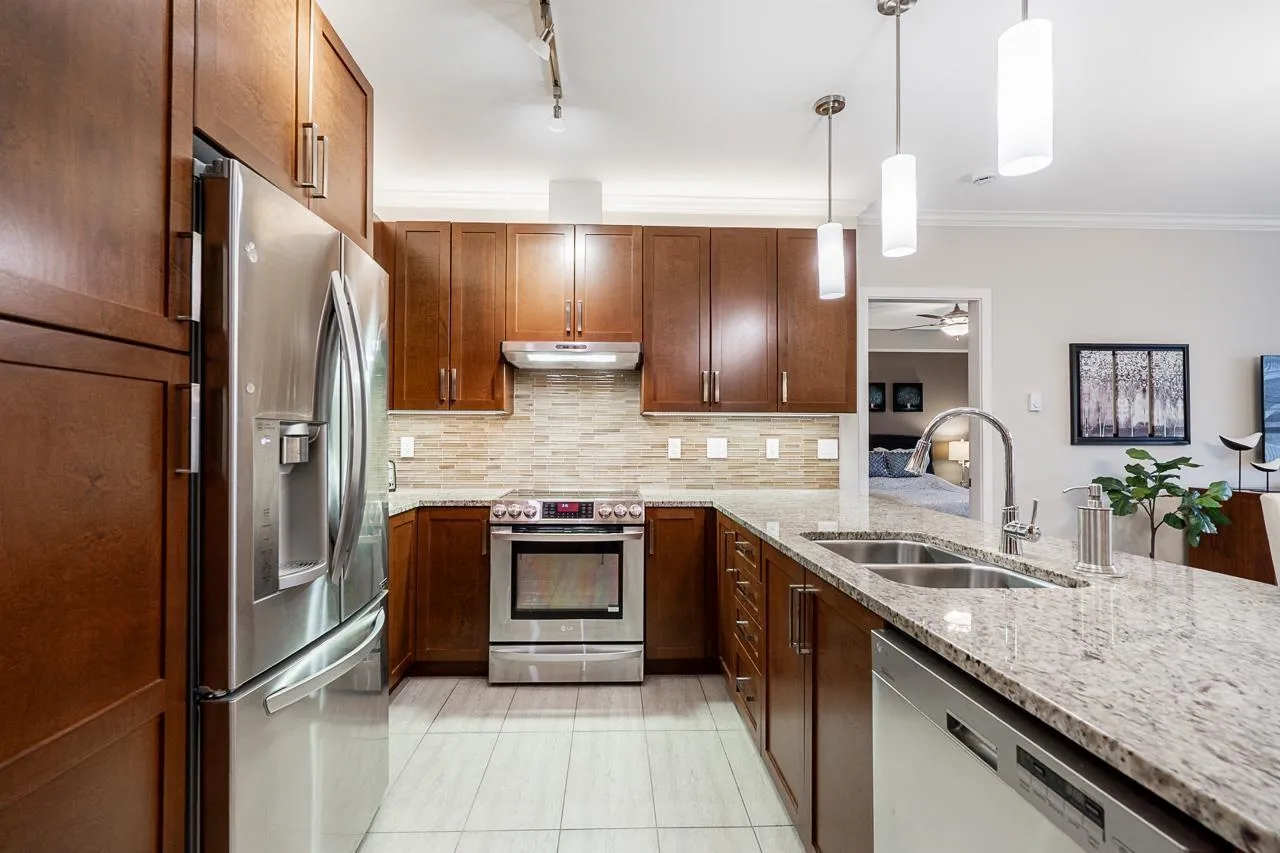 Welcome to this beautifully upgraded 2 bedroom plus den home in Waterstone, one of the most sought-after communities in Clayton. This residence offers a thoughtful layout with premium finishings, exceptional storage and parking options rarely found in condo living. Enjoy heated floors in the kitchen and both bathrooms, upgraded lighting throughout including pot lights and above and under-cabinet lighting. The primary ensuite offers a 5 ft walk-in shower and custom cabinetry, creating a spa-like retreat. This home includes 2 parking stalls, an extra-deep mini garage capable of EV charging, and an abundance of additional storage. North-facing exposure overlooks the beautifully landscaped gardens, providing a private and cooler outlook in the summer months. Residents enjoy resort-style amenities including an indoor pool, hot tub, gym, theatre, party room, and guest suites, all within walking distance to shops, restaurants, transit, and schools. (id:27476)