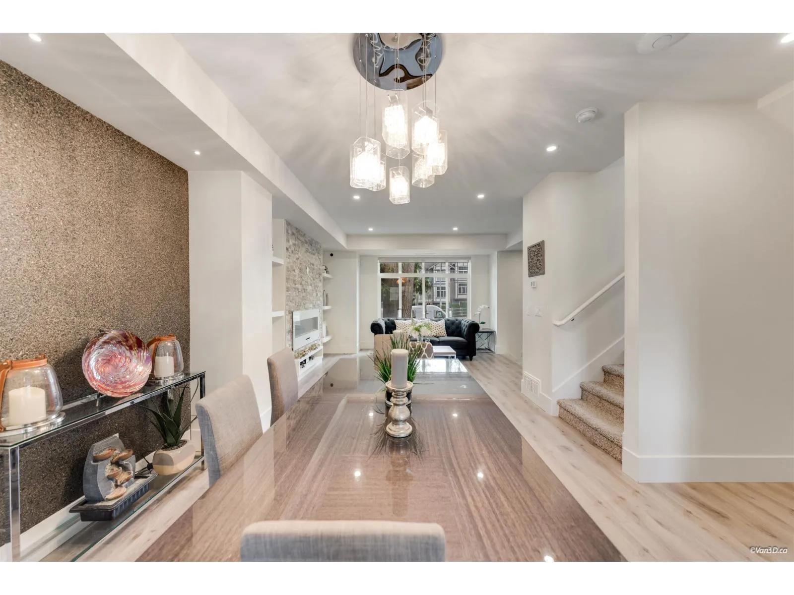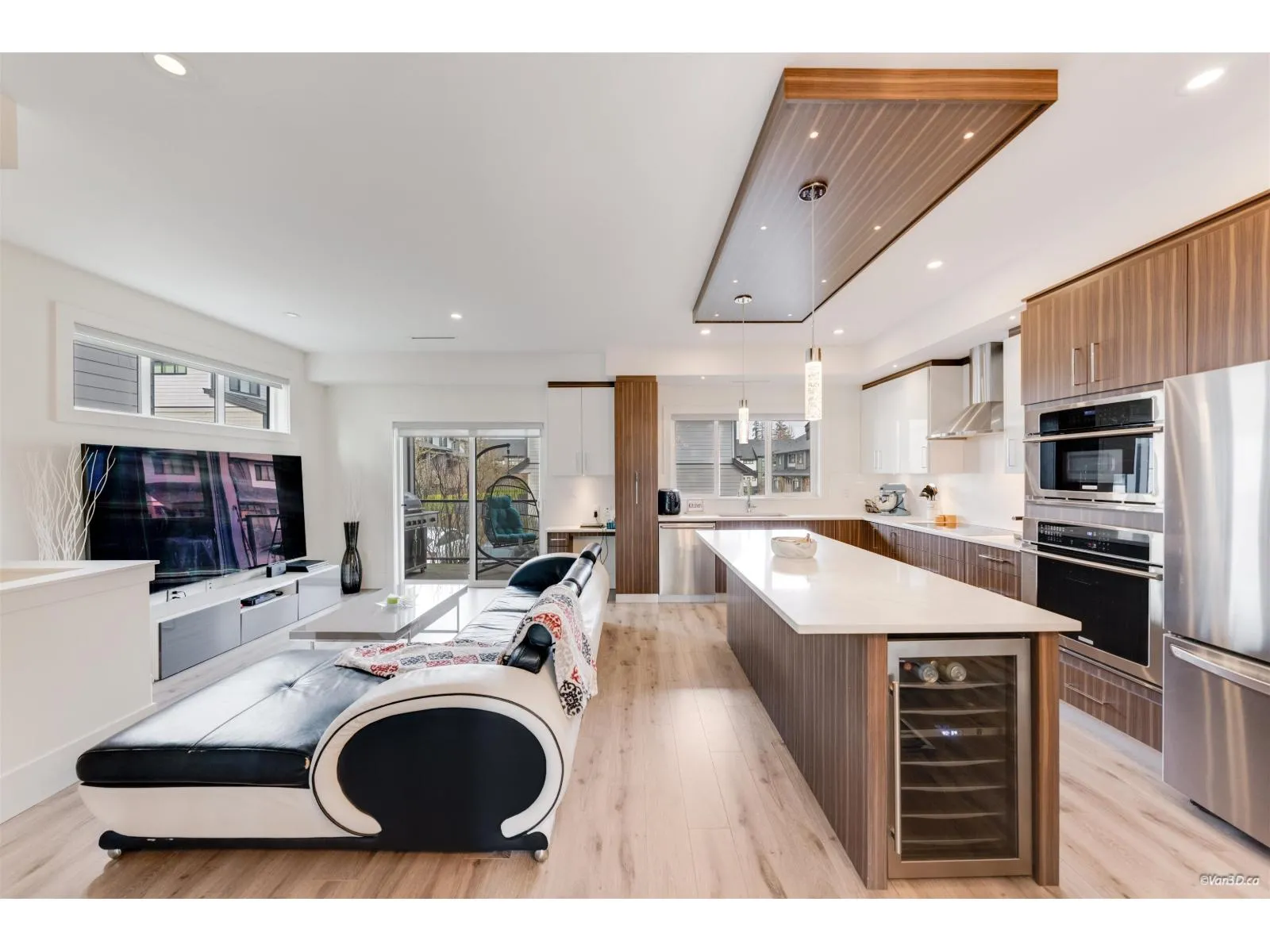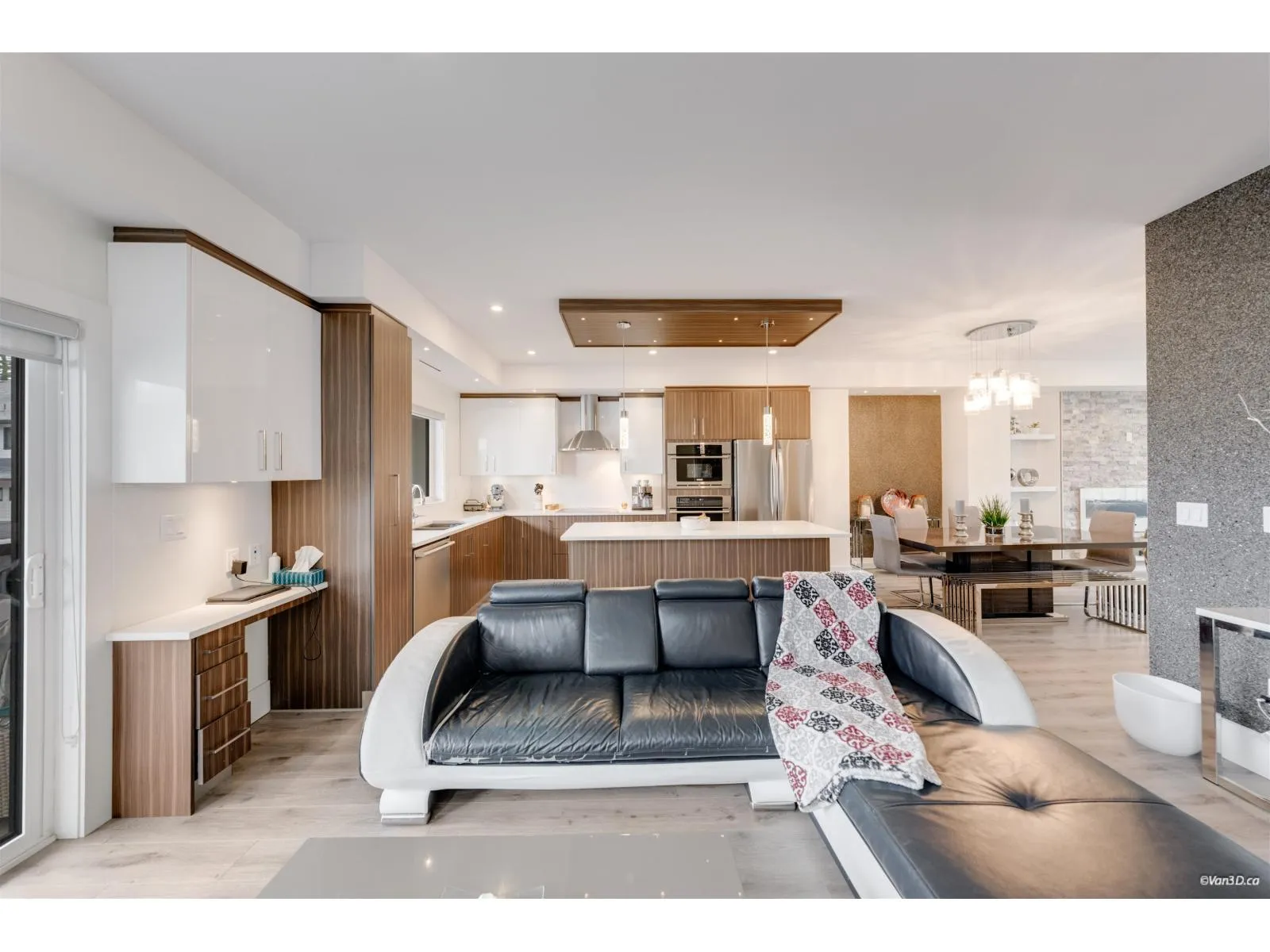 Beautifully designed Sullivan Station home featuring elegant textured walls, a striking stone fireplace feature wall, and a custom wall insert for a hutch in the spacious dining room. The bright kitchen offers a large window, double sinks, Electrolux cooktop, double wall ovens, beverage fridge, and an oversized island opening to the inviting family room - perfect for daily living and entertaining. Enjoy the generous balcony ideal for gatherings. Upstairs, the large primary bedroom includes a walk-in closet and spa-inspired ensuite with double sinks, makeup table, and oversized shower. The basement features a versatile flex room or extra bedroom with a full bathroom. Close to excellent schools, parks, shopping, and easy access to Hwy 10 for commuters. Complete by a side-by-side double garag (id:27476)