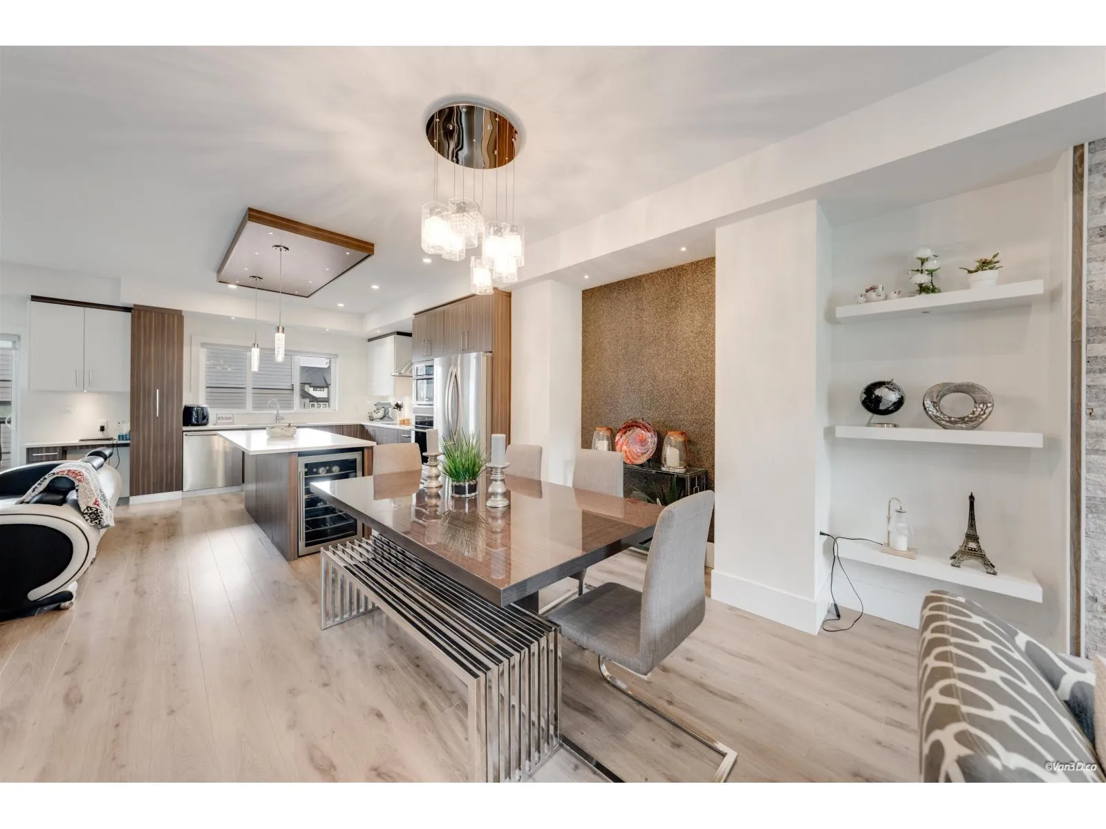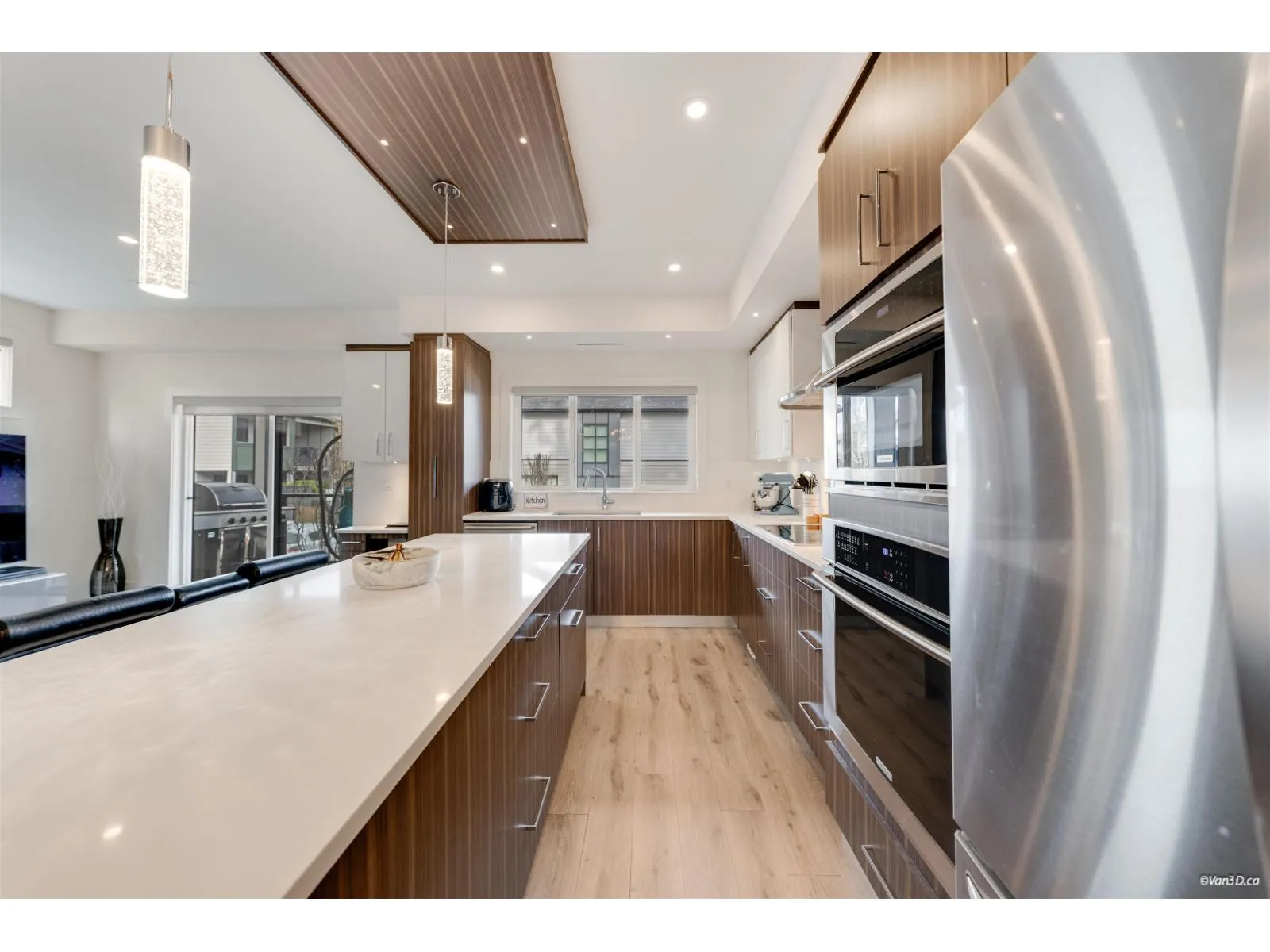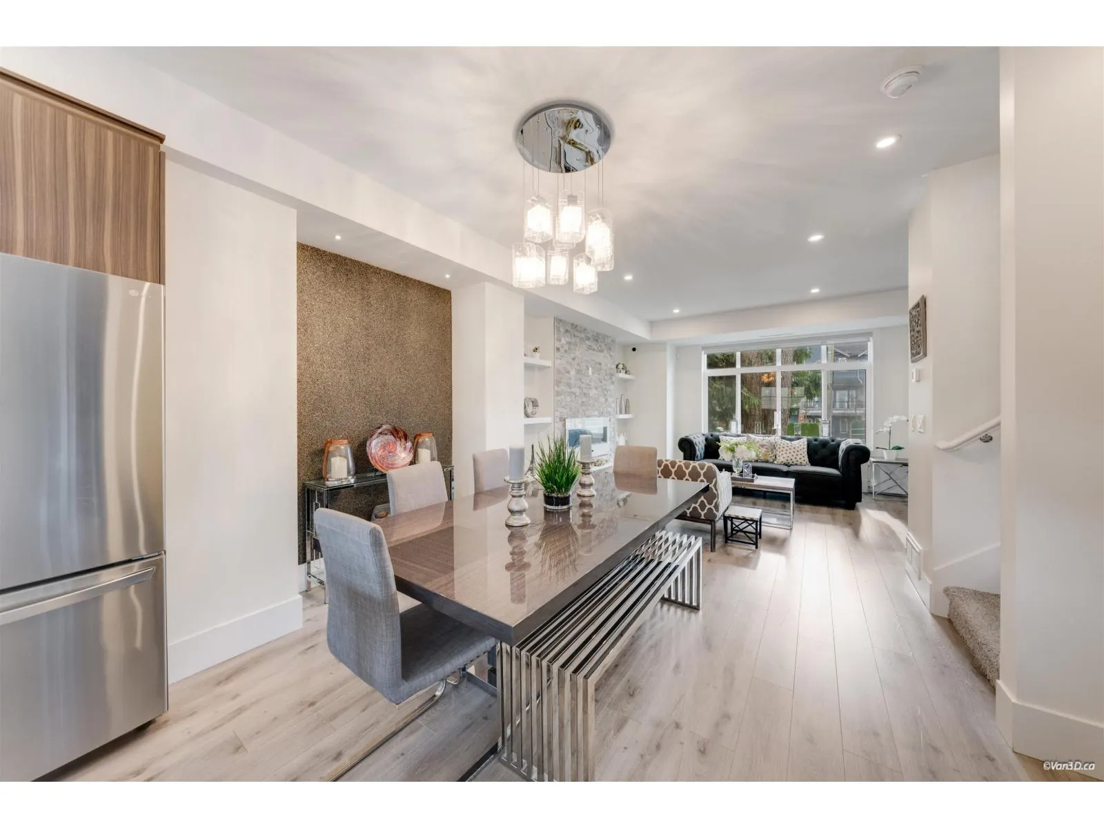 Beautifully designed Sullivan Station home featuring elegant textured walls, a striking stone fireplace feature wall, and a custom wall insert for a hutch in the spacious dining room. The bright kitchen offers a large window, double sinks, Electrolux cooktop, double wall ovens, beverage fridge, and an oversized island opening to the inviting family room - perfect for daily living and entertaining. Enjoy the generous balcony ideal for gatherings. Upstairs, the large primary bedroom includes a walk-in closet and spa-inspired ensuite with double sinks, makeup table, and oversized shower. The basement features a versatile flex room or extra bedroom with a full bathroom. Close to excellent schools, parks, shopping, and easy access to Hwy 10 for commuters. Complete by a side-by-side double garag (id:27476)