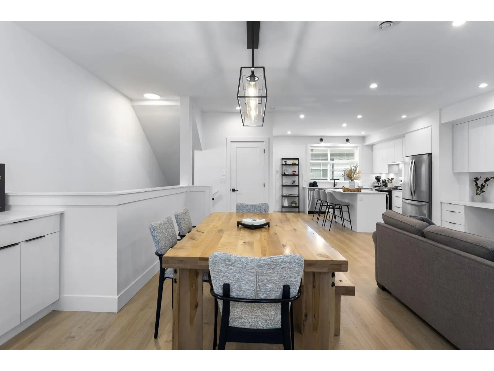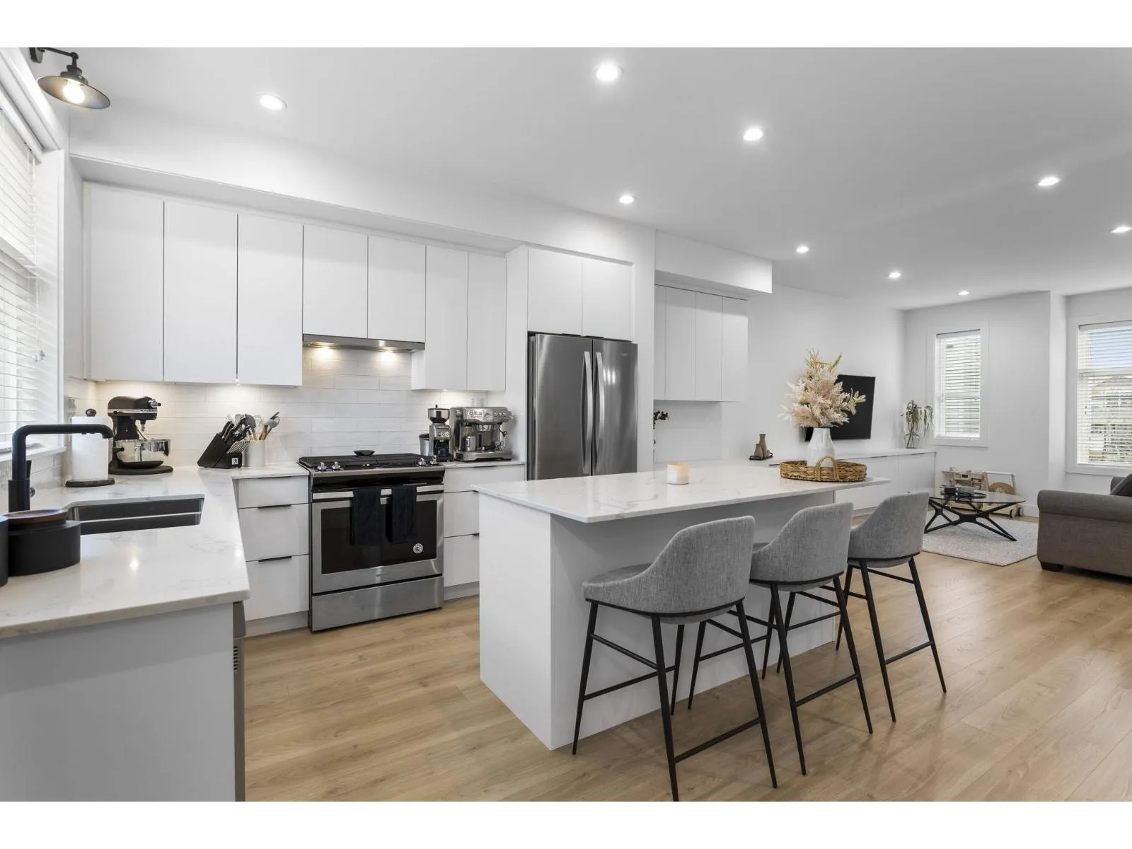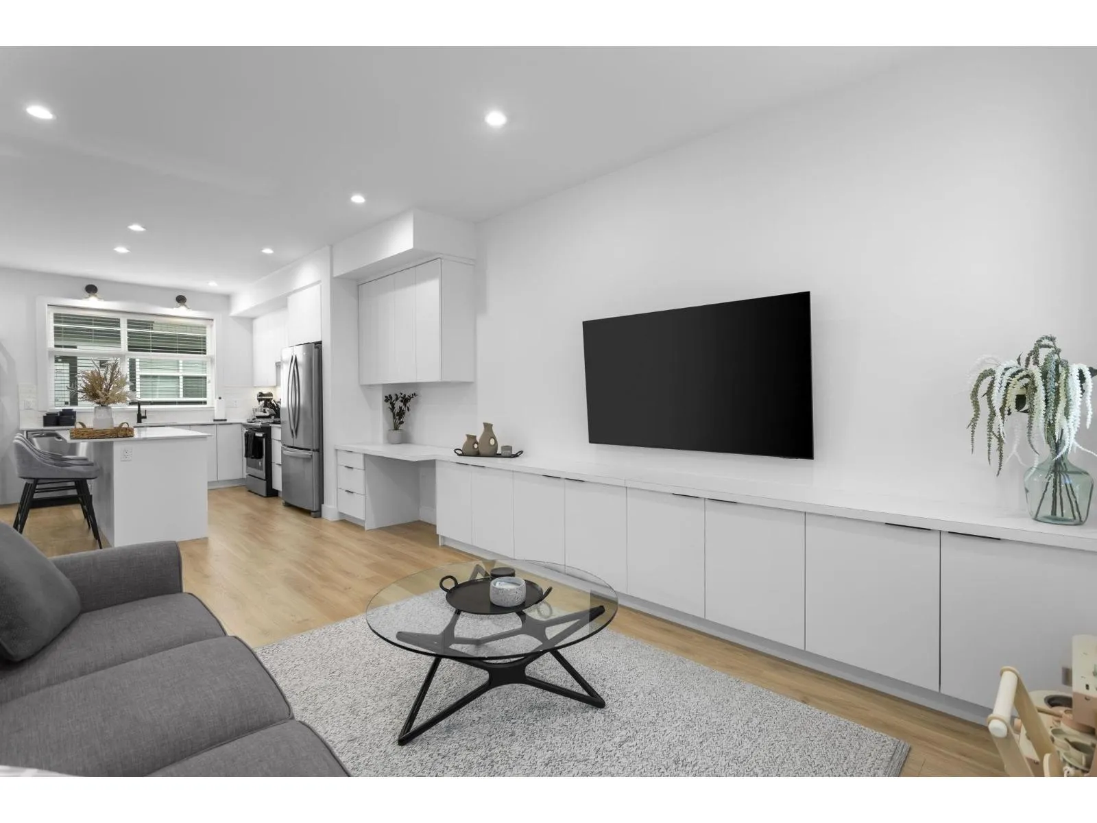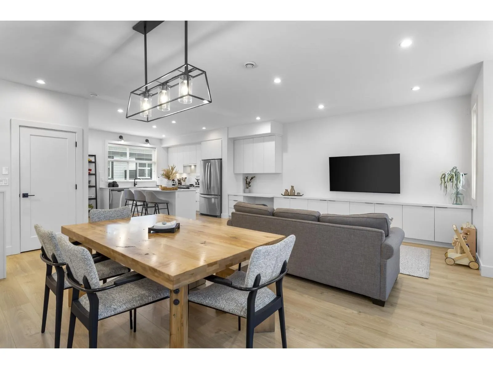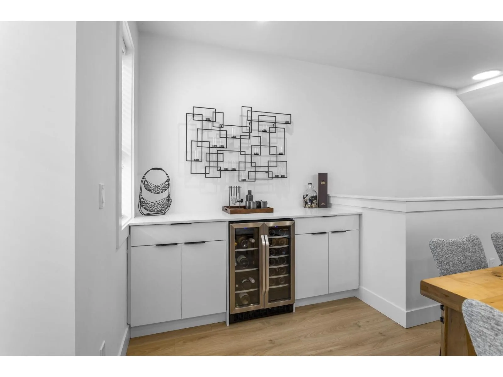 Welcome to Clayton Street - a modern, 2021-built townhome offering 1,861 sq. ft. of thoughtfully designed living space. The open-concept main level features a kitchen, dining, and living area, plus a custom bar with wine fridge and extensive built-ins. Step out from the kitchen to a deck perfect for BBQs and entertaining, with a large ground-level patio and fenced yard. Upstairs has 3 bedrooms, including a primary suite with stunning ensuite and walk-in closet. The large bonus room downstairs can serve as a fourth bedroom. Double side-by-side garage is roughed-in for EV charging. Part of an Energy Star-certified community with remainder of the 2-5-10 New Home Warranty, all near parks, shops, cafés, and schools. (id:27476)