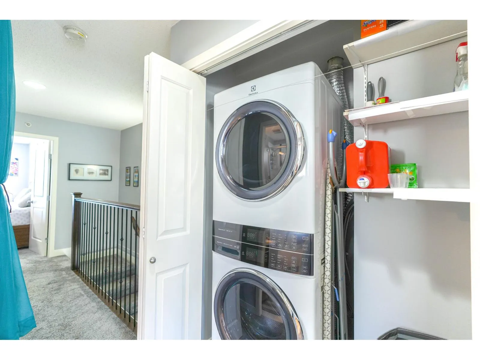 Welcome to Manhattan Skye, a Cape Cod-inspired townhome community bordering nature. This updated 3 bed, 3 bath home sits in one of the most private locations in the complex, next to visitor parking. Features include new carpet and laminate flooring, fresh paint, new light fixtures, new kitchen appliances, and a new laundry tower. Upstairs offers three spacious bedrooms, including a primary with ensuite. Enjoy a front balcony ideal for summer BBQs and access to a gym, games room, and party hall. Close to schools, Costco, Superstore, Home Depot, and more. Ideal for families or investors. Open house Feb 22nd 2pm-4pm (id:27476)