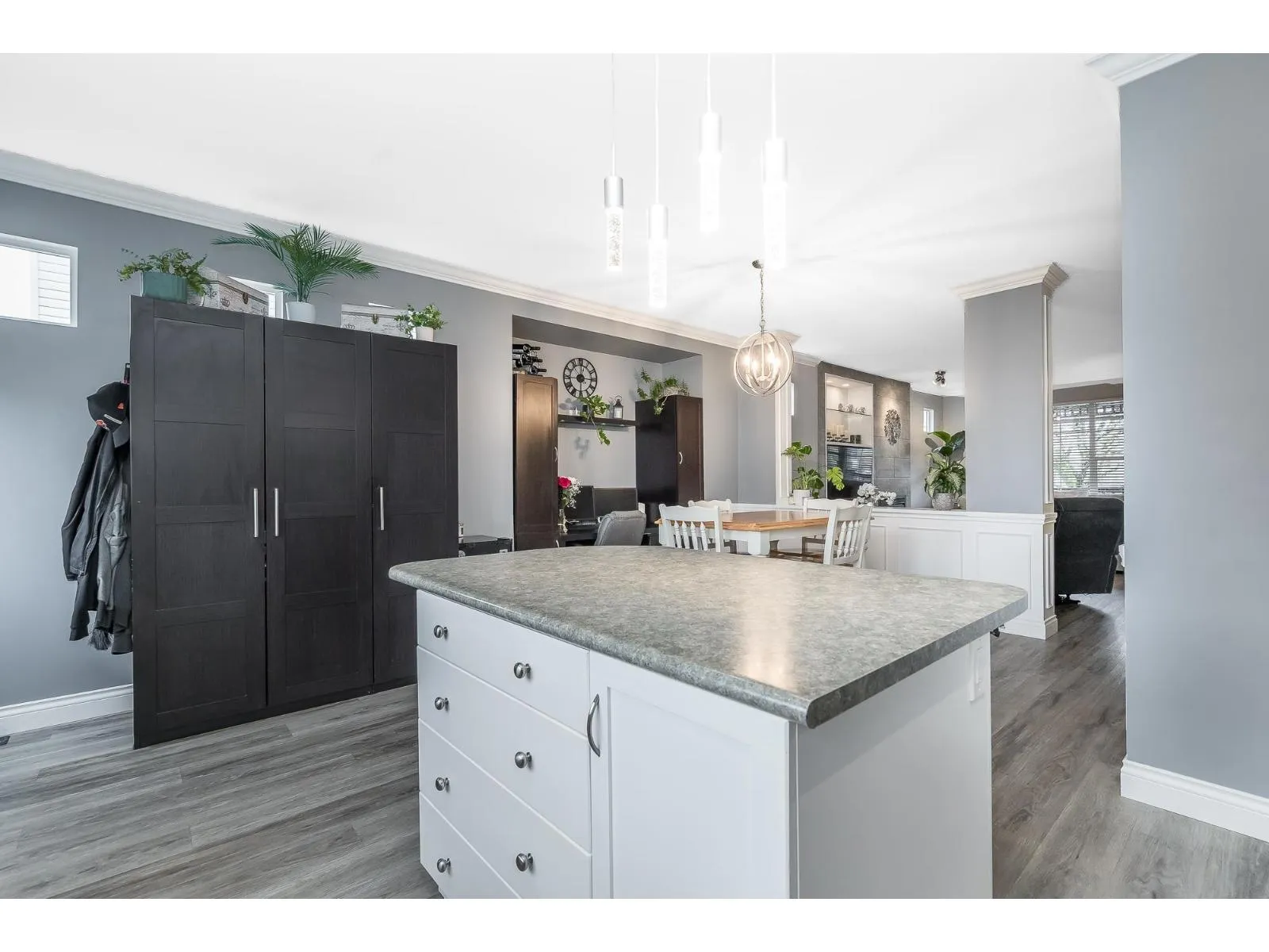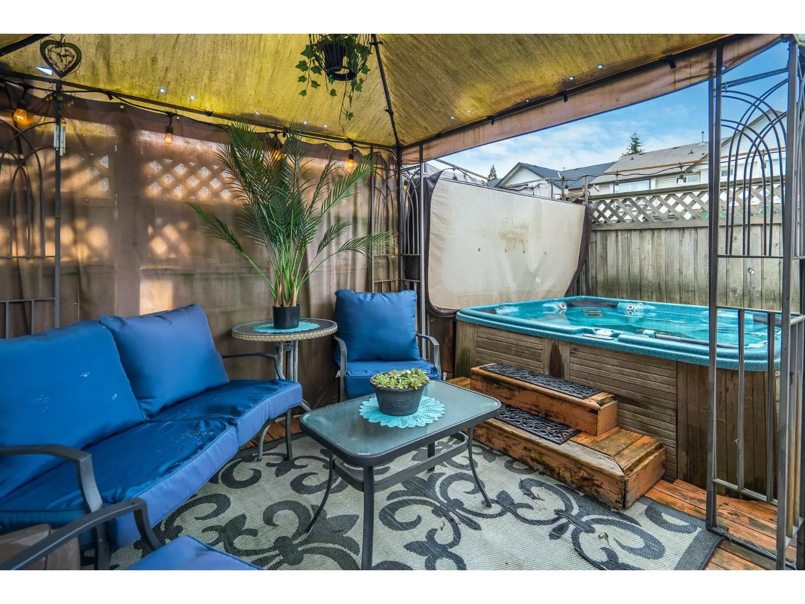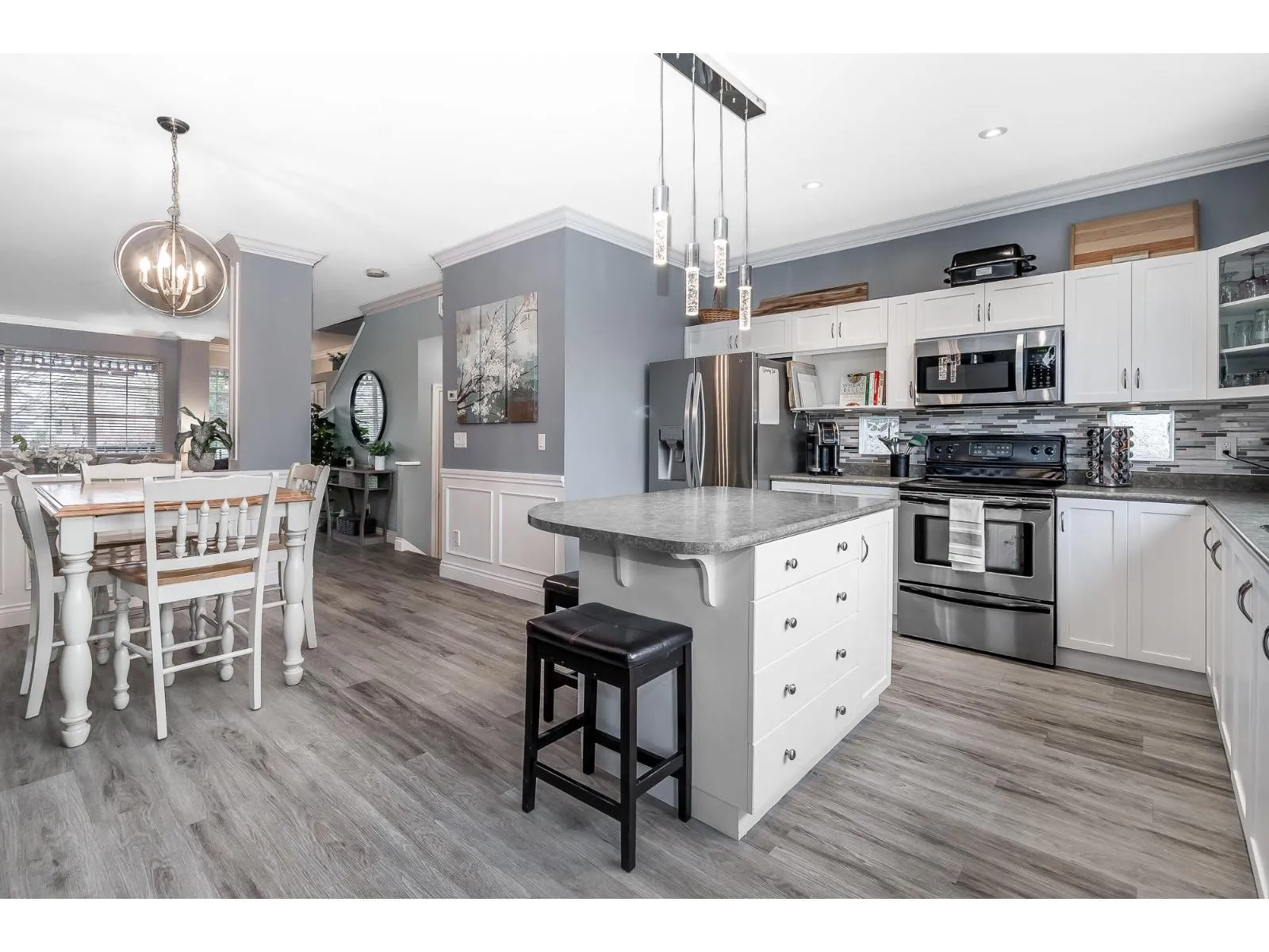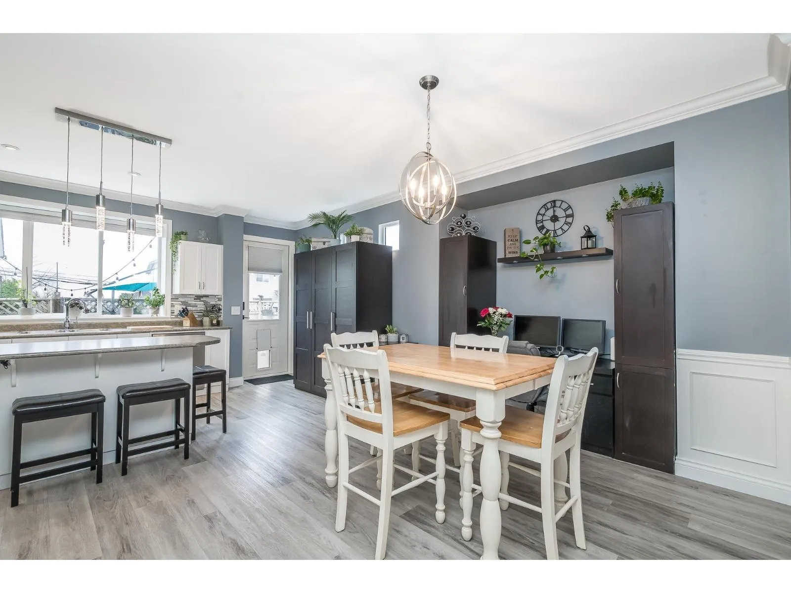 Beautifully updated home with wide plank vinyl flooring, custom millwork, wainscotting, baseboards, and trim. The open-concept main floor features a custom fireplace with designer surround and a bright white kitchen with island, mosaic tile backsplash, and stainless steel appliances. PEX plumbing (no Poly B), a newer roof, A/C, new lighting, fresh paint, and smooth ceilings with pot lights. Enjoy a large back deck with a hot tub, new landscaping rocks, turf, and a charming front porch for great curb appeal. Located across from a community park, perfect for kids, a 9 min. walk to the future skytrain station, and a 5 min walk to Hillcrest Elementary school. Rear lane parking with room to build a garage. (id:27476)