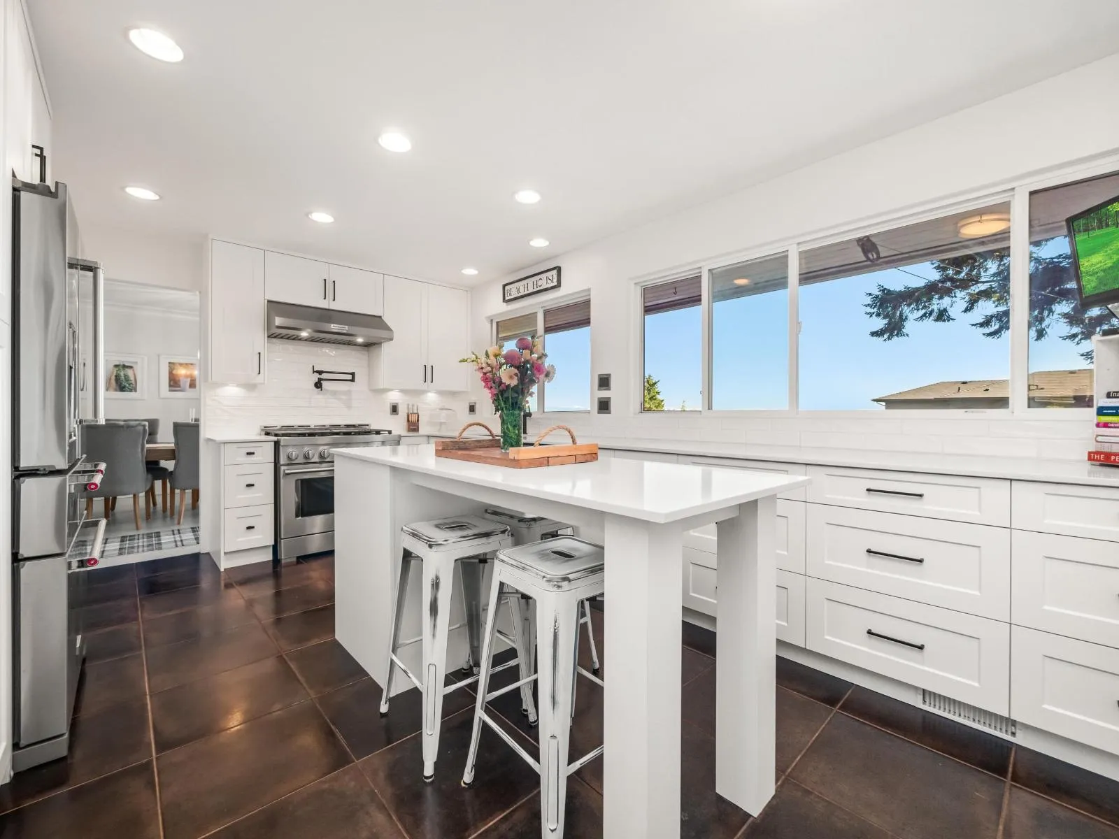 Pacific views greet you from the primary bedroom, kitchen, dining room, and sunlit upper deck where Kwomais Point sunsets become part of your daily rhythm. Positioned on nearly 11,000 sq.ft. in one of Ocean Park's most coveted enclaves, this fully renovated residence pairs coastal elegance with quiet authority. The 2021 interior transformation delivers a refined chef's kitchen with new cabinetry and appliances, reimagined bedrooms and spa-inspired baths with radiant in-floor heat, and new flooring throughout. Open, light-filled living spaces are designed for effortless entertaining, while the lower level offers a sophisticated bar and games lounge with flexible space for guests, work, or wellness. Moments to Ocean Park Village, Crescent Beach, and just minutes from White Rock's waterfront, this is coastal South Surrey at its finest-where everyday living feels like a getaway, and long-term value rests quietly beneath it all. Elevated. Effortless. Enduring. (id:27476)