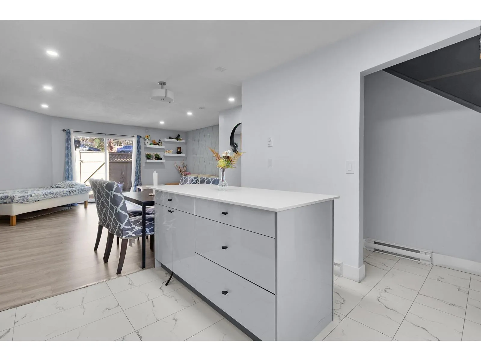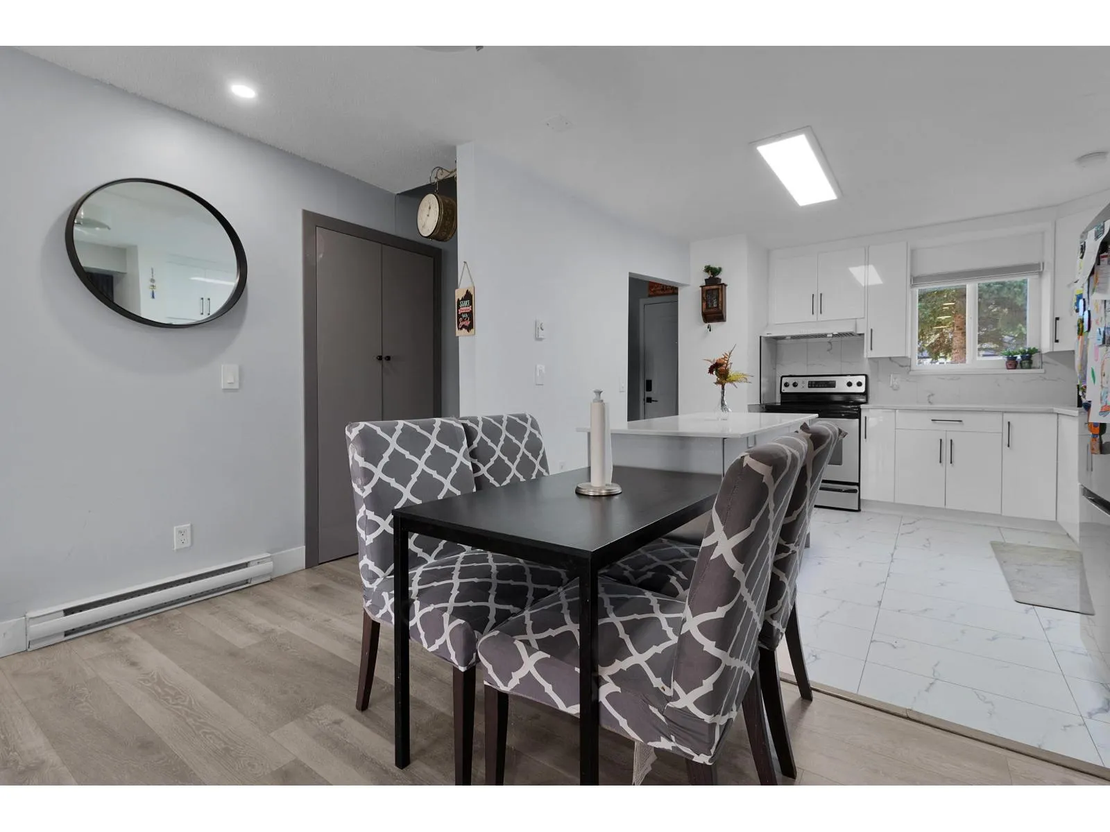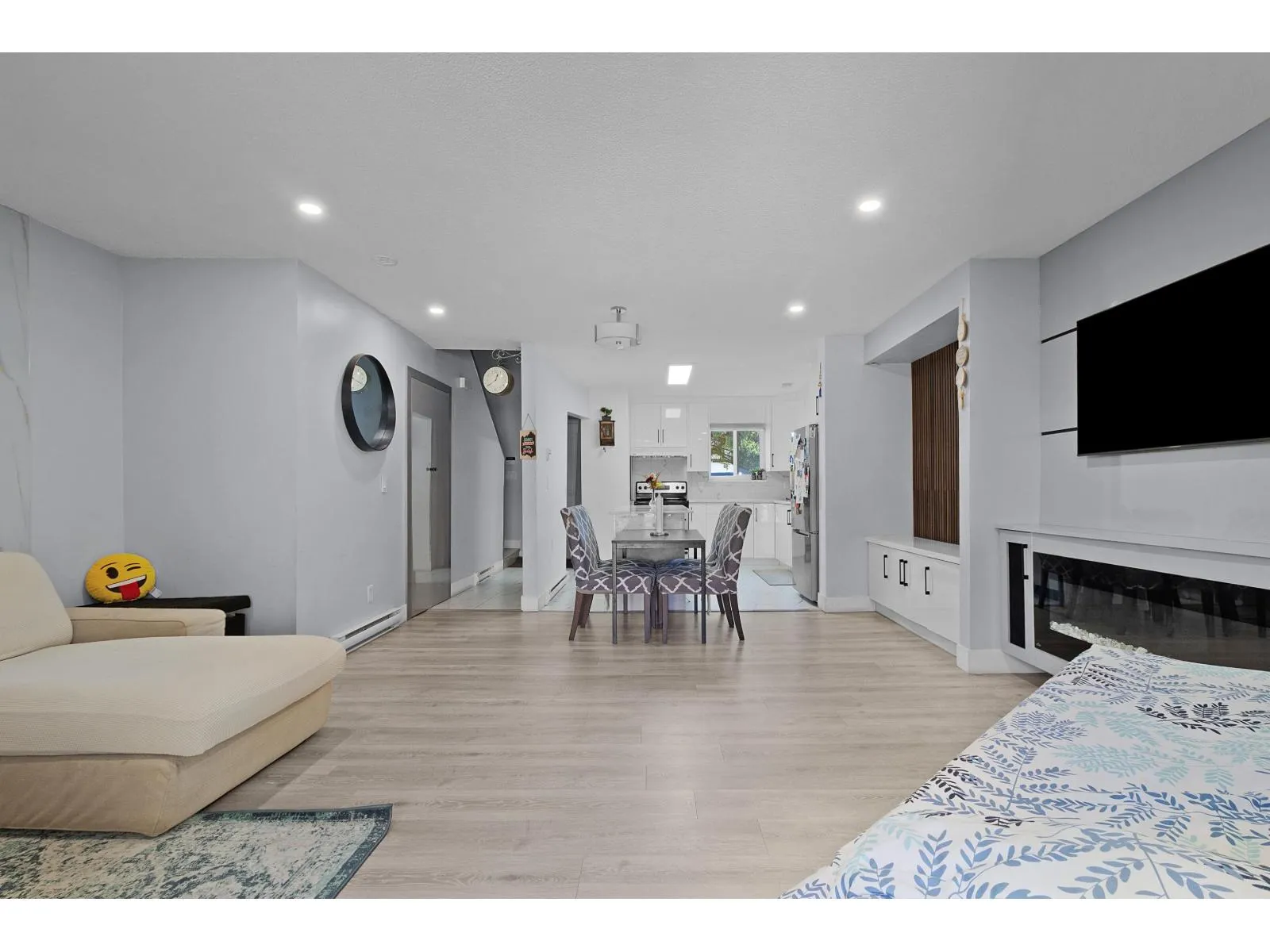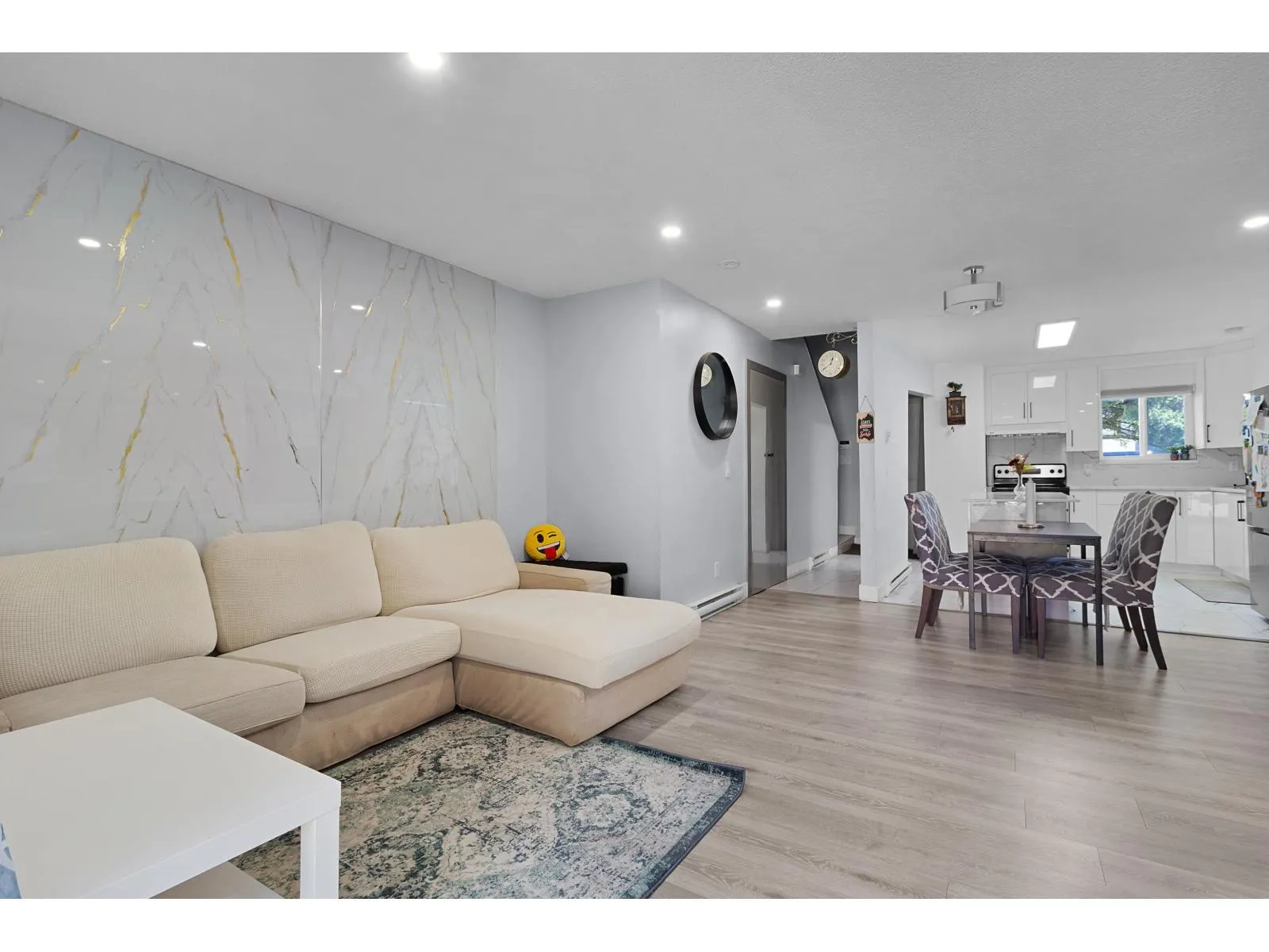 A corner unit townhome with three bedrooms has been recently renovated in a wonderful neighborhood complex. The entire floors have been replaced with new laminated flooring, the kitchen cabinets are updated, and new fixtures in the bathroom. A newer deck/patio has also been added, ideal for hosting summer BBQs. The kitchen is quite spacious and there are plenty of cupboards for storage. (id:27476)