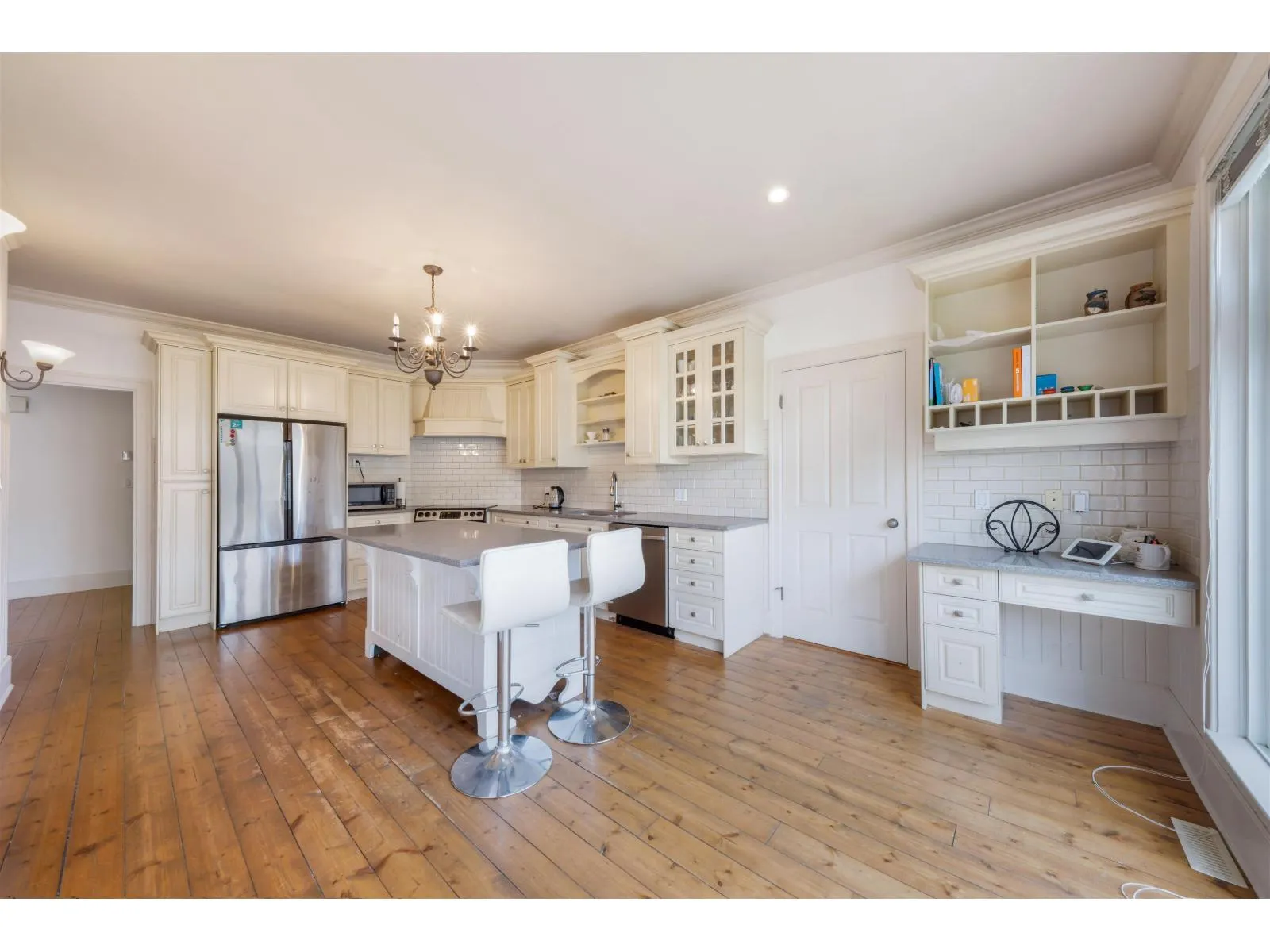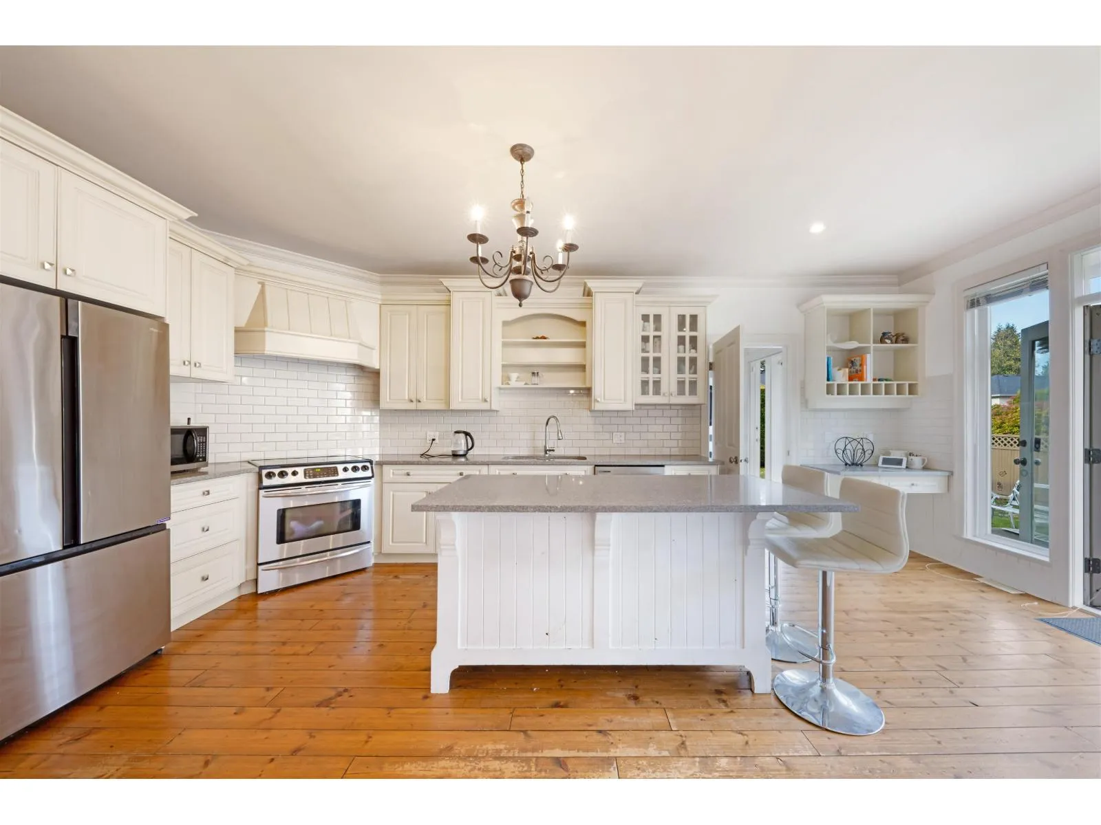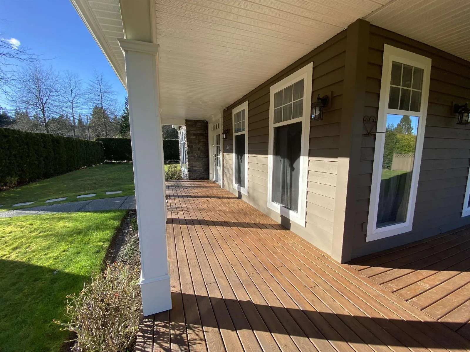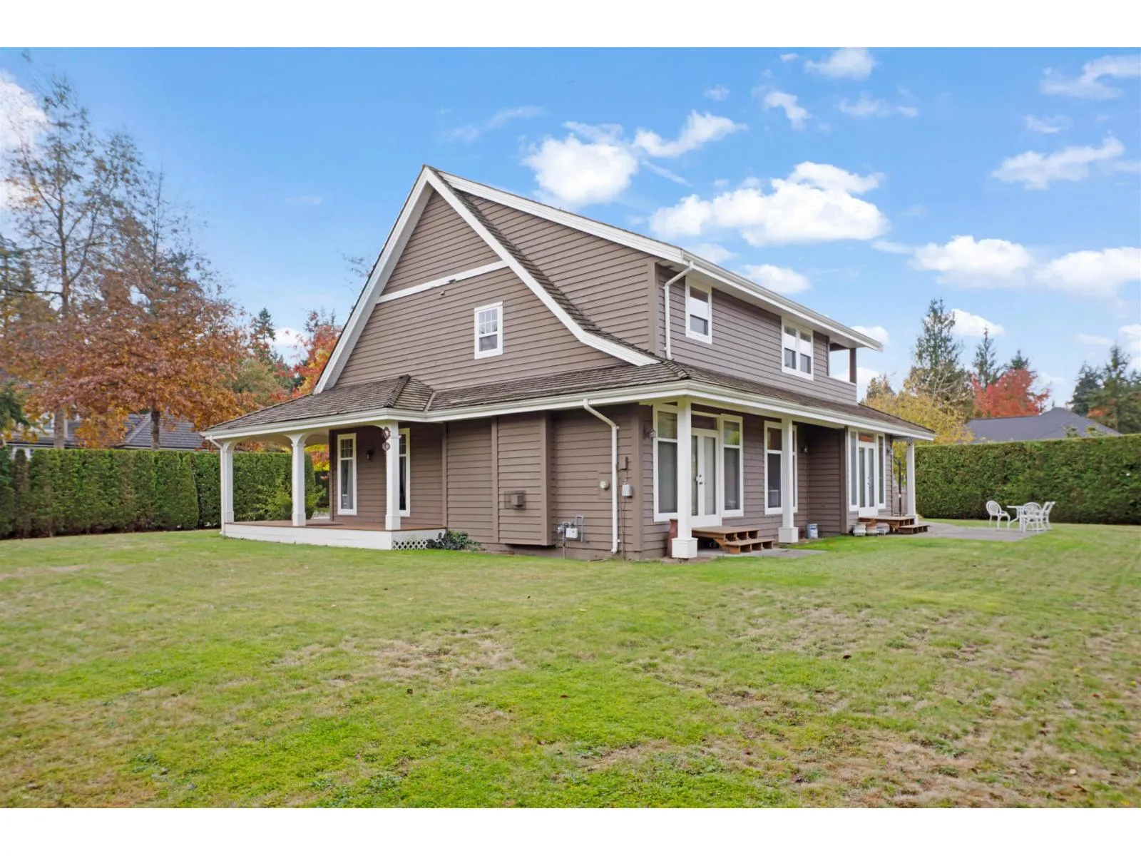 2 Level bright house on flat corner lot 13,990 sf. Oak cabinet kitchen, granite counter top with island, separate 2 yr wok kitchen, 10' vaulted ceiling, stainless appliances, 2 yr washer & dryer. Pine wood flooring, stylish & elegant ceiling with molding, grant stone fireplace in family room. Primary bedroom with balcony, walk in closets, 5 piece bathroom. All 3 bedrooms & game room face south each with storage. Semi suite bedroom on main. Cedar siding with wrap around covered porch approx. 369 sf. New fence & new sundeck approx. 384 sf. New stone steps around house. Double garage. Close to Chantrell Greek Elementary and Elgin Secondary School. Close to golf course, breaches and shopping centre. No for sale sign. Meas. approx. Open Sat. April 4, 2-4 pm, Sun. April 5, 2-4 pm. (id:27476)