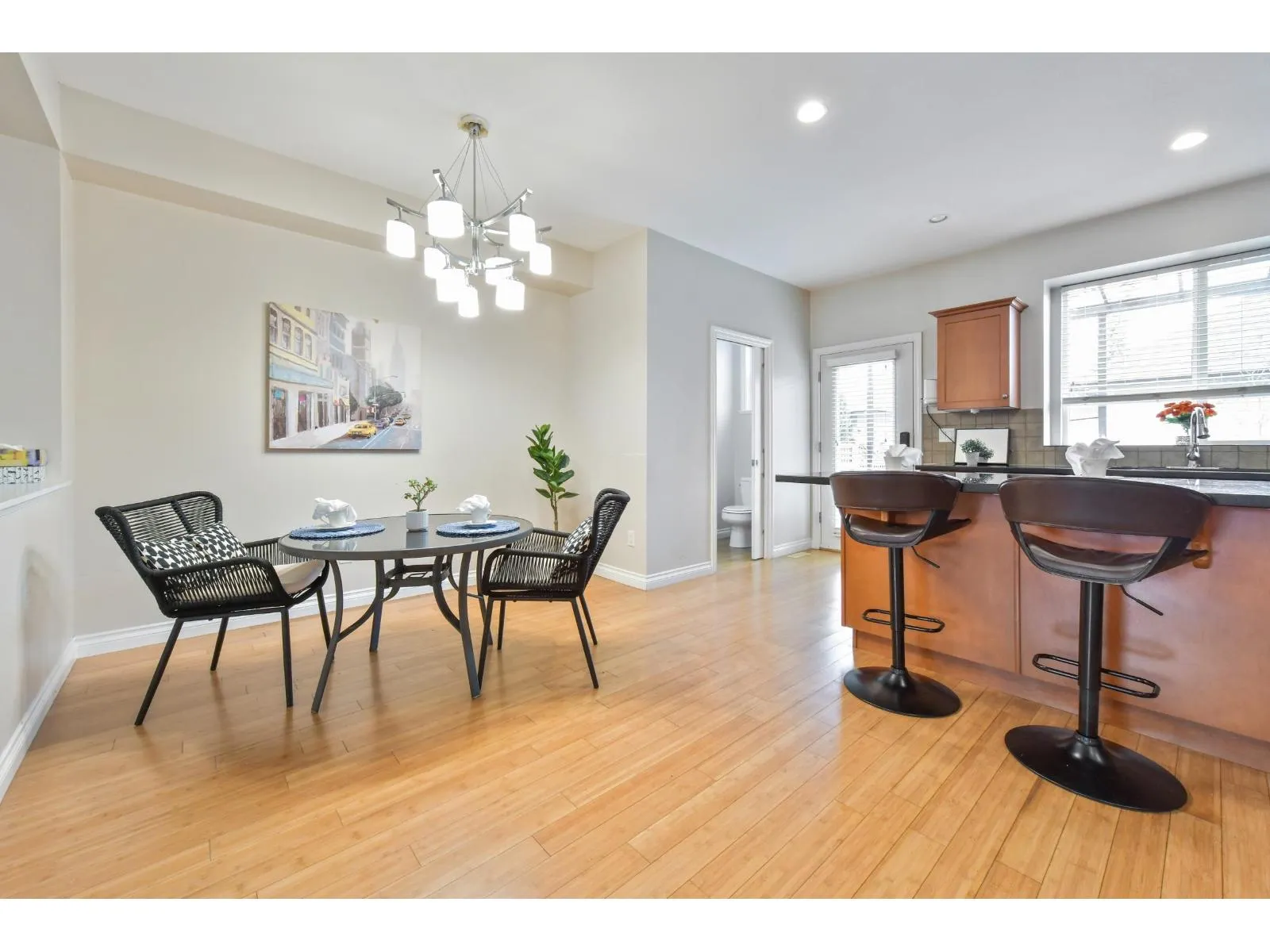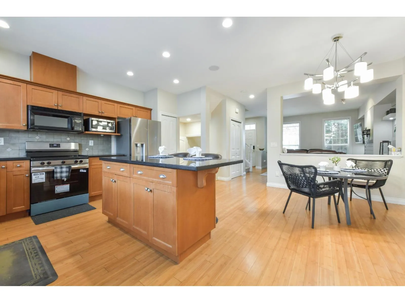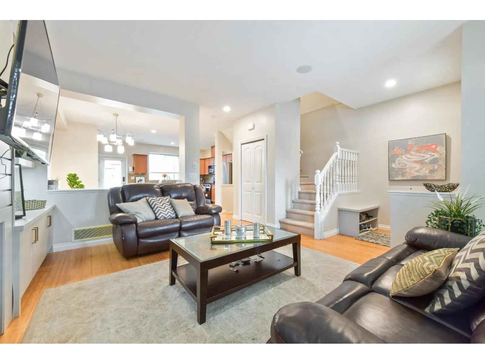 NO STRATA FEE end unit Row-Home with detached garage and carport with E.V. Charger. 4 bedrooms and 4 bathrooms. Main floor is great room style with large kitchen island. Large covered patio off kitchen. 3 large bedrooms up. Primary bedroom has walkin closet and ensuite. 1bedroom in basement with full bathroom plus recreation room. All newer appliances. New efficient heat pump and air conditioning. Highly sought after area and walking distance to new SKYTRAIN station. Large park across the street ample street parking. Only blocks to the mall. Great family home or investment.Open House Sunday the 22nd 2 to 4 (id:27476)