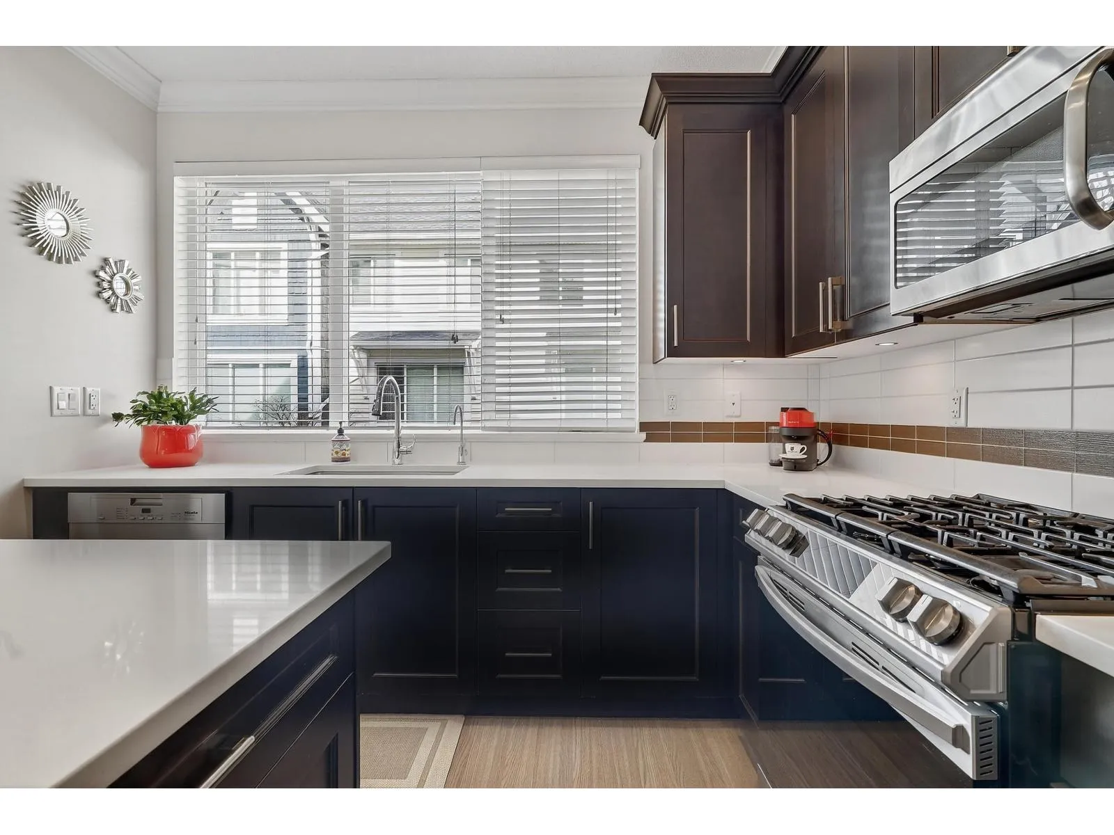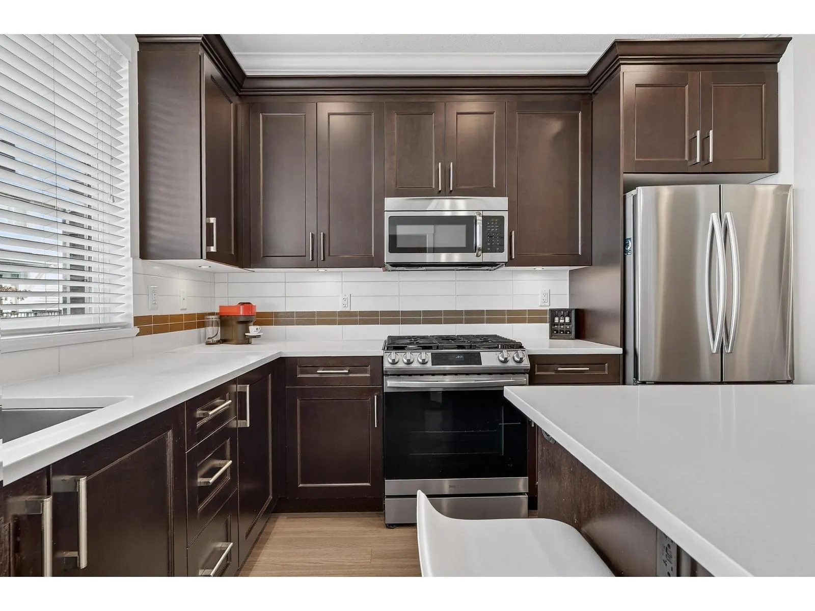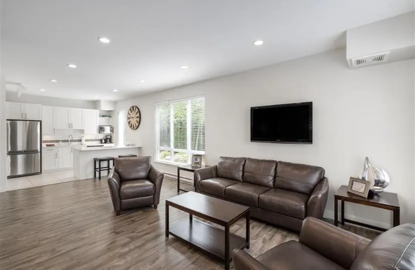 Quality built 3 bed 3 bath townhome at NICHE, A beautiful collection of wonderfully constructed townhomes in one of the best pockets of South Surrey! Functional layout on the main floor - Living room features beautiful built-in cabinetry, built-in fireplace/entertainment unit. Kitchen complete with rich shaker cabinetry, island + Pantry, Quartz countertops & S/S appliances incl. Gas Range. Main floor powder room and Large South facing deck w/ natural gas bbq hook-up to relax & enjoy the outdoors. 3 spacious bedrooms up incl. primary w/4 pc ensuite, laundry & additional full bath. Private fenced South facing rear yard, great for kids & dogs along with a PROTECTED GREEN BELT to the North. Quiet location steps to Morgan Crossing, dining, parks and Sunnyside and Grandview school catchments. (id:27476)