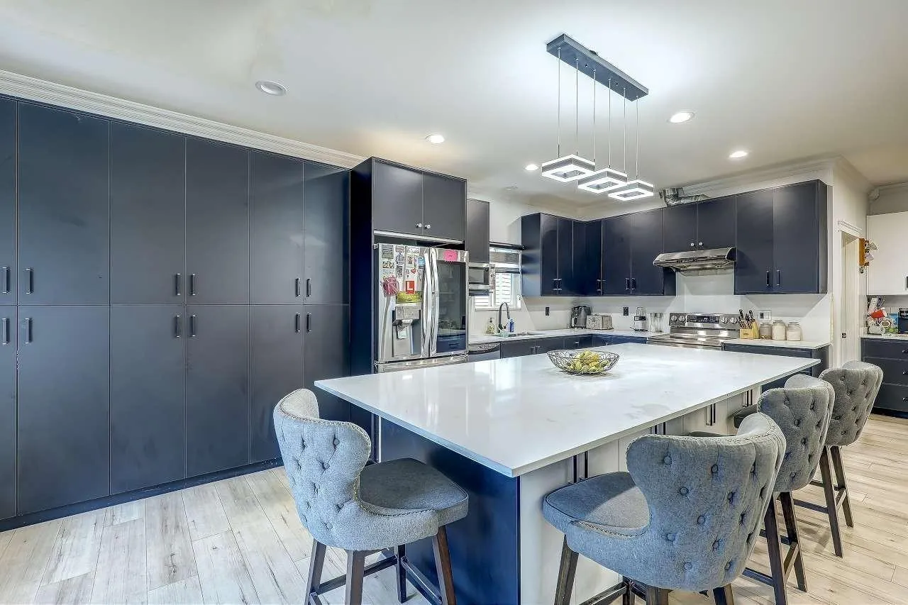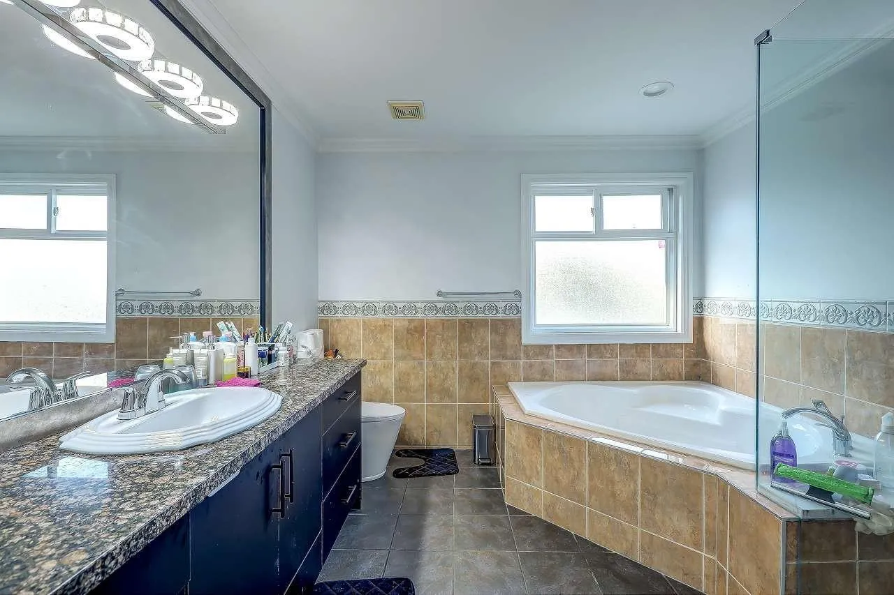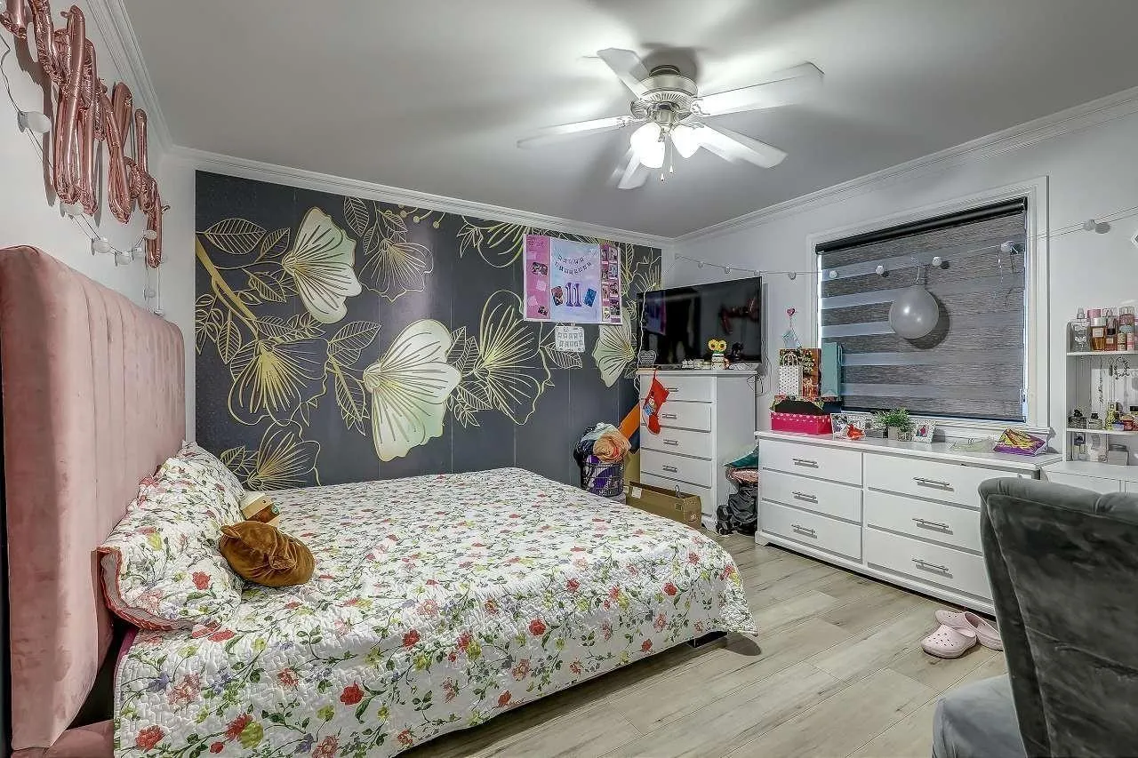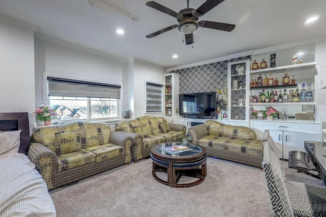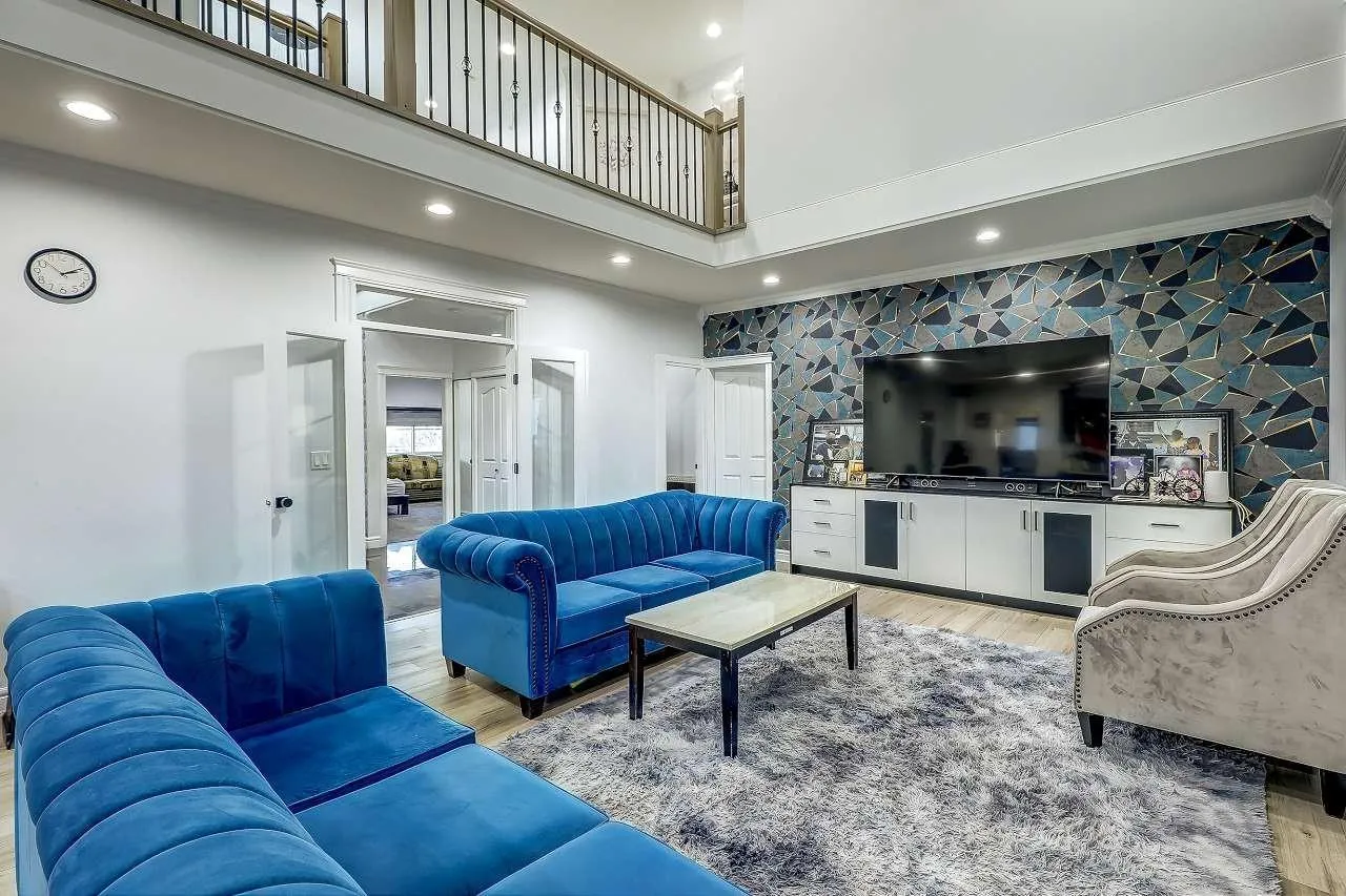 Discover this grand 3-level residence in desirable East Newton. This expansive home offers over 5,600 sq. ft. of living space on a 7,427 sq. ft. lot, featuring 9 bedrooms and 7 bathrooms. The main floor impresses with soaring ceilings and oversized windows in the family room, plus a secondary primary suite. Upstairs, find 4 spacious bedrooms with beautiful valley views. The fully finished walk-out basement includes two self-contained 2-bedroom suites, perfect for extended family or as mortgage helpers. Quality features include hot water radiant heating and a durable tile roof. Ample parking for work vehicles or commercial vans with rear lane access. Located near schools, shopping, and golf, plus easy access to highways and transit. (id:27476)