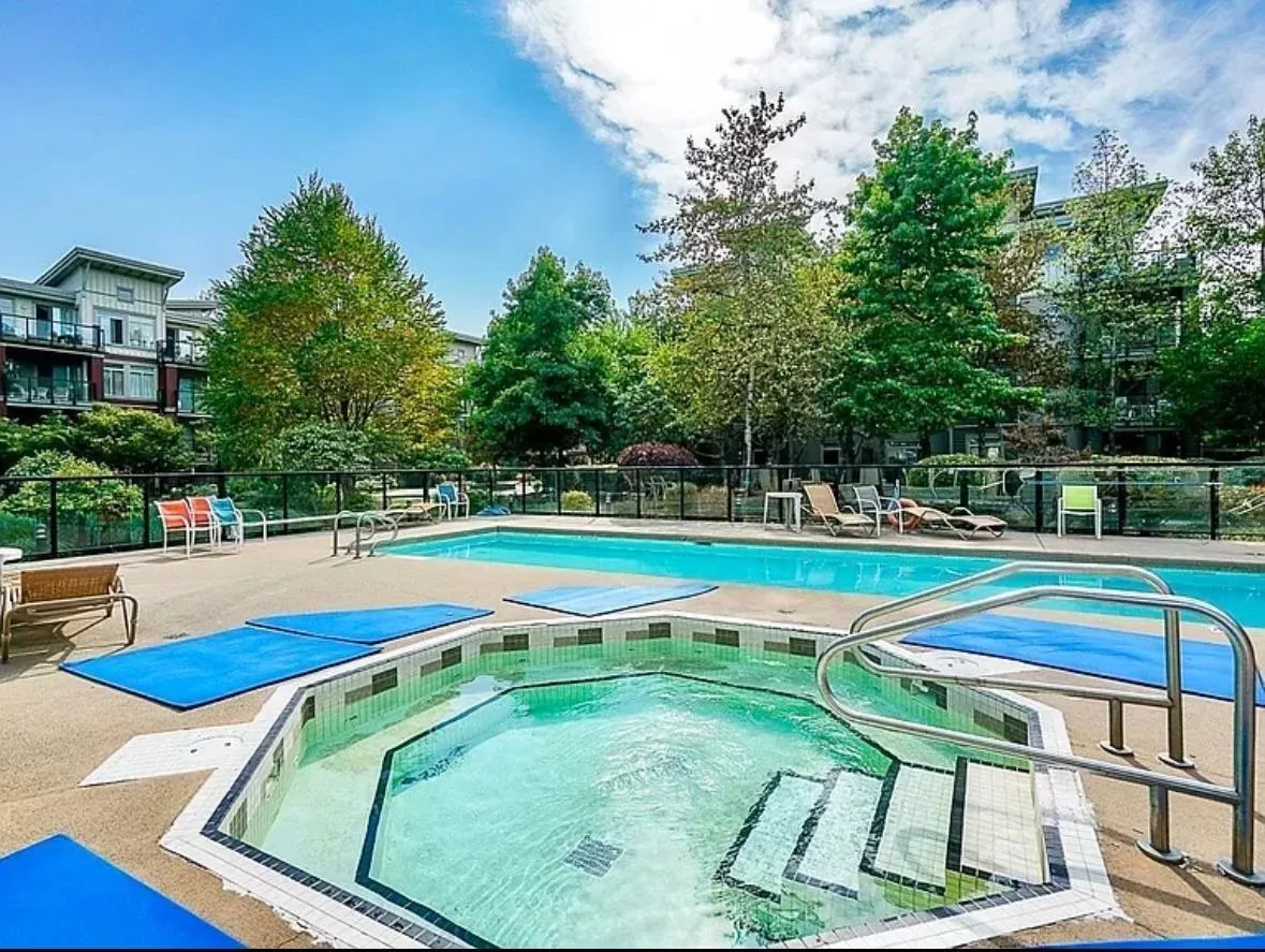 Spacious and beautifully updated 1,158 sq.ft 3 bed,2 bath home in sought-after Charlton Park in Guilford Surrey.Functional layout with 2 beds on opposite sides for privacy, both with walk-in closets and ensuites, plus a versatile 3rd bed ideal as office/den. Upgrades include wood flooring throughout (no carpet), fresh paint, LED lighting, new hot water tank, new kitchen hood fan, built-in sink soap dispenser, new bathroom exhaust fans and added custom closet. Enjoy a large in-suite storage room and a generous 144 sq.ft. covered balcony accessible from the living room . Resort-style amenities include clubhouse, gym, outdoor pool, hot tub and sauna. Comes with 2 parking/ 1 locker. Prime Guildford location steps to Guildford Mall, Superstore, Walmart, transit, schools, Highway 1. (id:27476)