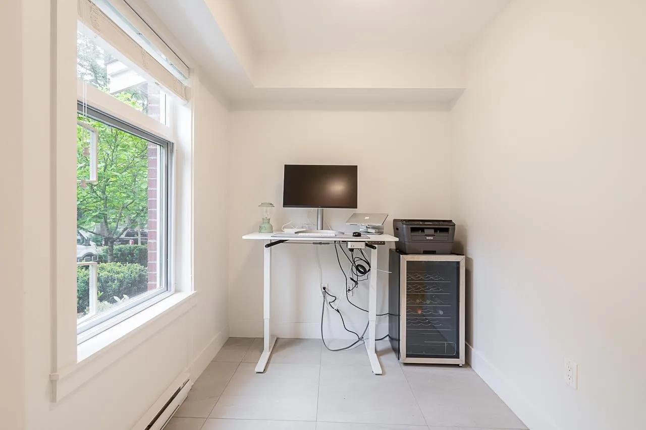 Beautiful townhome by quality builder QUALICO "Canopy at the tynehead park". Nestled within single family homes with link to the park with trail access points including a new multi-use path running through the center of the community. This two bedroom plus den townhome features high-end Whirlpool S/S appliances, gas range and gas hook up on balcony, white quartz counters, soft close cabinets, den and extra powder room on lower level and much more. Quick access to Highway 1, Guildford Town Centre, and short walking distance to both levels of schools. (id:27476)