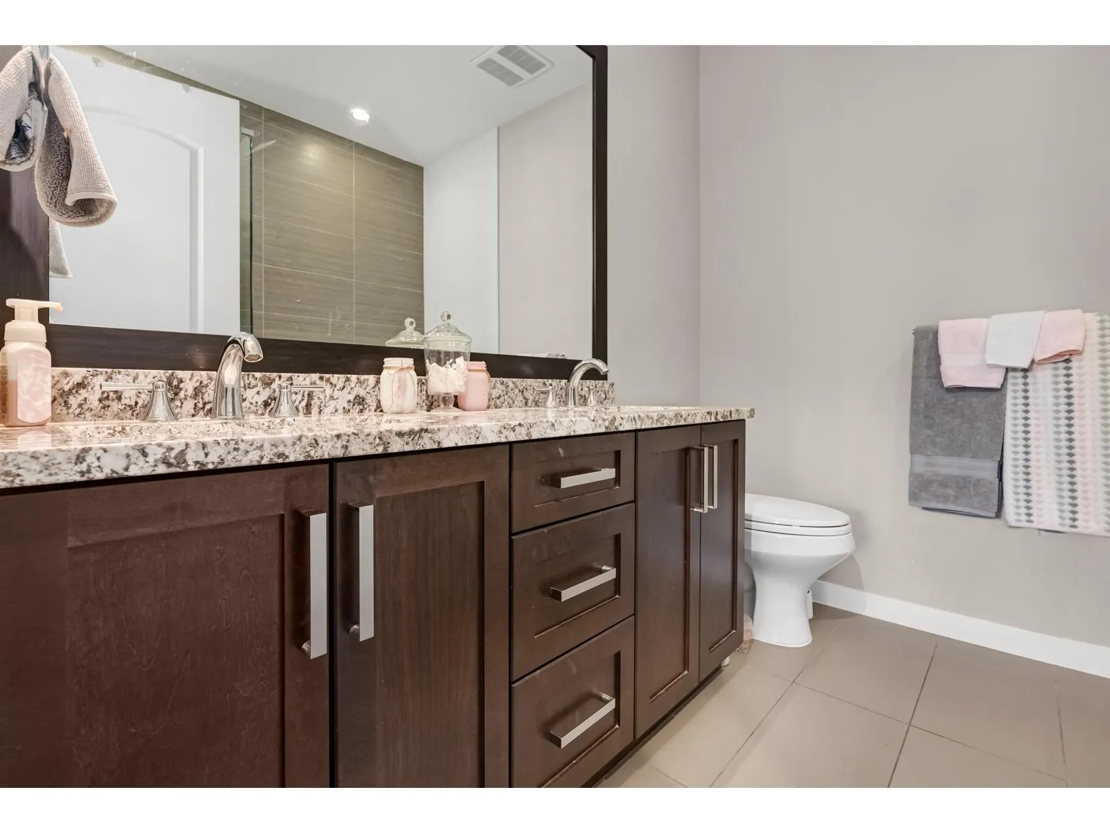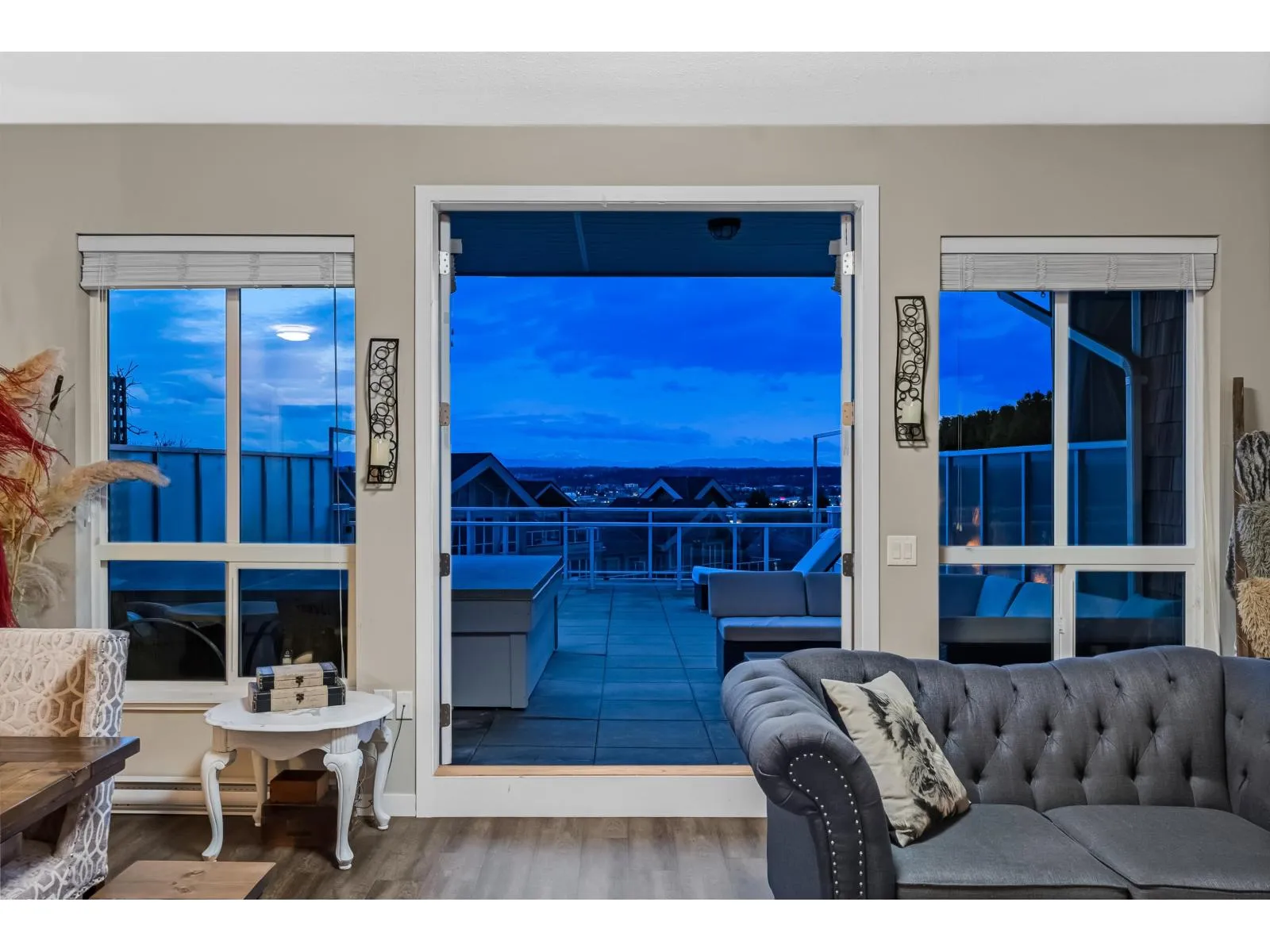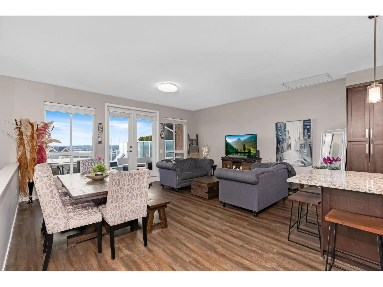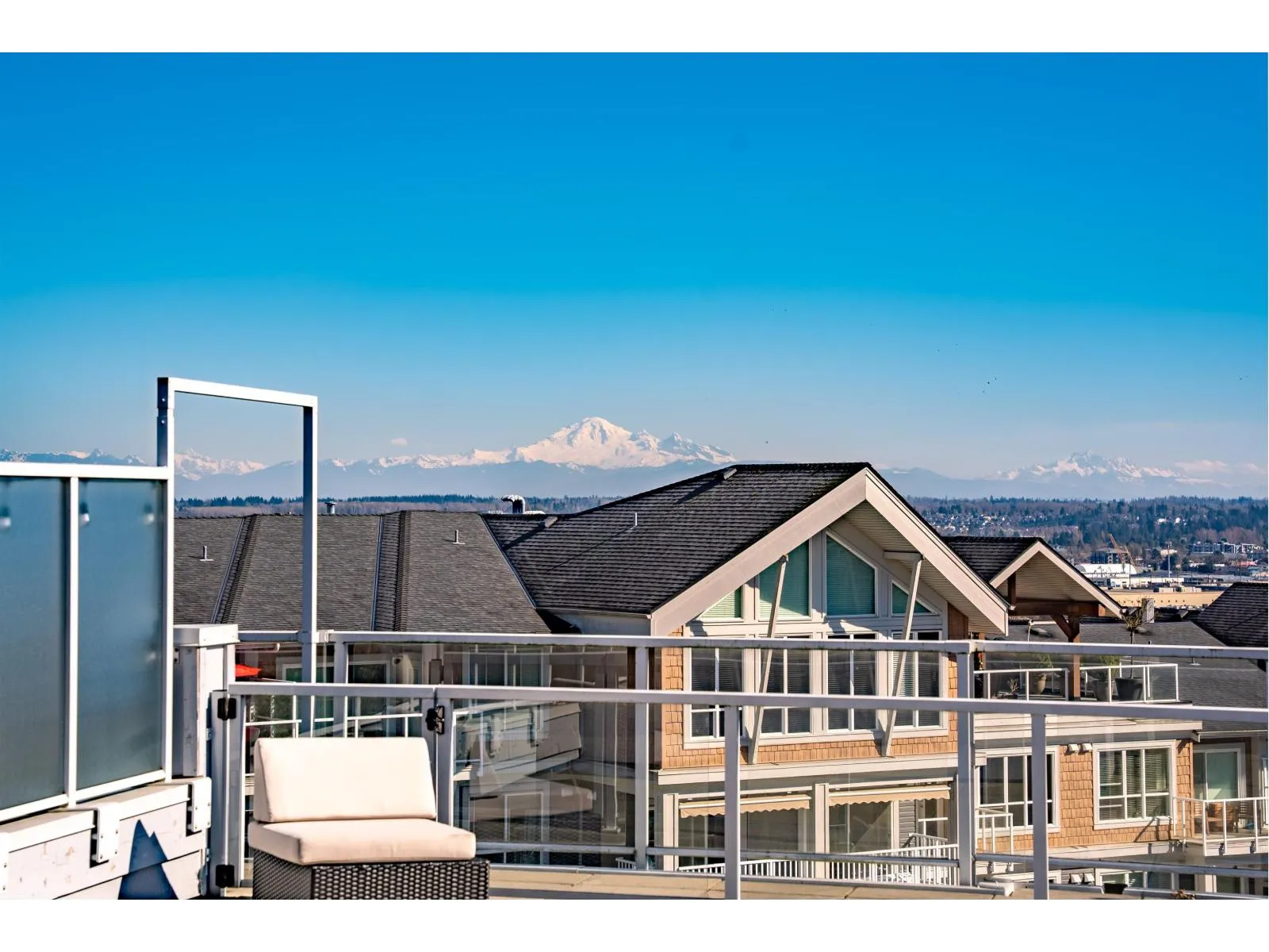 LUXURY LIVING IN WATERSTONES TOP FLOOR; 2 LEVEL-LIVING w/stairs. PENTHOUSE!THIS HOME IS A MUST SEE;FEATURING YOUR SPACIOUS 800 SQFT top floor patio w/unobstructed Panoramic views of Mt Baker and city lights! Entertain your guests in your open concept kitchen w/ large island, breakfast bar and 5 S/S appliances incl. your built in BONUS wine fridge, swirled Granite counters throughout and so much more! Unlock your French doors to your generous sized private roof top deck. Lower floor features spacious master w/ 2 closets, 5 pcensuite and 2nd balcony on the opposite side of the building facing green space. Full four pce bath as well for 2nd Bdrm and heated tile floors in both baths,. 10ftceilings, dark laminate flooring, large Foyer and full size W/D. This home will not last long! Call today! (id:27476)