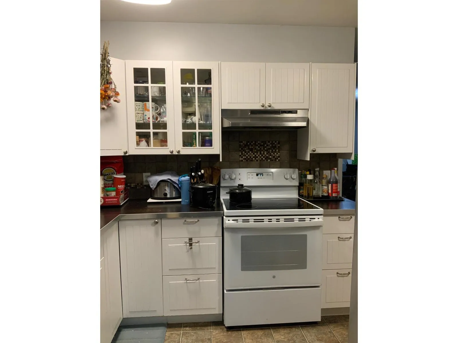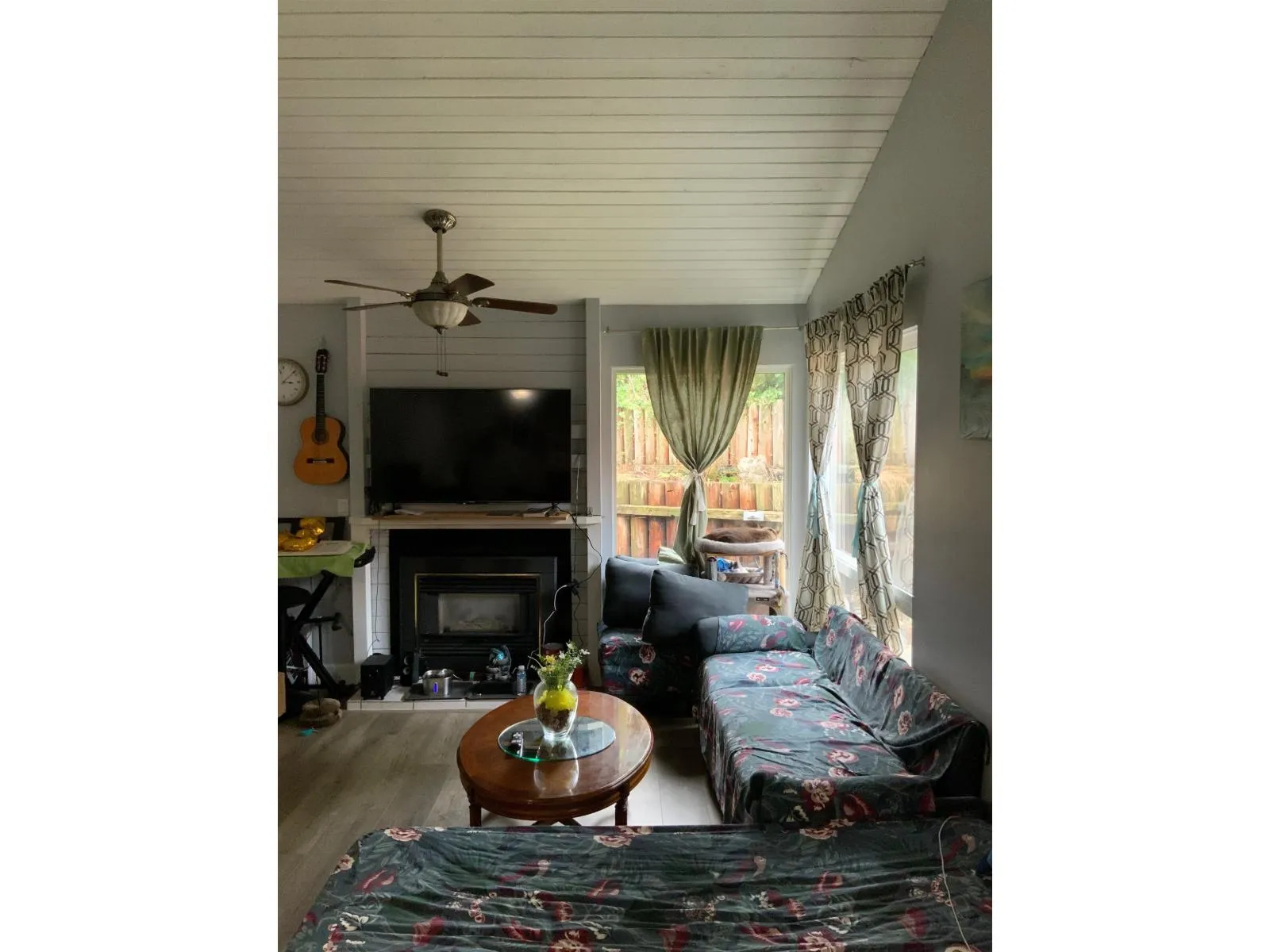 Duplex style townhouse of popular Greenside Estates. Quick access to everything. Walking distance from schools, restaurants, shopping, transit and future sky train station. Family orientated complex has swimming pool, basketball court, Large amenities building with renovated gym. Plenty of greenspace around. Private parklike setting with private backyard includes 22' x 13'6" patio surrounded with flowers, grass and trees. Whole complex updated including siding, windows and roof. This home have many updates over the years including kitchen, bathroom and appliances. Installed laminate floor, change boiler and stove in 2025. Gas fireplace to keep you cozy. 2 pets are allowed, any size. Large laundry room with storage area. 2 parking spots. (id:27476)