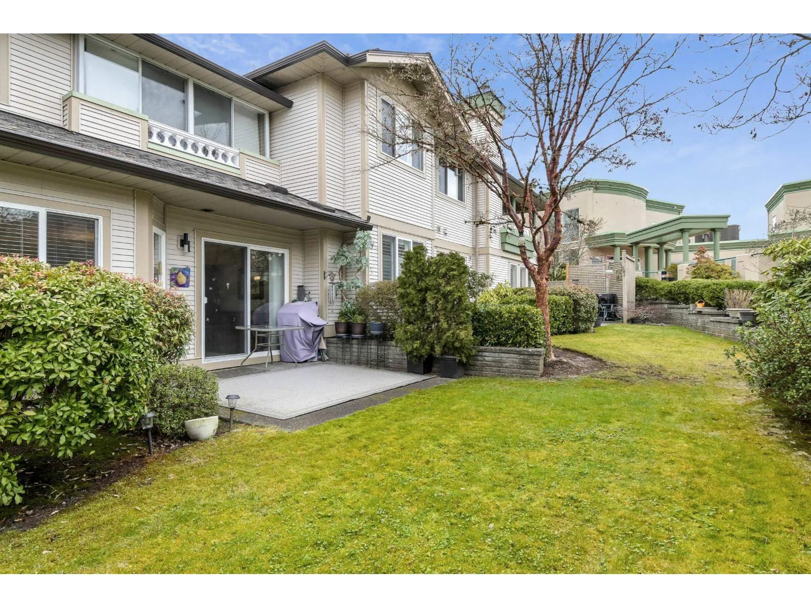 RARELY AVAILABLE IN CHELSEA GARDENS! This Main level unit is in a PRIME location inside the complex, backing onto a water feature & beautiful landscaping which provides privacy most units do not have. Just steps off your private patio is the clubhouse & pool/hot tub! Enjoy over 1550sqft on a single floor, an updated kitchen with stainless steel appliances, an open living/dining area, 2 bedrooms including a large master bedroom with a 5-peice ensuite. Nearby, you can easily find shopping, dining, parks, gyms & more thanks to the central location. Other amenities in Chelsea Gardens are RV parking, woodworking shop, exercise room, pub room & party rooms. This unit is turn-key and a must see! (id:27476)