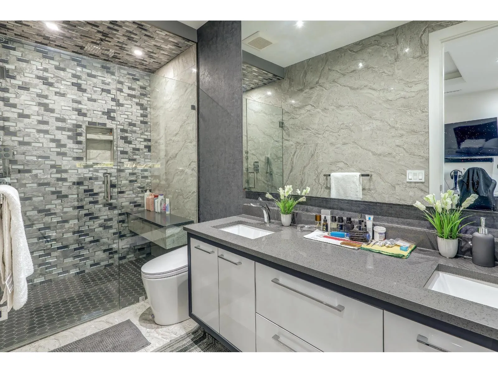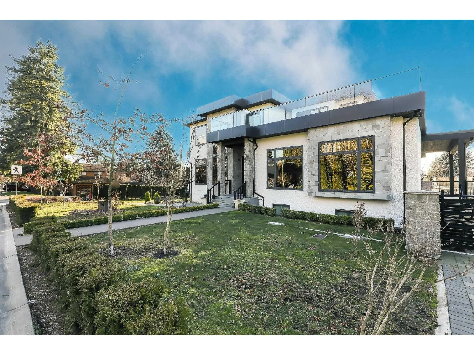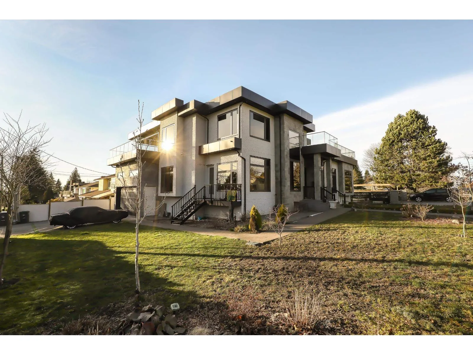 Custom, Mega 2021 built beautiful home nestled in Cloverdale. Total of 9 Bdrm + 9 Bath, over 6,200 sq.ft covered area on huge 9,429 sq.ft (78'x121') fenced yard. Main floor offers, Open Foyer Entry w/ custom Entrance door, Gourmet Kitchen, Spice (Wok) Kitchen, Family rm, Living rm, CORNER LOT, D.Garage with 2 way,10 car parking, 1 Bdrm Guest/in-law Suite w/full bath (separate entry & rented), 2pc powder bath, Laundry & Sundeck. Above floor has 4 Large Bdrms + 4 ensuites with Balconies. Downstairs has, Theatre room, Bar, Sauna rm, full bath and (2+2) walkout-mortgage helper rental suites. High Quality lighting & plumbing fixtures, S/S Appliances, A/C, HRV, Radiant heat, quality cabinetry, Granite countertops. Walk to secondary Lord Tweedmuir Secondary, Bus, Parks, Shops & all major routes. (id:27476)