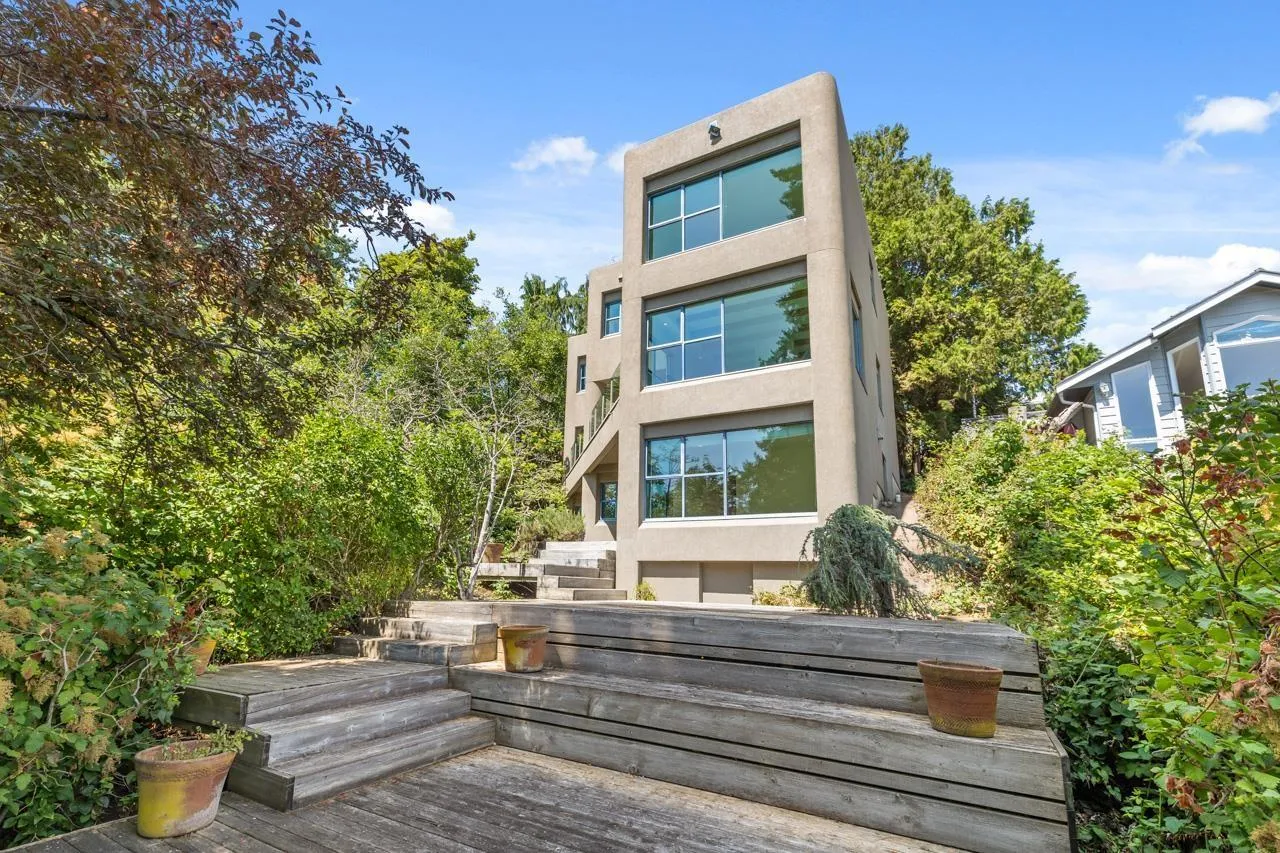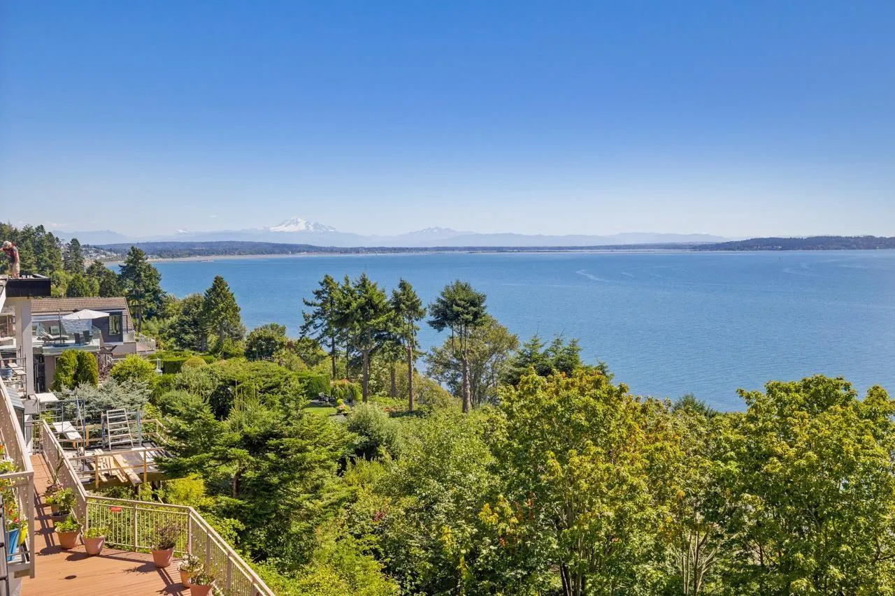 Renowned local and Vancouver Architect " Mark Ankenman" designed and built this home for their own personal use. Situated on the BLUFF, Ocean Park, quiet setting with great ocean views and privacy from a City Parkland. This home was over Engineered, built to high quality standards and still to today sits on this Bluff lot - is solid and has great bones. Awaits some one to update and make it a spectacular residence again. Ideal home for families or a Professional couple, bedrooms that are split with the Primary on the top and additional rooms on lower level. In floor radiant heating, open concept floor plan and some bonus storage are under the suspended driveway slab. Stairs down to the beach area and ocean, right beside the home by way of a City Park - perfect Beach lifestyle offered. (id:27476)