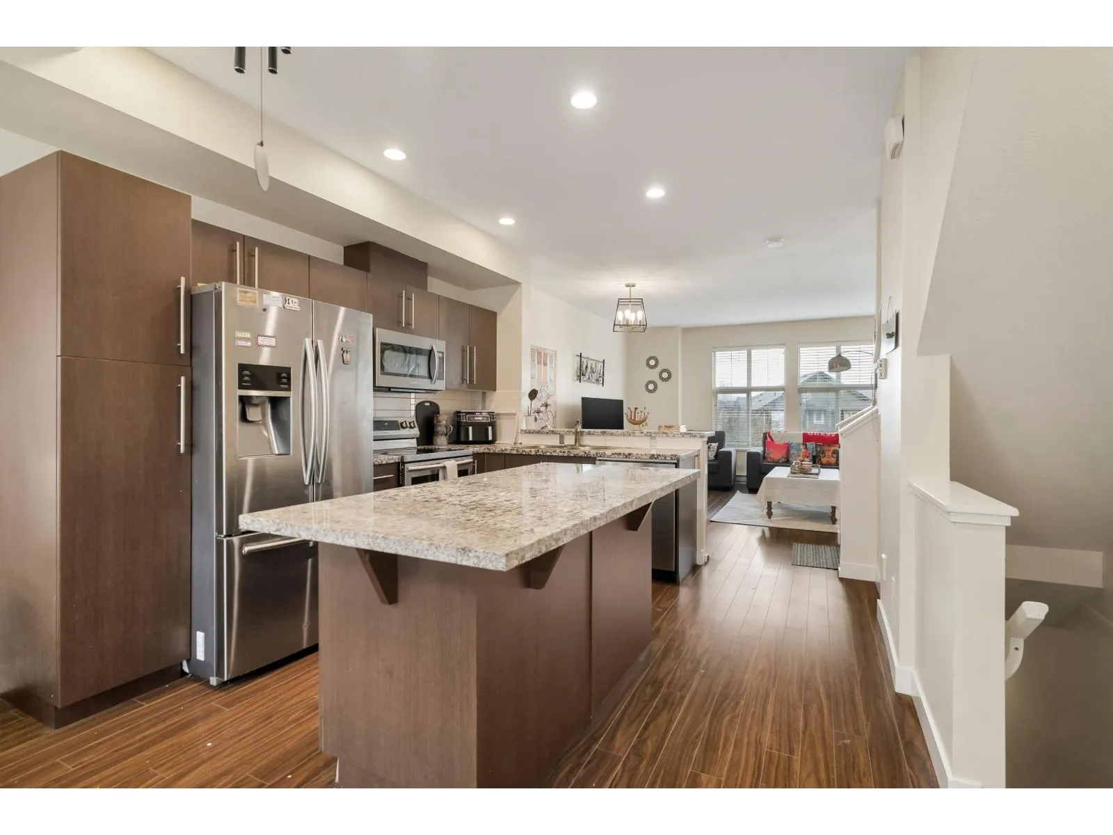 Augusta Walk at the top of Provinceton!! Bright & spacious townhome with 3 bedroom & 3 bathrooms. Fairly new paint & flooring, hot water tank (2022). Home features wide plank dark laminate flooring, granite countertops, stainless steel appliances, 9ft ceilings, built in vacuum plus more. Bright wide-open concept on main floor with large family room. Great location in Provinceton with easy access to highway and close to schools. Walking distance to proposed new skytrain coming down Fraser Hwy!! OPEN HOUSE: SAT (MARCH 7) & SUN (MARCH 8) 2PM-4PM (id:27476)