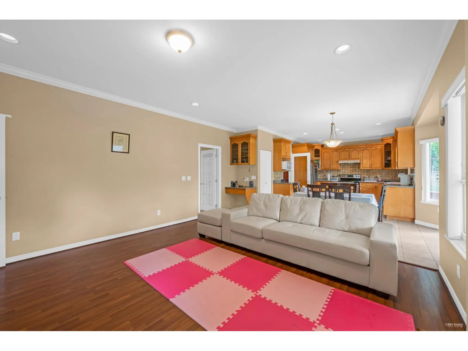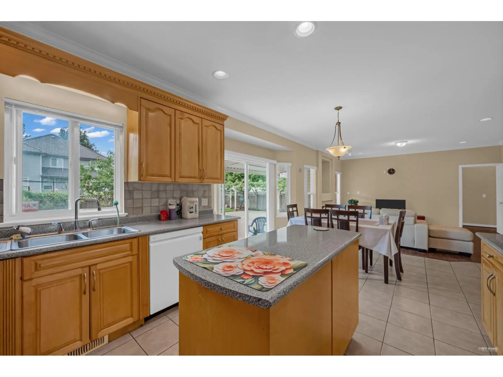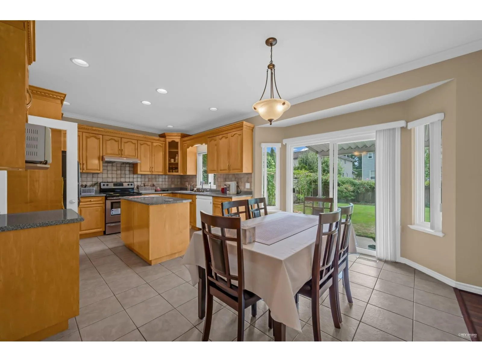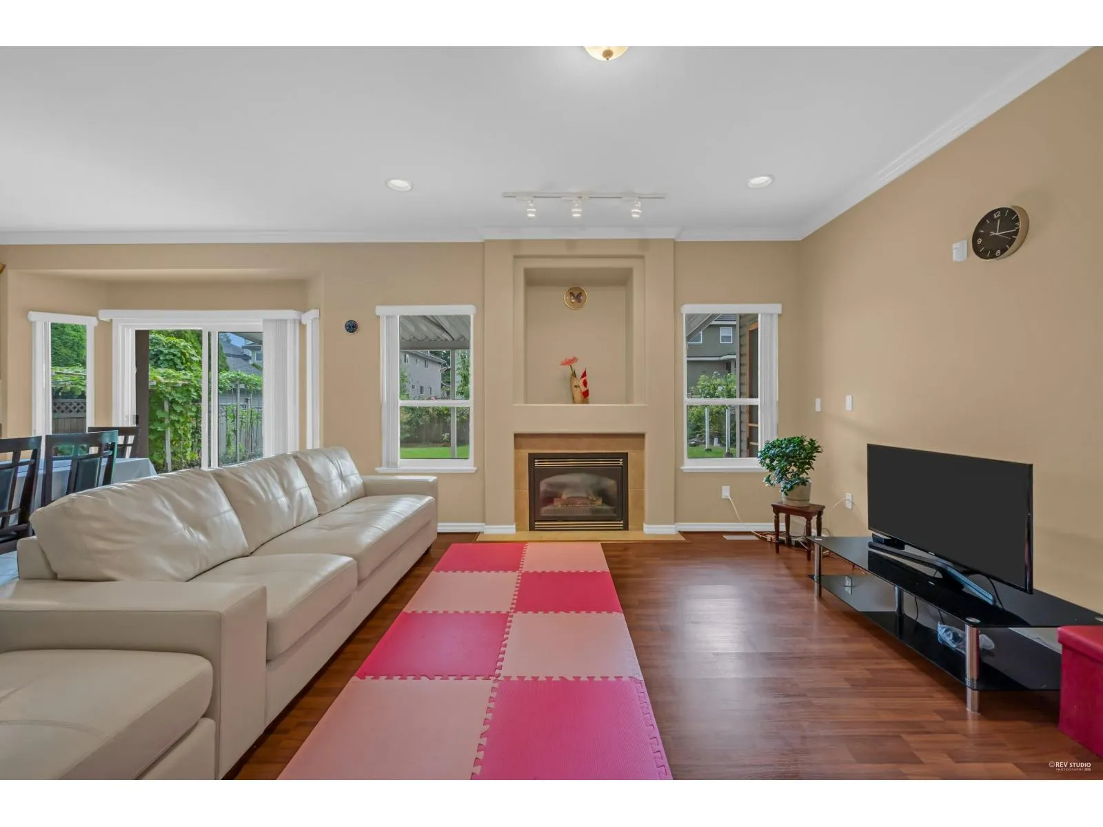 This spacious two-storey home on a large south-facing lot offers an open and bright layout with generous living spaces, a maple kitchen with center island, two gas fireplaces, raised ceilings, four bedrooms upstairs plus a main-floor den, and a one-bedroom suite with private entrance. The heat pump air conditioning system, ensuring year-round comfort. The fully fenced yard is beautifully landscaped with vibrant flowers, while the backyard features a grapevine-covered arbor full of grapes, along with a large play area for kids. A rare blend of comfort, charm, and great value in a sought-after Fraser Heights neighborhood! (id:27476)
