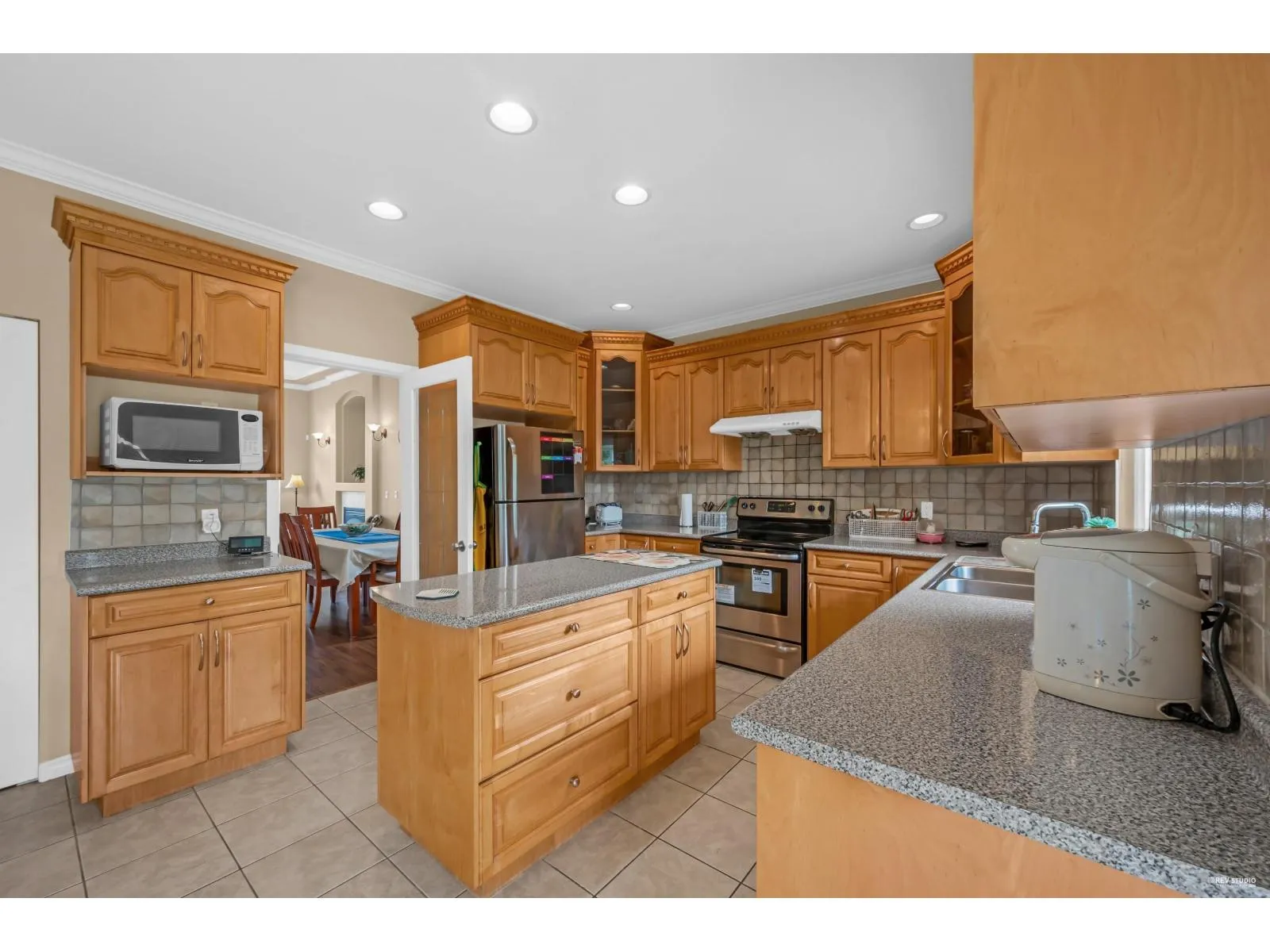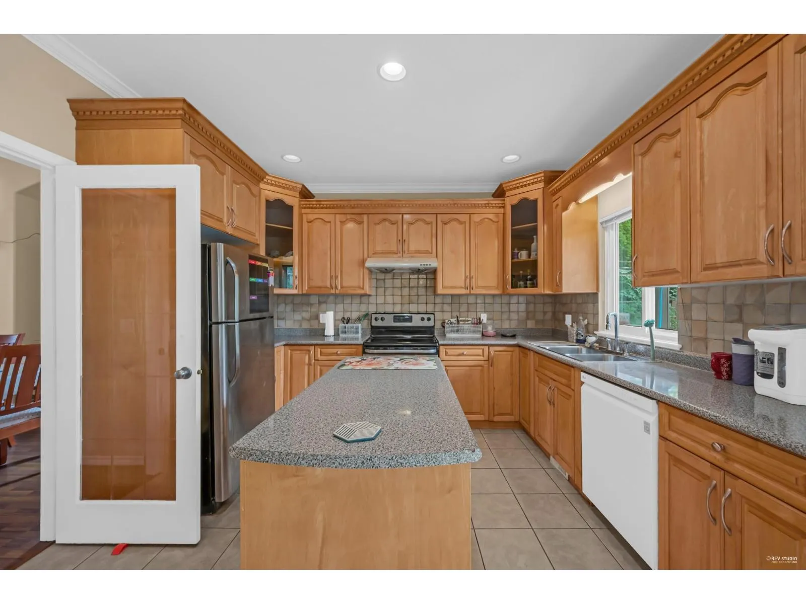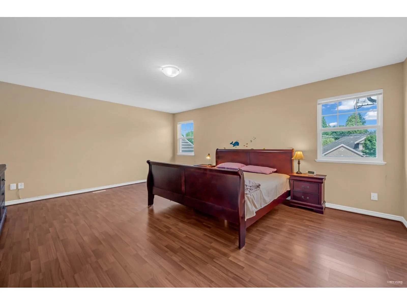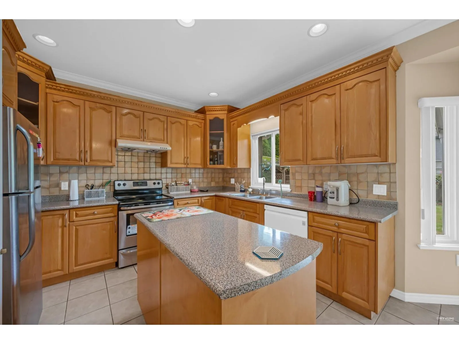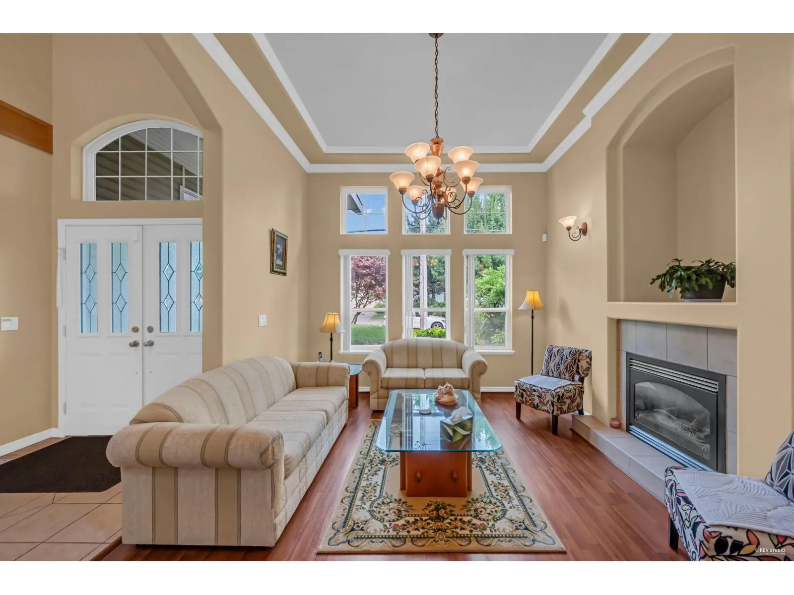 This spacious two-storey home on a large south-facing lot offers an open and bright layout with generous living spaces, a maple kitchen with center island, two gas fireplaces, raised ceilings, four bedrooms upstairs plus a main-floor den, and a one-bedroom suite with private entrance. The heat pump air conditioning system, ensuring year-round comfort. The fully fenced yard is beautifully landscaped with vibrant flowers, while the backyard features a grapevine-covered arbor full of grapes, along with a large play area for kids. A rare blend of comfort, charm, and great value in a sought-after Fraser Heights neighborhood! (id:27476)