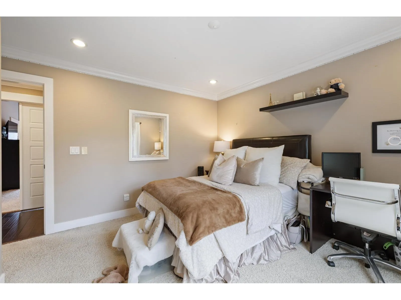 If you're looking for a lovely home, in a great location, that provides an abundance of privacy, this is the one for you! Open concept plan on the main includes a built in bar, and office or 4th bedroom. Entertaining is easy with the large kitchen and wok kitchen with pantry, while guests can come and go through the french doors leading to the covered patio area. Enjoy the primary bedroom suite, spa tub, w/i shower, and w/i closet. Two other bedrooms and loft with built in cabinetry finish the upper floor. Panhandle driveway leads to the garage equipped with a drop down ladder to the attic above. Property has a back up generator, Central A/C, & a low maintenance yard! School catchment: Chantrell Creek Elementary & Elgin Park Secondary. Act now, schedule your private showing today! (id:27476)
