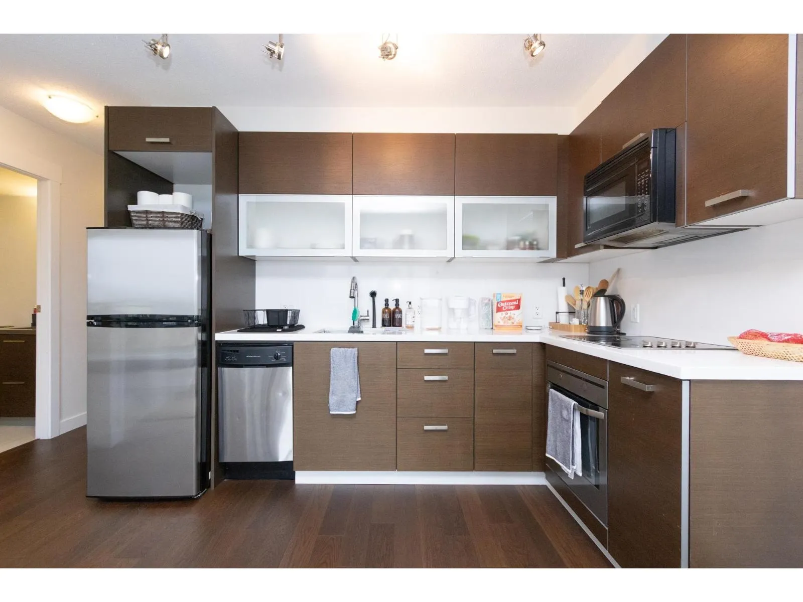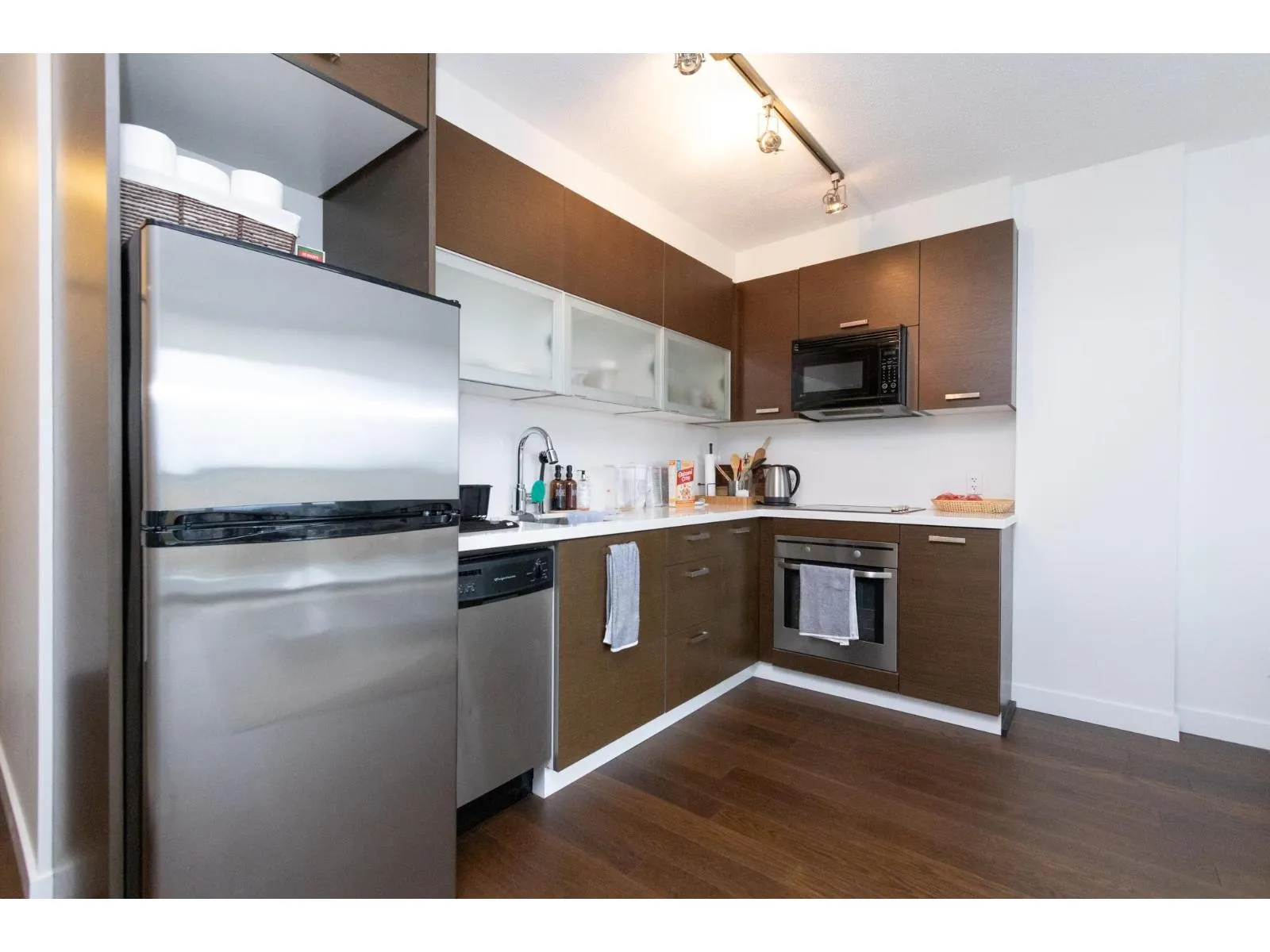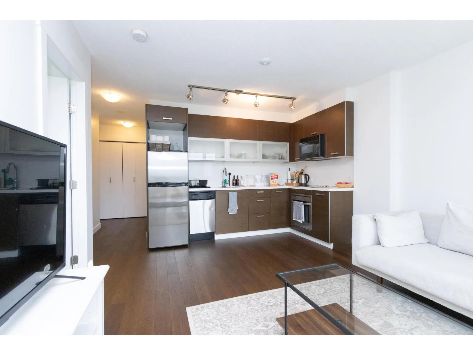 Bright 1-Bedroom + Den Condo in Central Surrey - Modern, Spacious & Steps From Everything! Welcome home to this beautifully maintained 1-bedroom condo located in the heart of Central Surrey, offering unbeatable convenience, comfort, and style. Unit Highlights: . Modern, bright kitchen with ample cabinetry and sleek finishes . Open-concept living room filled with natural light . Large windows offering unobstructed views of lush green space . Thoughtfully designed layout with excellent storage throughout . Peaceful, private atmosphere with beautiful scenery year-round Building & Location: . Situated in a well-maintained, secure building . Plenty of on-site parking available . Excellent transit access-steps to bus routes and close to SkyTrain . Minutes from Surrey Central amenities! (id:27476)