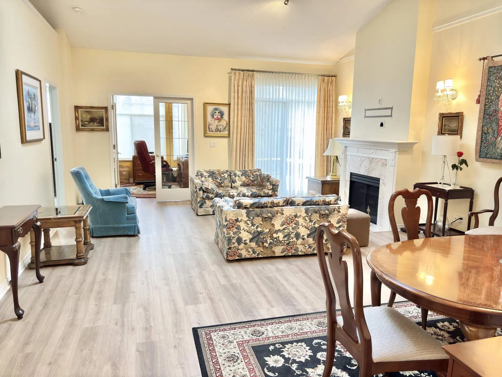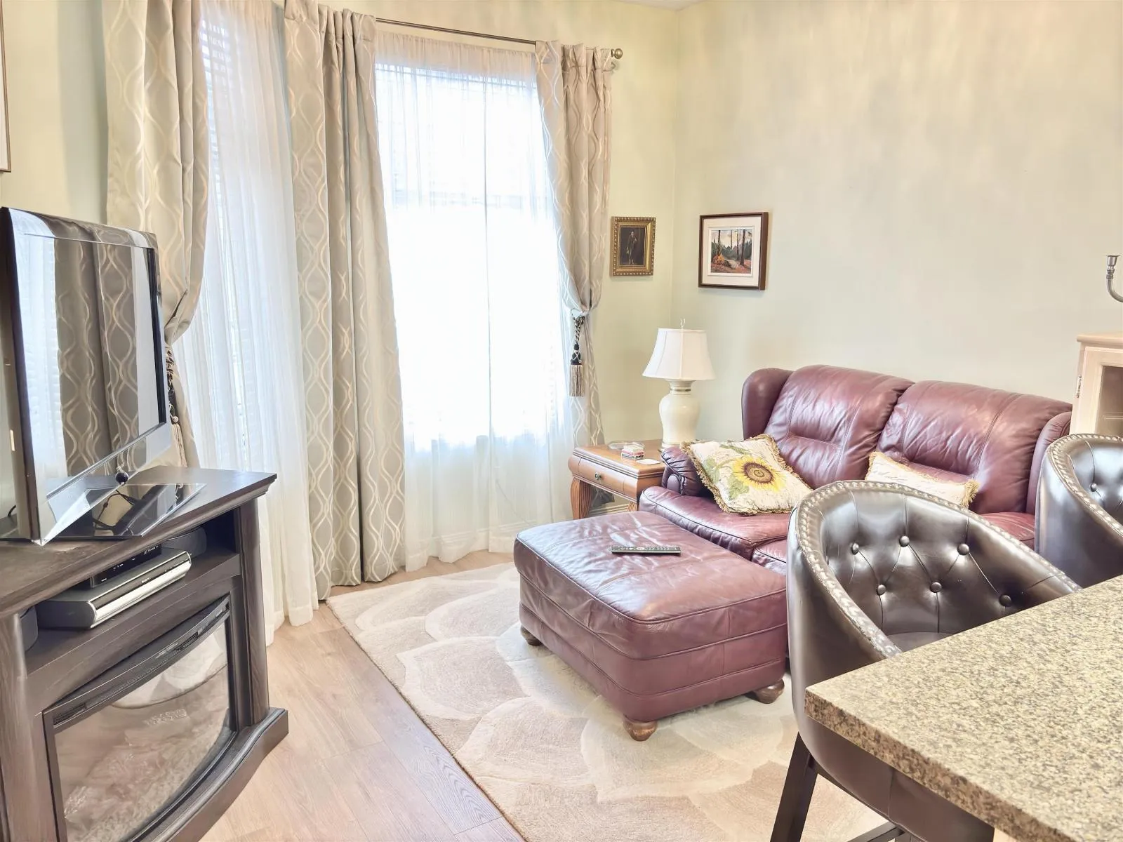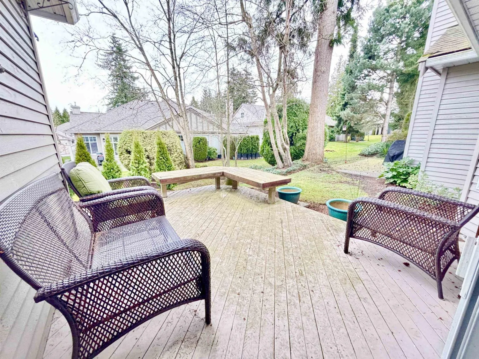 BISHOPS GREEN! Spacious rancher townhome in this sought-after gated community. Ideally located away from streets & close to the clubhouse, this home boasts luxury one-level living with vaulted ceilings, large rooms and open floor plan. Very clean but fresh paint would make it pop! Enjoy a private east-facing patio, skylights, and an open floor plan. The kitchen features updated granite counters, disposal, and dishwasher, new fridge plus a cozy eating area or family room. The spacious master bedroom offers a large 5-piece ensuite. Also boasts a large second bedroom and a den. Extras include radiant H/W heating, security system, new roof, and garage door. The clubhouse offers a grand TV lounge, billiards, outdoor pool, hot tub, gym, workshop, guest suites and more! (id:27476)