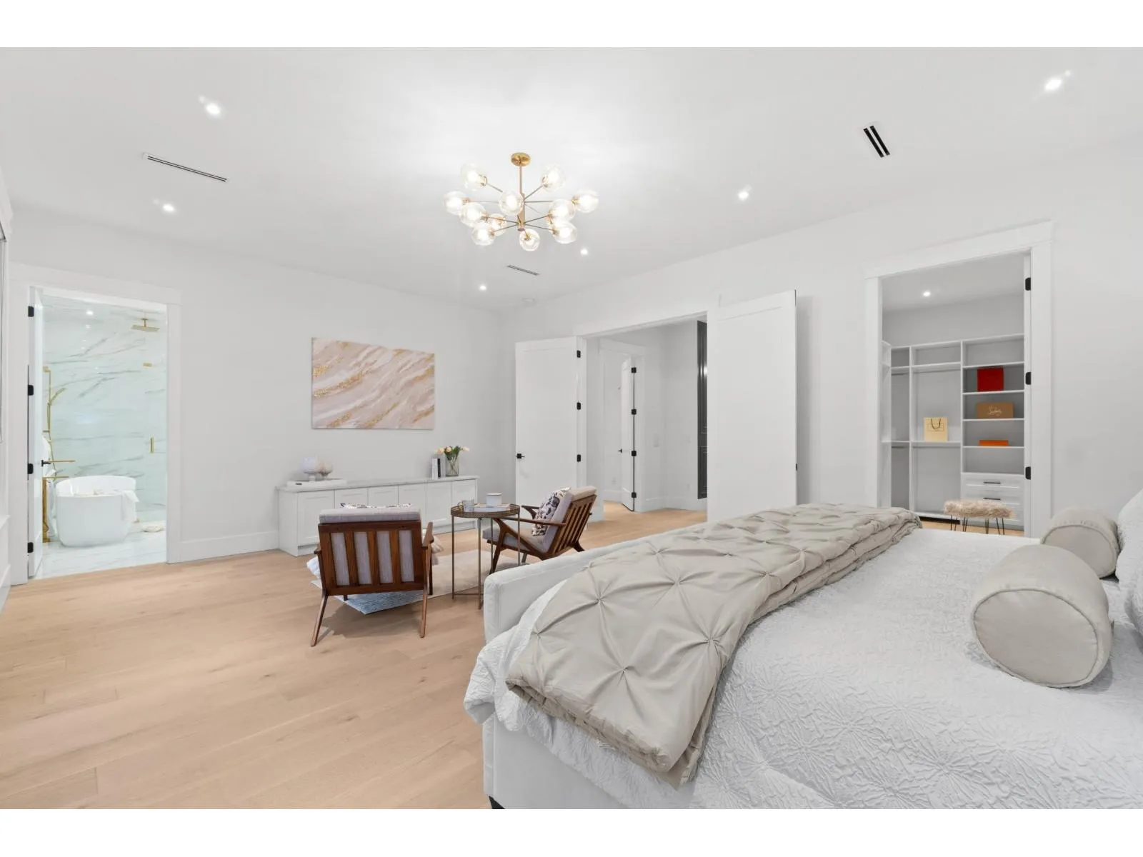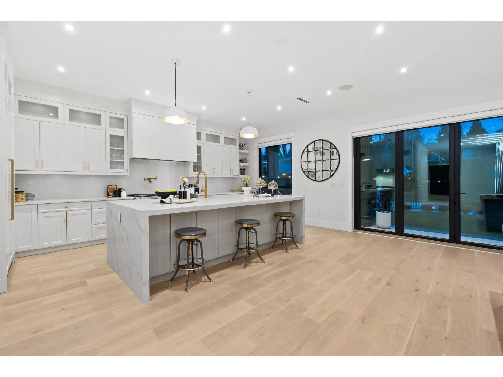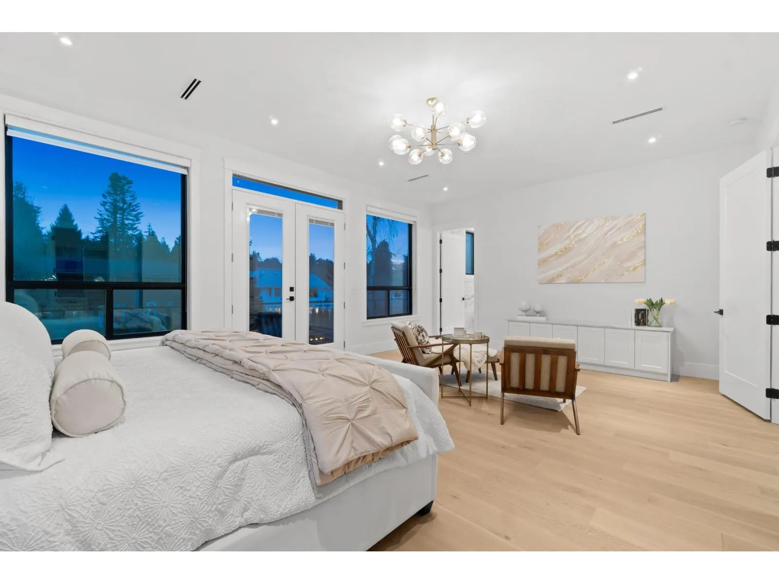 Nestled in the prestigious Crescent Beach neighborhood, this custom-built masterpiece blends contemporary elegance with functionality. Just a 6-minute walk to Crescent Park Elementary, this home offers unparalleled craftsmanship and premium finishes. A grand cast iron & glass door welcomes you into a space featuring 10-ft ceilings, engineered hardwood, A/C, radiant heating, HRV, built-in vacuum, smart thermostats, and a speaker system. The chef's kitchen boasts a 60" Wolf double range and Thermador appliances. Each bedroom has a private ensuite. A 15-ft nano door leads to a sunken fire pit patio with a Napoleon fireplace. Prepped for a gas BBQ, hot tub, and electric gate, this home delivers an unparalleled lifestyle in Crescent Beach. (id:27476)