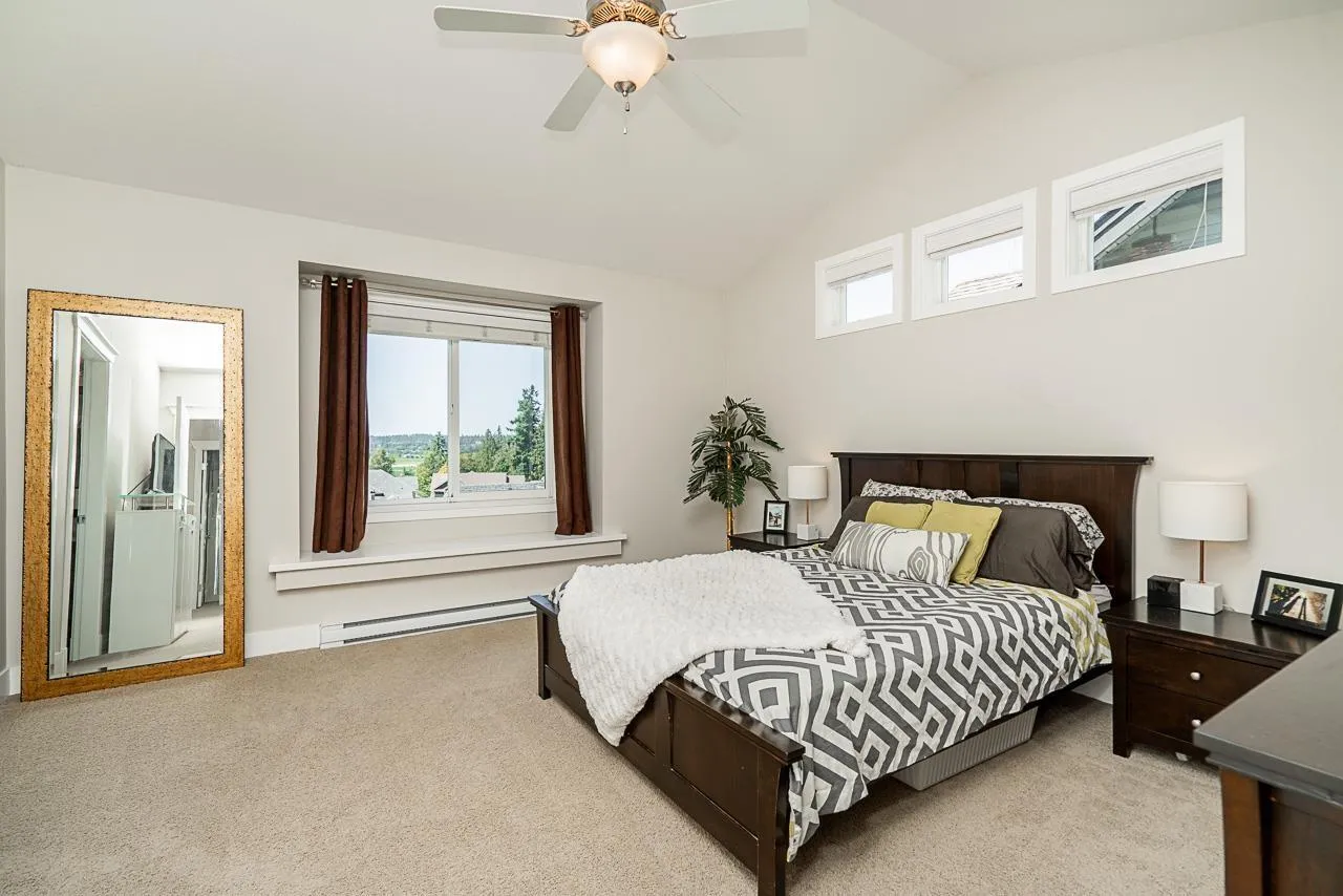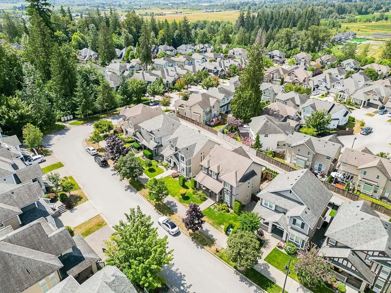 Stunning Views in Vista West! This Foxridge-built gem in West Cloverdale is perched on the hillside with beautiful farm and mountain views. This immaculate 2-storey with walkout basement offers 3 bedrooms up, a main floor den, and suite potential below. Bright and open plan with vaulted ceilings and tons of windows to enjoy the view in the primary bdrm. Enjoy the spacious deck off the kitchen, gas stove, quality stainless appliances, and retractable awning. Low-maintenance backyard, double garage, and large driveway with lane access. Steps to Bose Park, scenic trails, and a short walk to the elementary school. A perfect family home! (id:27476)