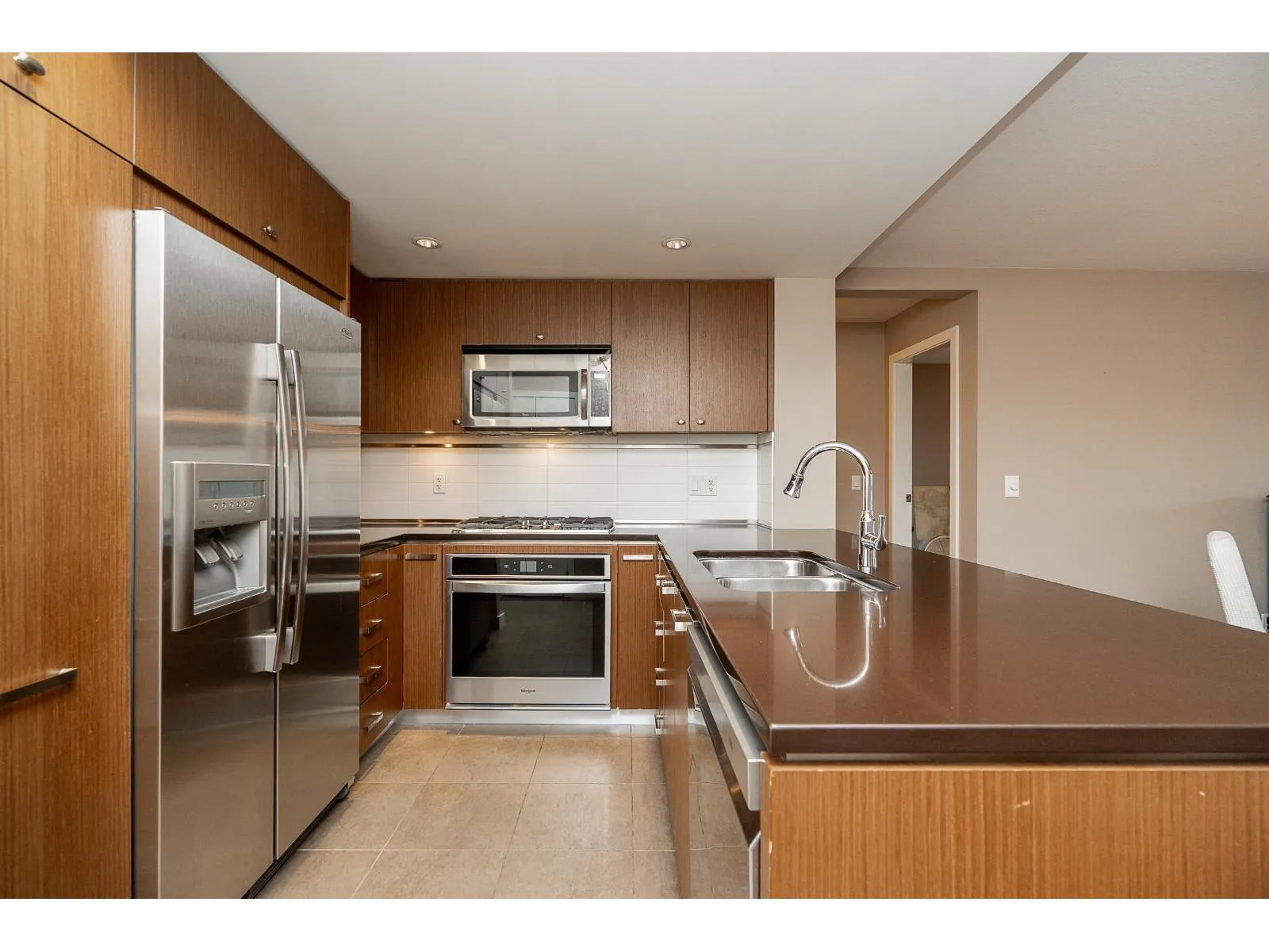 Experience the ultimate lifestyle at High Street Watermark! This boutique-inspired community pairs urban living with unbeatable convenience. Tucked quietly within the complex, this immaculate 2-bed, 2-bath suite feels like a high-end hotel from the moment you enter the upscale lobby. The open-concept floor plan features a gourmet kitchen and a bright living area that flows onto a massive, patio-style balcony. With bedrooms on opposite sides, the layout offers maximum privacy and style. The ensuite features double sinks, plus a separate tub and shower. Your strata fee covers both hot water and the gas range. Located for the ultimate commute with rapid highway access and shopping at your doorstep. (id:27476)